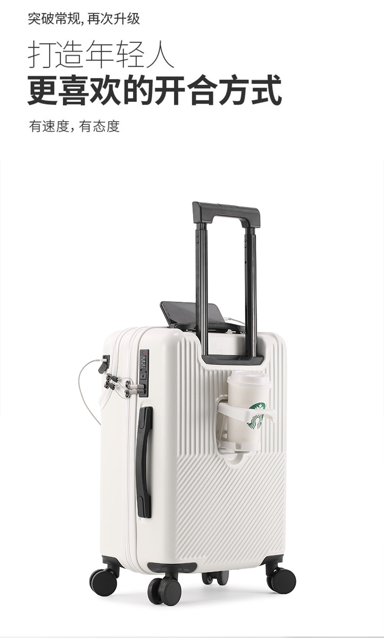 비즈니스 전면 오프닝 수하물 케이스 여성 소형 20 인치 탑승 경량 트롤리 케이스 컵 홀더 24 여행 가방 남성 학생스토어 가기