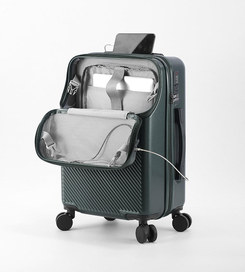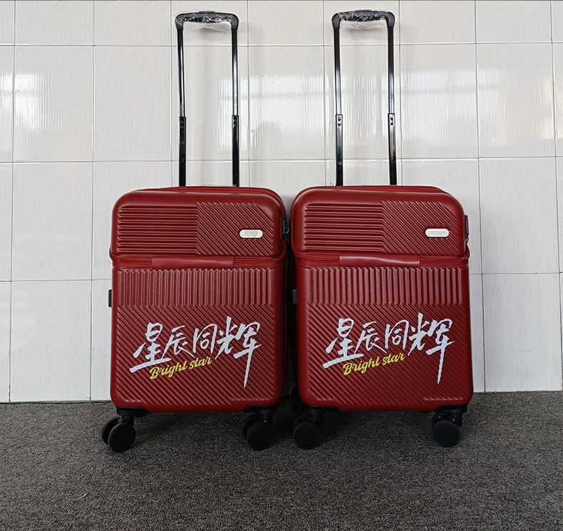 비즈니스 전면 오프닝 수하물 케이스 여성 소형 20 인치 탑승 경량 트롤리 케이스 컵 홀더 24 여행 가방 남성 학생