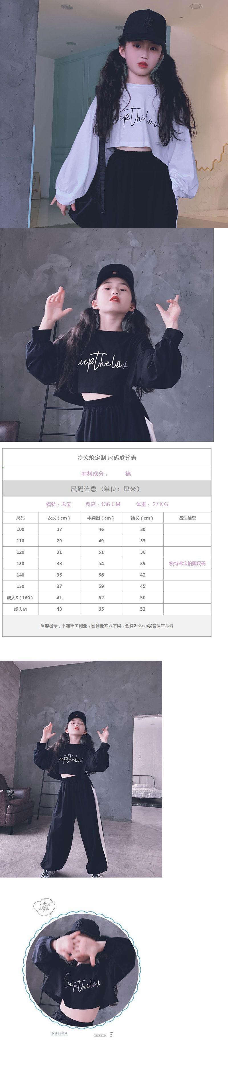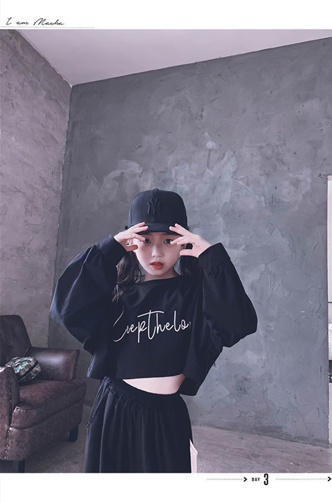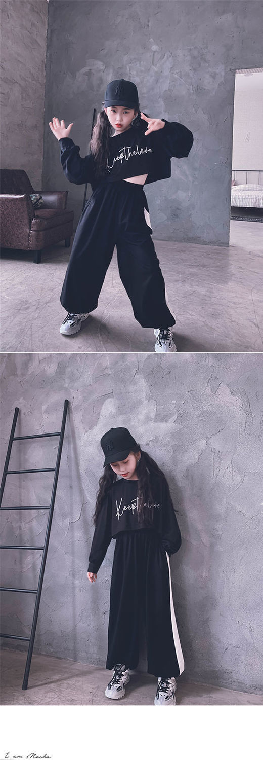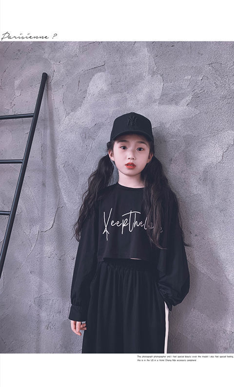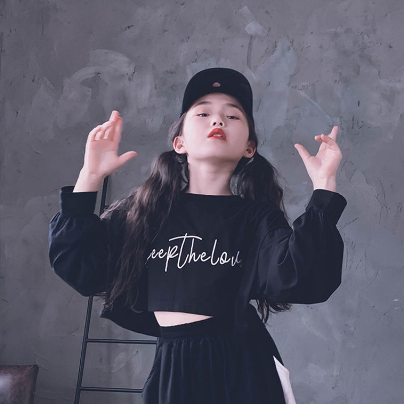 재즈 어린이 긴팔 봄가을 의류 신상품 엄선된 중대형 어린이 티셔츠 어린이 하이웨이스트 숏 스웨트셔츠 크롭탑 부모-자녀룩스토어 가기