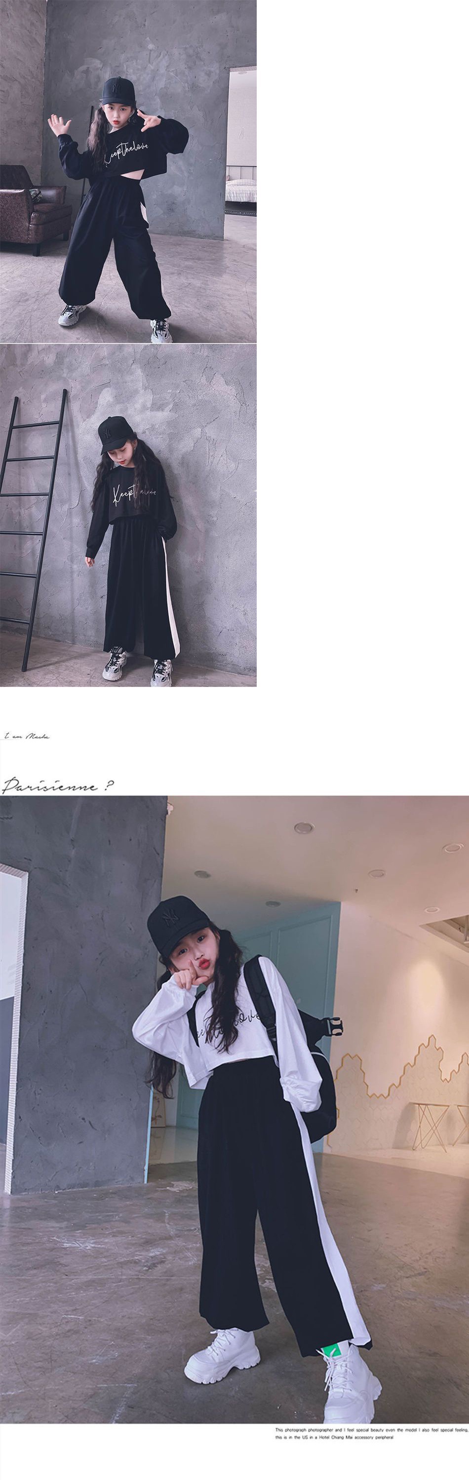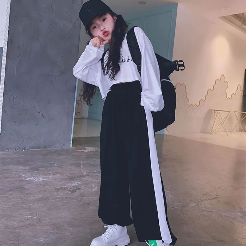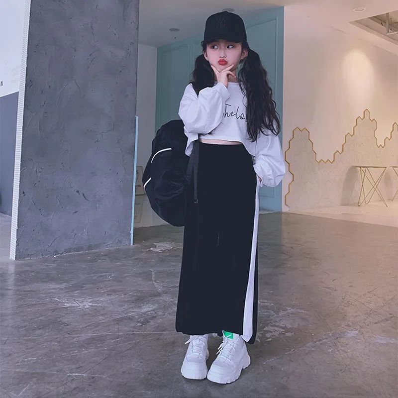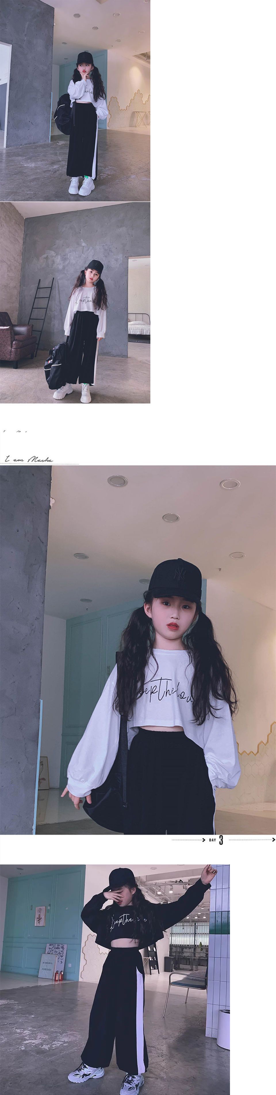 재즈 어린이 긴팔 봄가을 의류 신상품 엄선된 중대형 어린이 티셔츠 어린이 하이웨이스트 숏 스웨트셔츠 크롭탑 부모-자녀룩스토어 가기