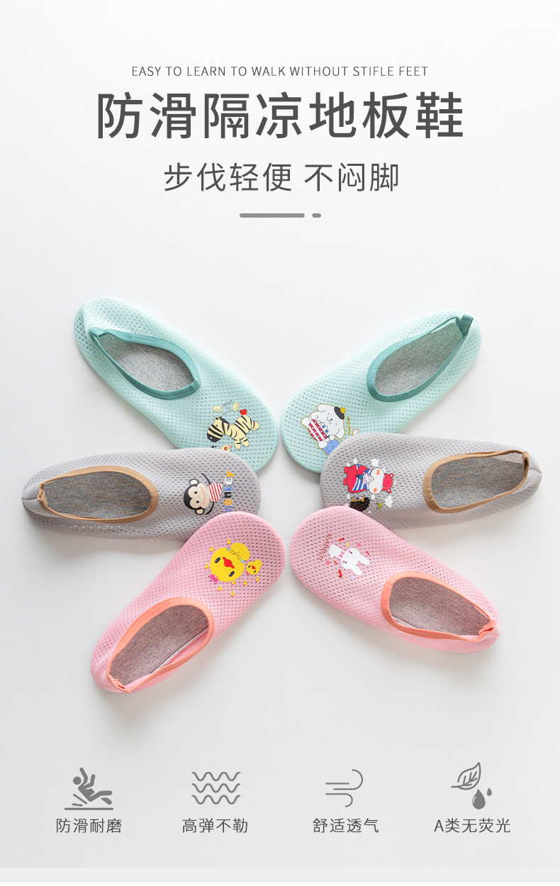 봄 여름용 얇은 성인 및 유아용 바닥화, 미끄럼 방지 어린이 만화 바닥 양말, 남아 여아용 조기 교육 실내화스토어 가기