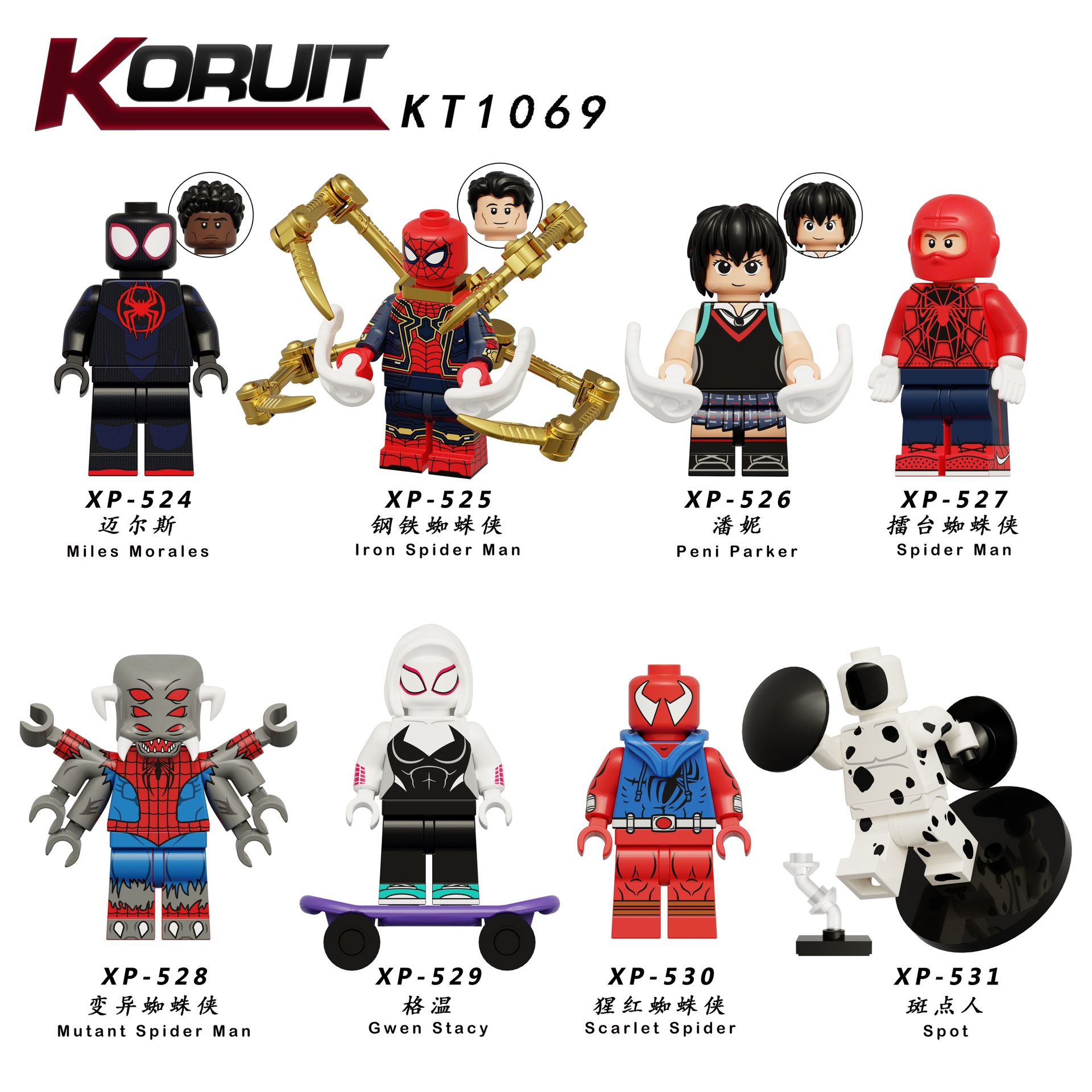 Kerui KT1069 슈퍼 영어 발견 남자 마일 그웬 조립 빌딩 블록 어린이 장난감 XP524-531스토어 가기