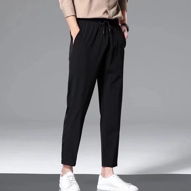 남성용 여름 트렌디 브랜드 아이스 실크 얇은 속건 스트레치 발목 길이 바지 슬림핏 슬리밍 스트레이트 남성 캐주얼 바지스토어 가기
