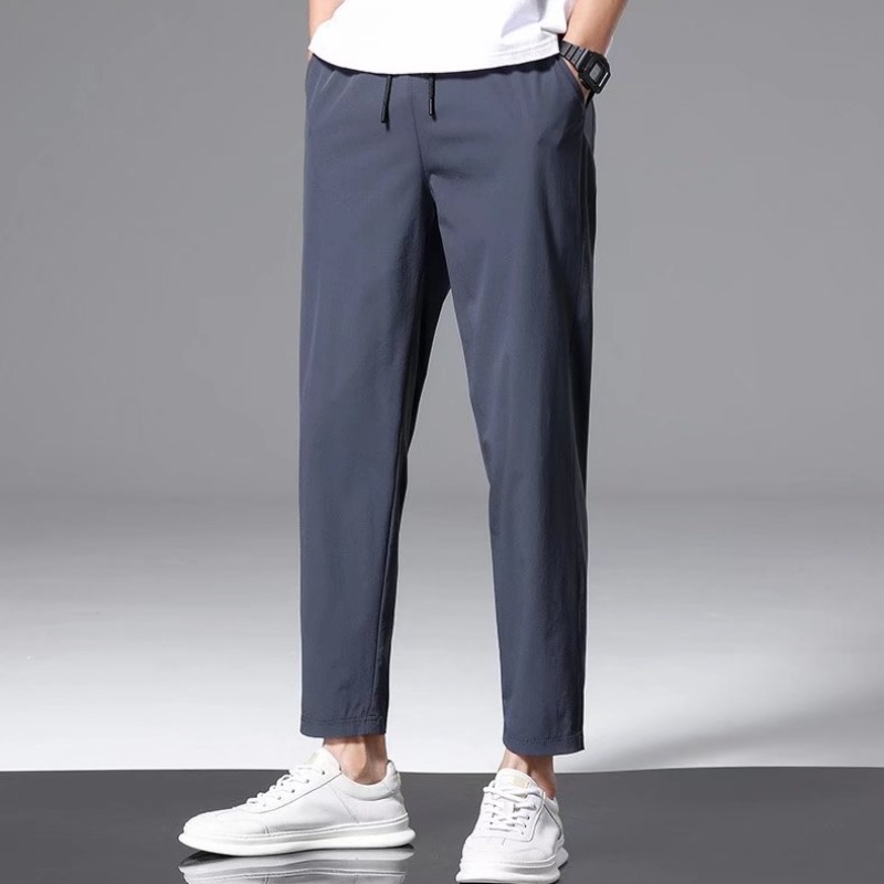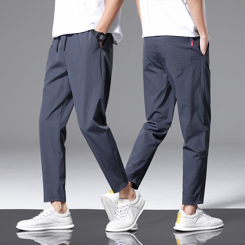 남성용 여름 트렌디 브랜드 아이스 실크 얇은 속건 스트레치 발목 길이 바지 슬림핏 슬리밍 스트레이트 남성 캐주얼 바지