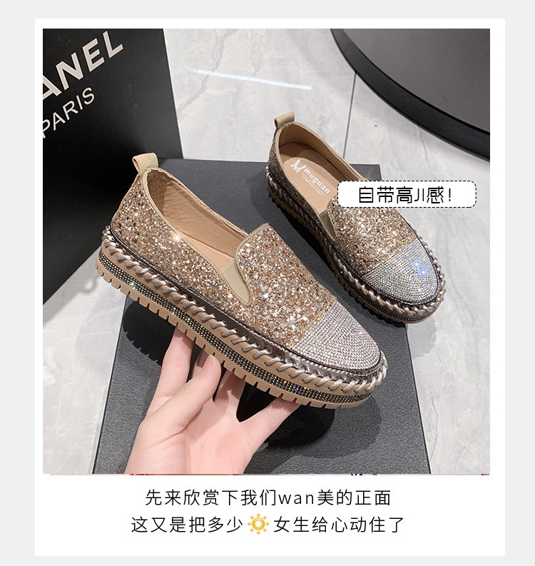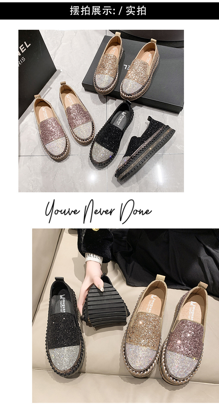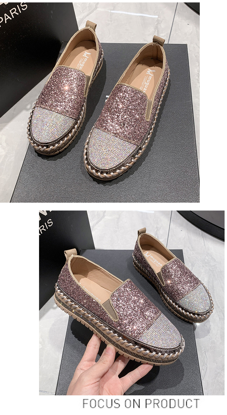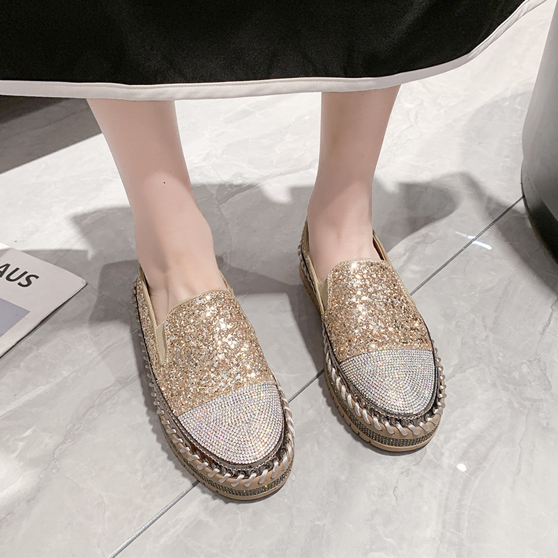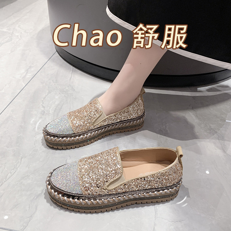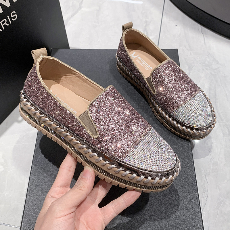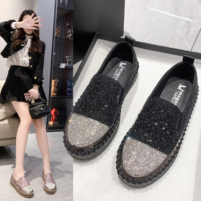 국경 간 대외 무역 2023 봄 플러스 사이즈 캐주얼 신발 여성의 새로운 로퍼 두꺼운 밑창 플랫 모조 다이아몬드 패션 여성 신발스토어 가기