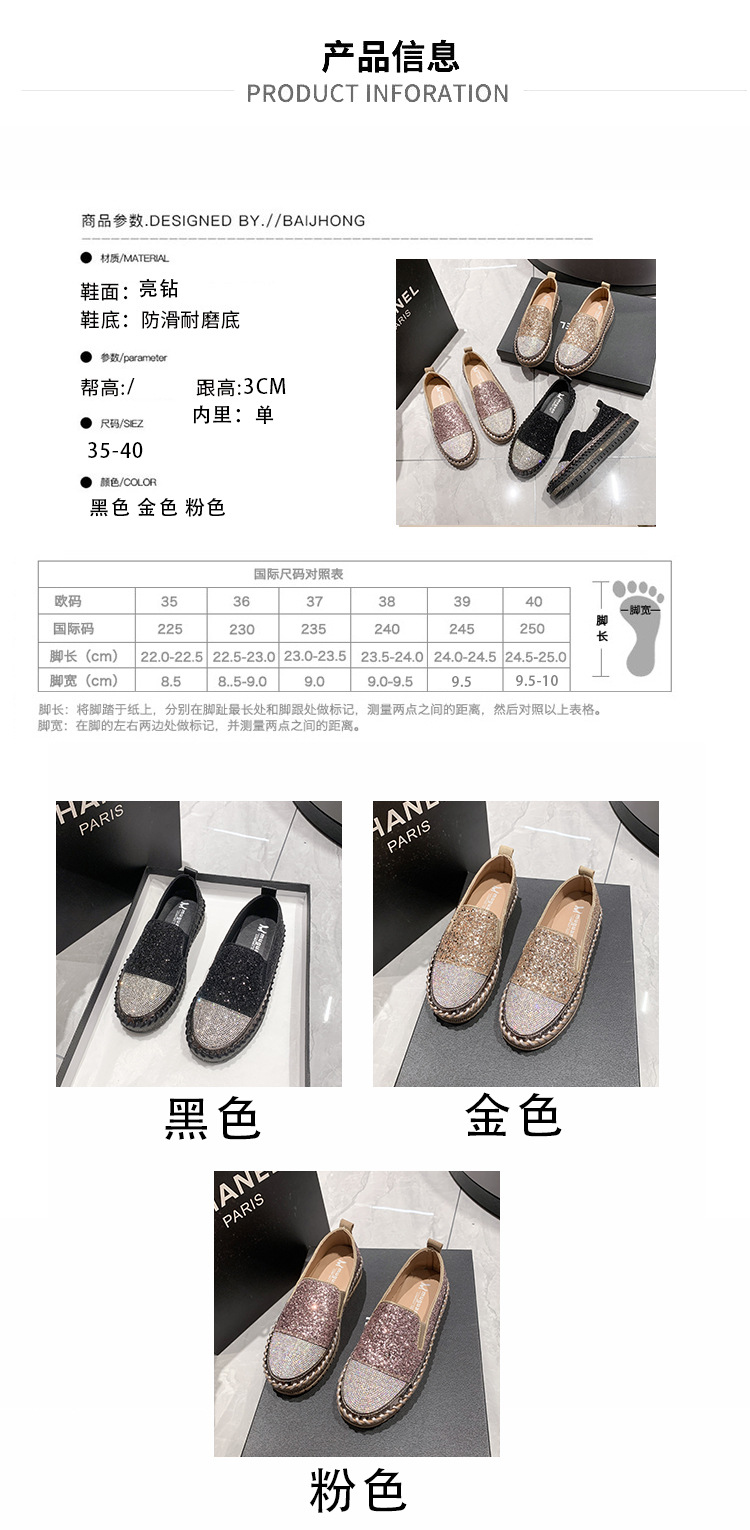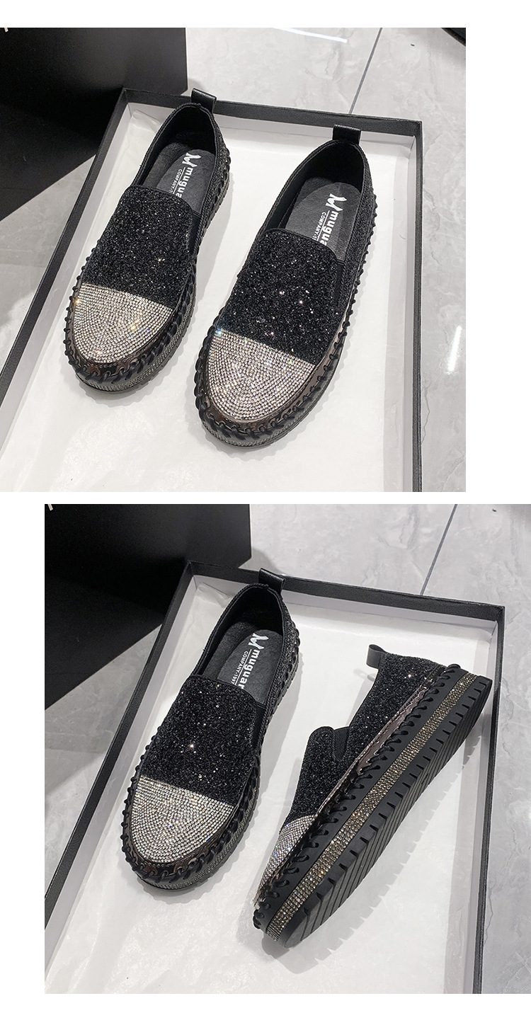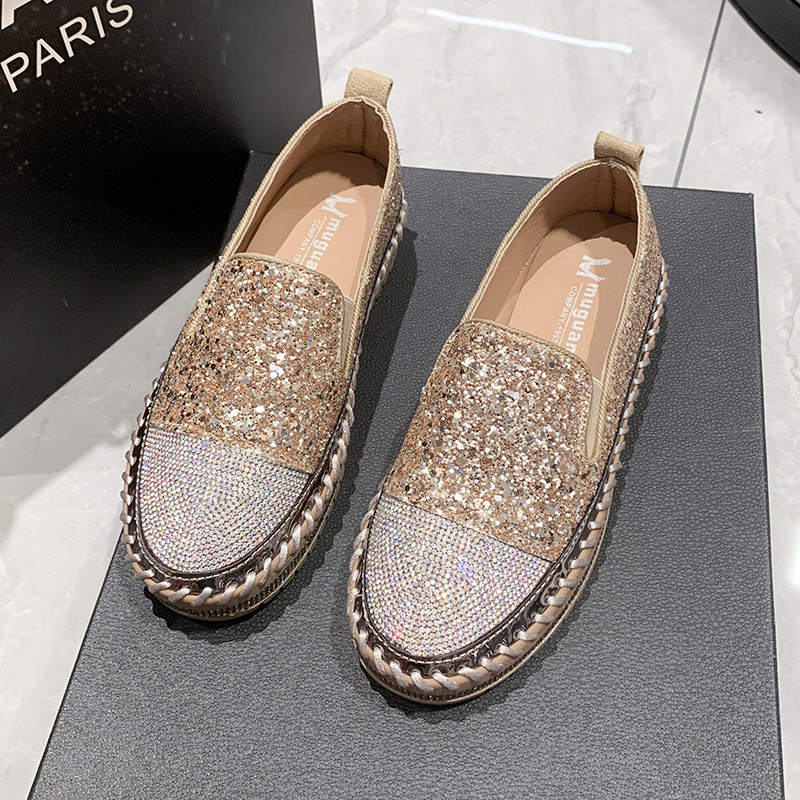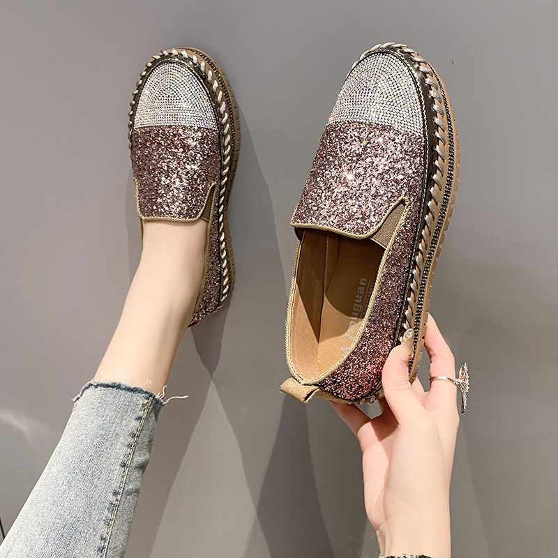 국경 간 대외 무역 2023 봄 플러스 사이즈 캐주얼 신발 여성의 새로운 로퍼 두꺼운 밑창 플랫 모조 다이아몬드 패션 여성 신발