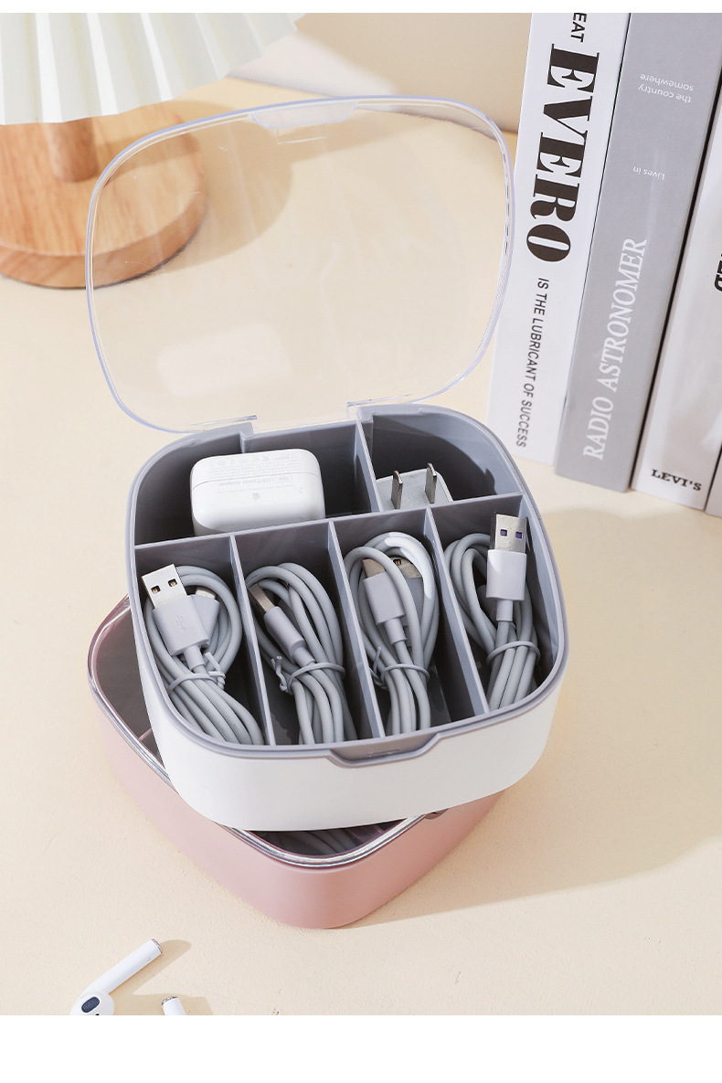 뚜껑이있는 데스크탑 데이터 케이블 보관함 방진 그리드 와이어 보관 케이블 박스 플라스틱 전원 코드 마감 상자