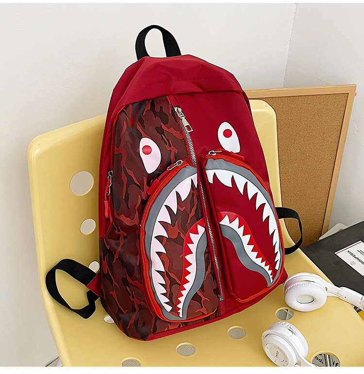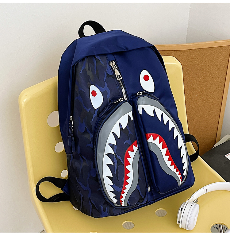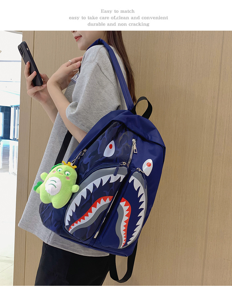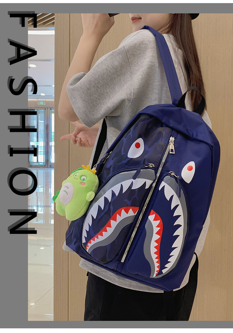 배낭 여성의 새로운 간단한 패션 상어 성격 낙서 학생 배낭 트렌디 브랜드 데일리 모든 경기 학생 책가방