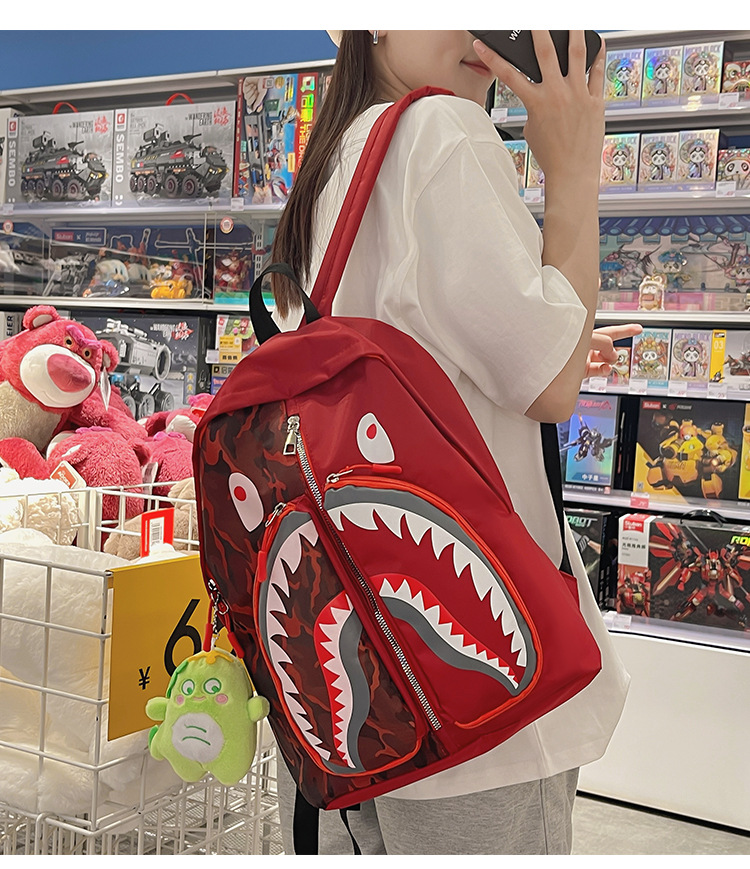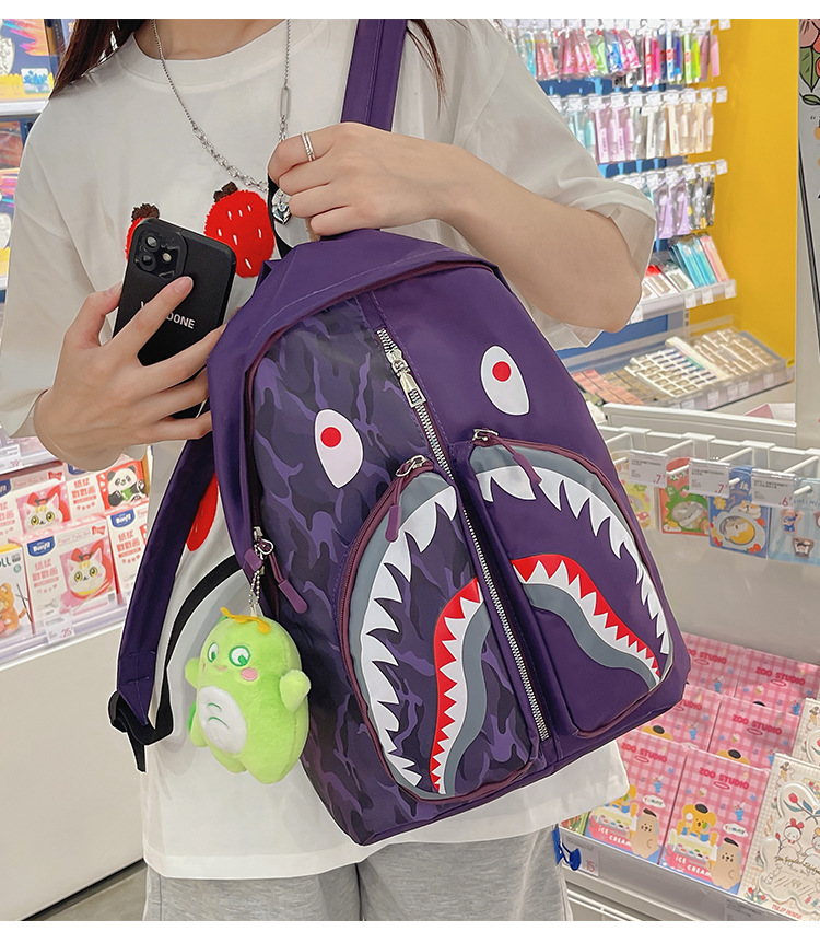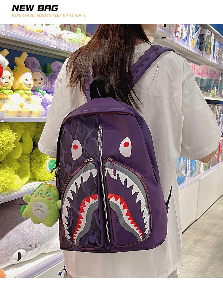 배낭 여성의 새로운 간단한 패션 상어 성격 낙서 학생 배낭 트렌디 브랜드 데일리 모든 경기 학생 책가방스토어 가기