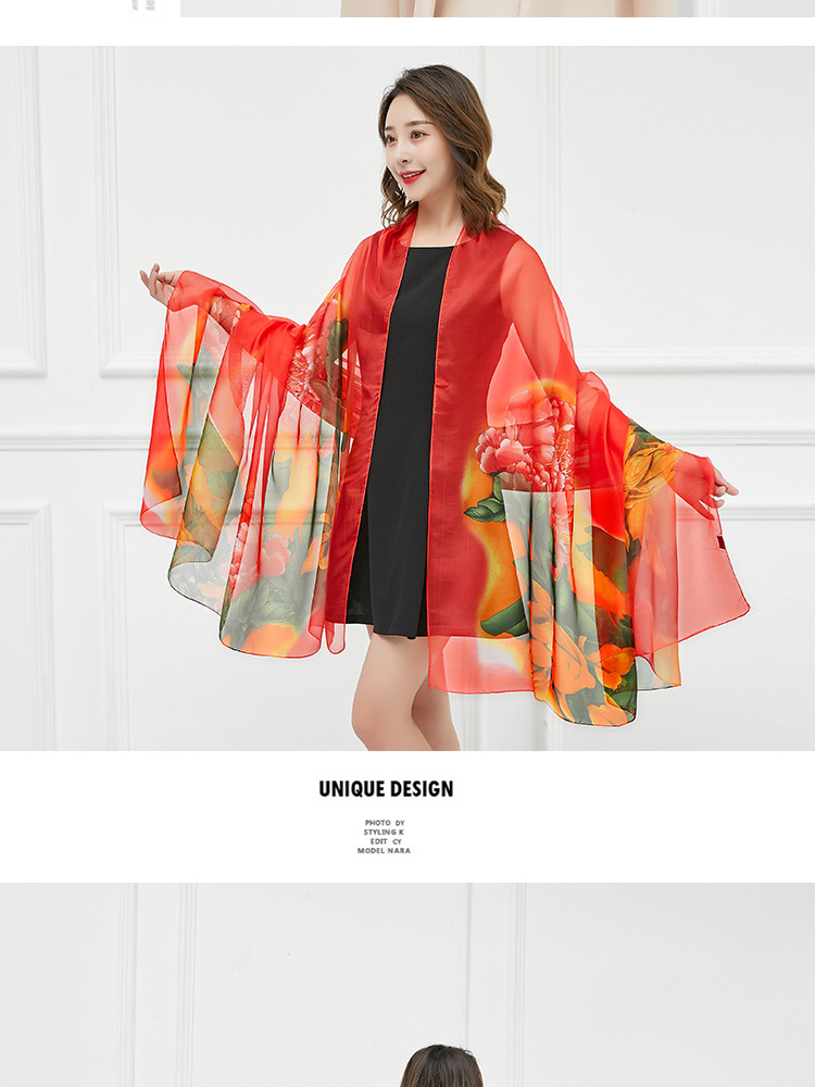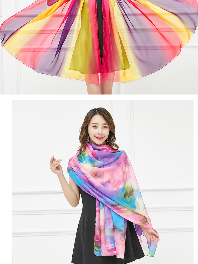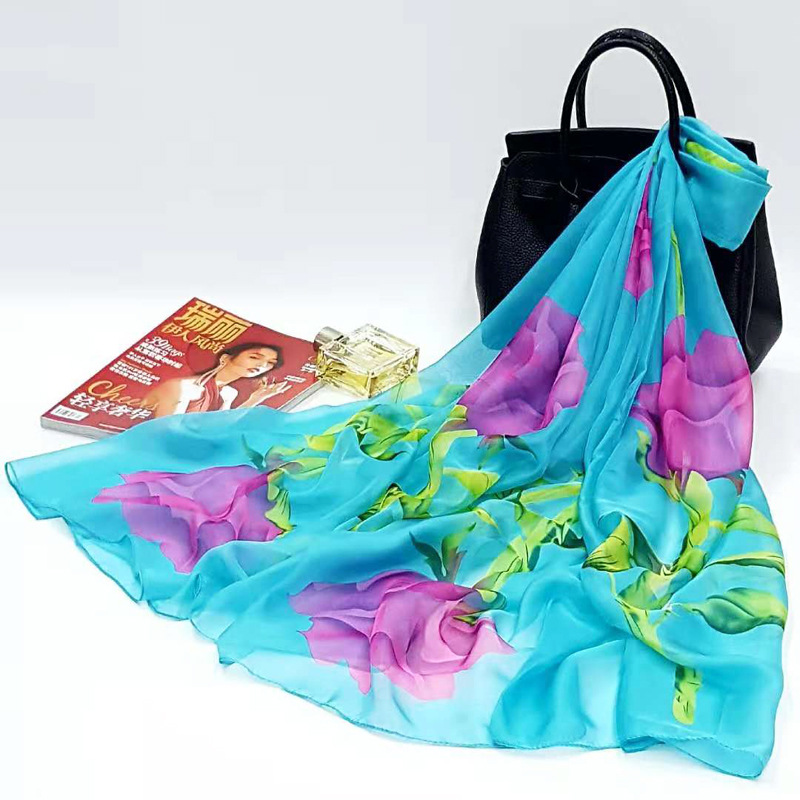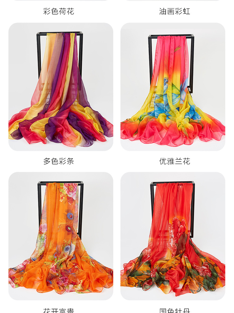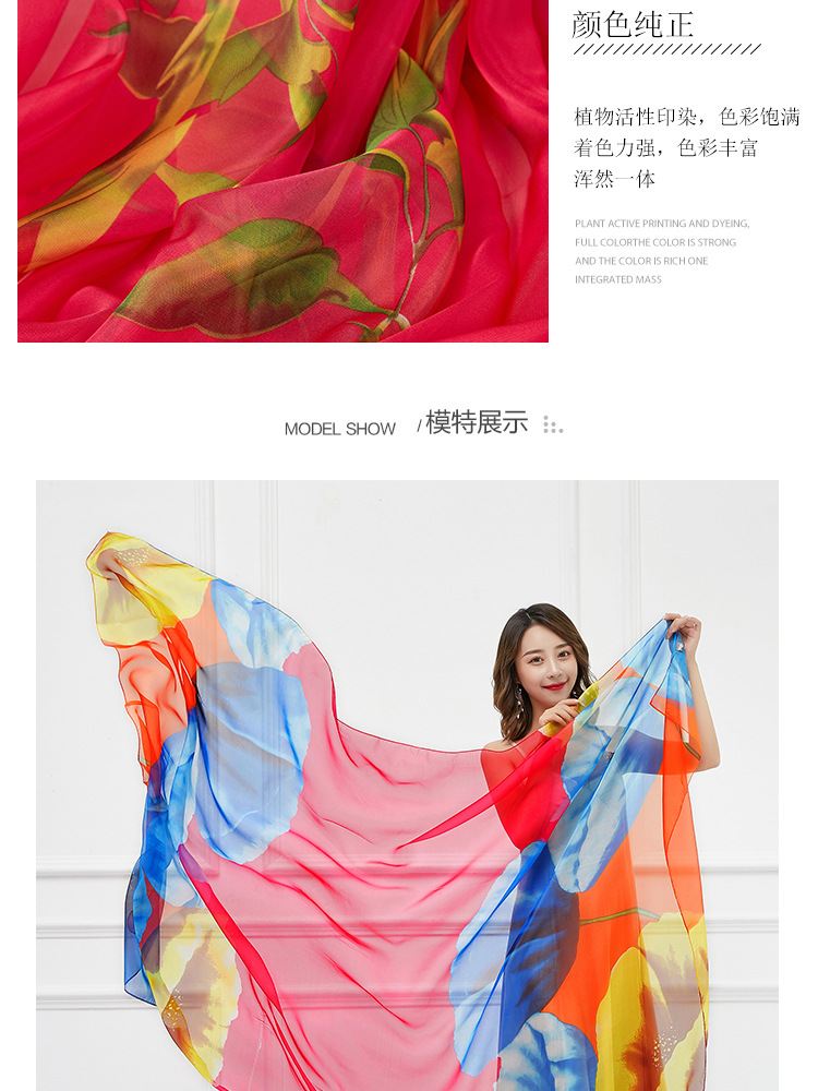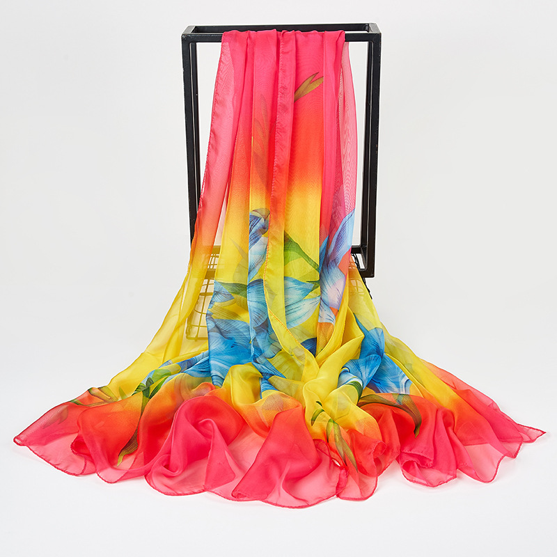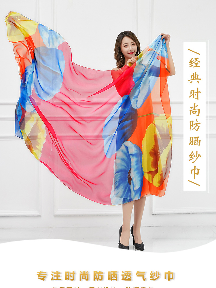 오버사이즈 프린트 쉬폰 스카프 자외선 차단제 비치 타올 봄, 가을, 겨울 및 여름 여성용 긴 스카프와 이중 사용 해변 숄