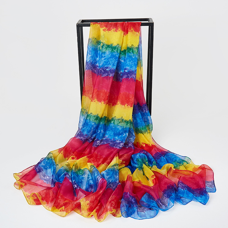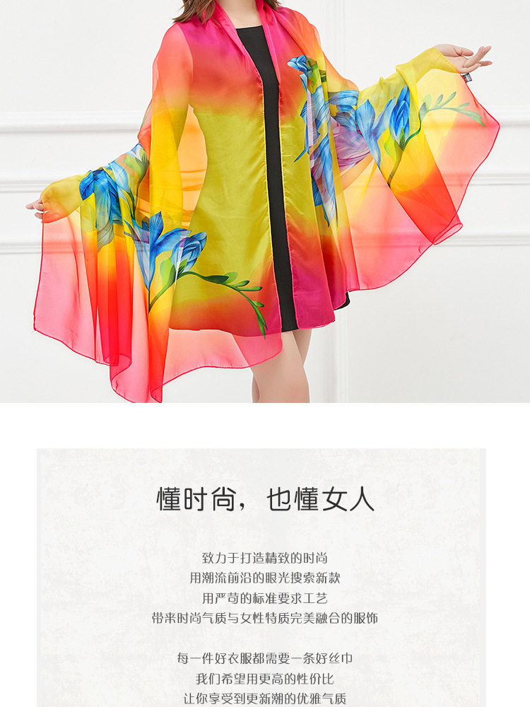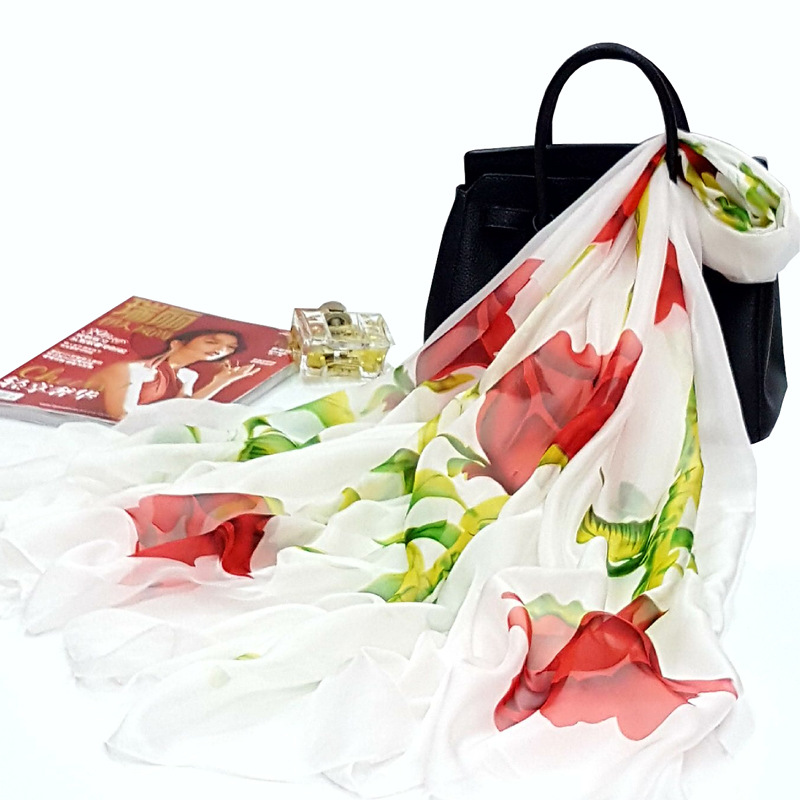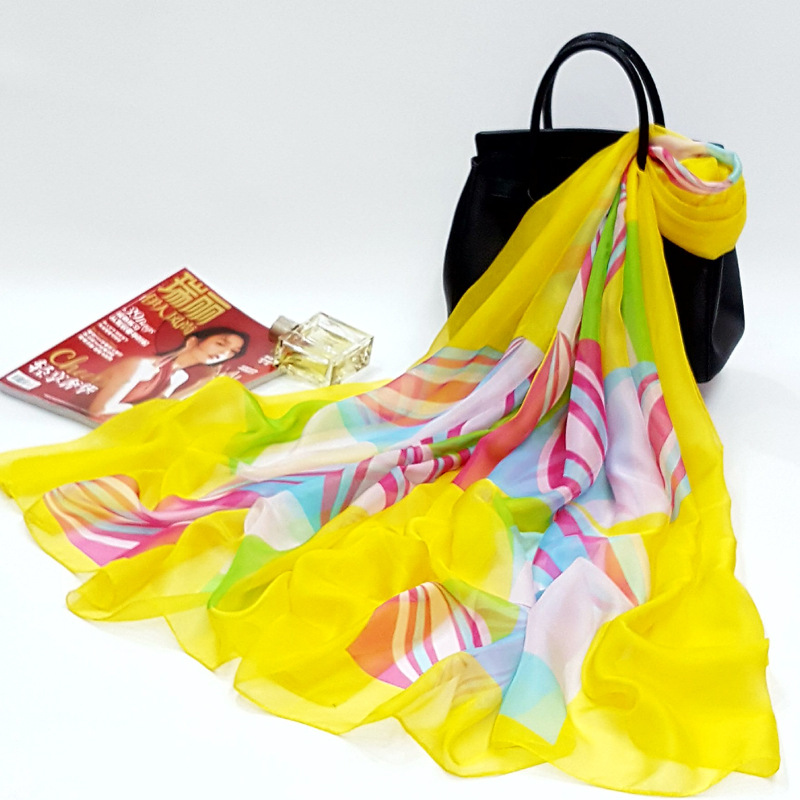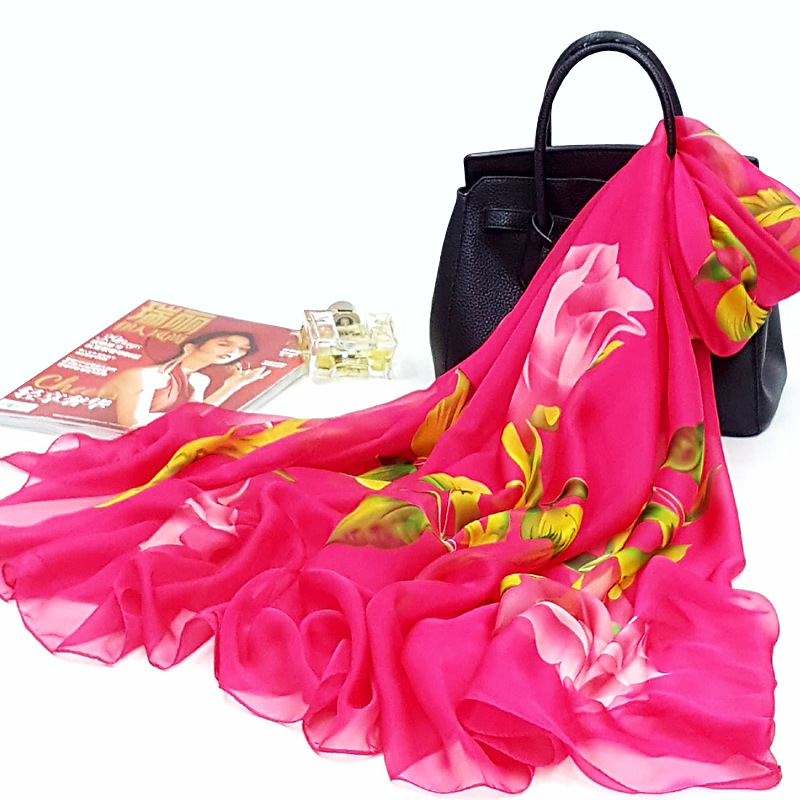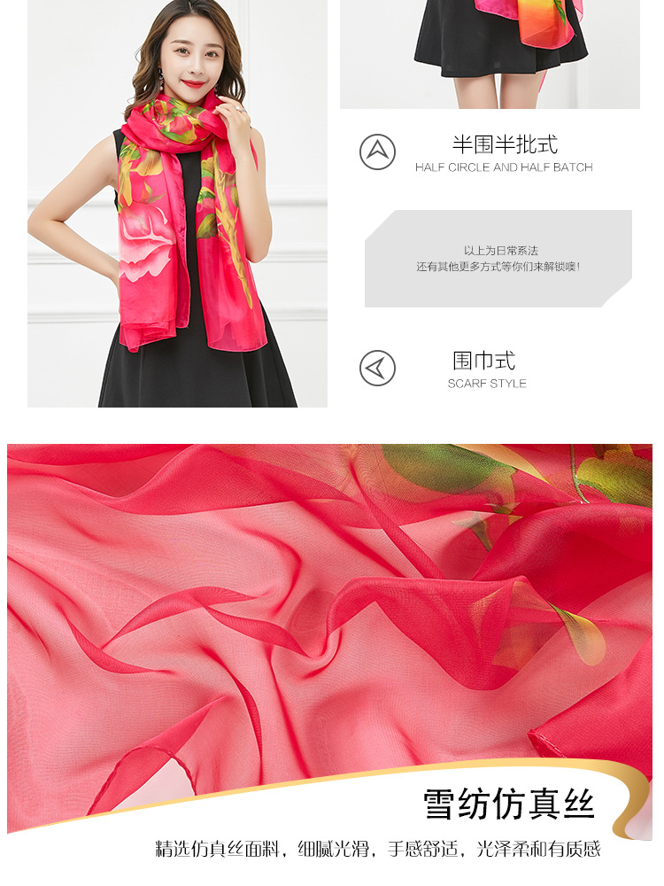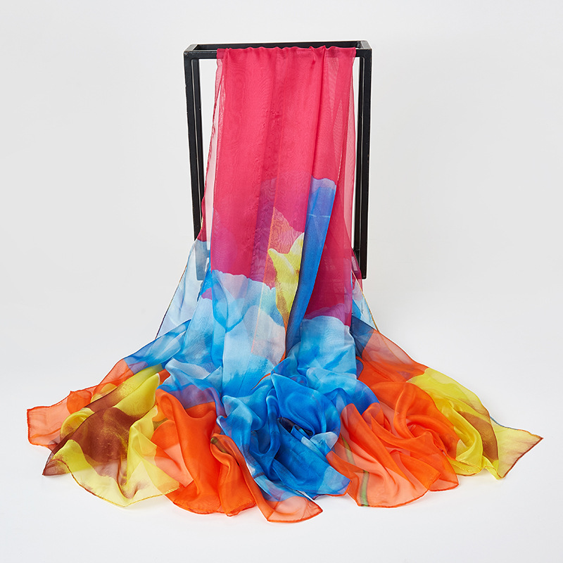 오버사이즈 프린트 쉬폰 스카프 자외선 차단제 비치 타올 봄, 가을, 겨울 및 여름 여성용 긴 스카프와 이중 사용 해변 숄