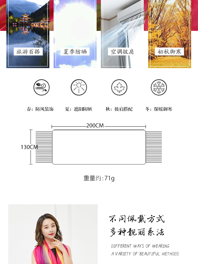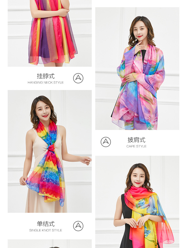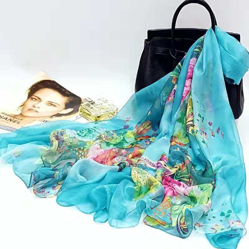 오버사이즈 프린트 쉬폰 스카프 자외선 차단제 비치 타올 봄, 가을, 겨울 및 여름 여성용 긴 스카프와 이중 사용 해변 숄스토어 가기