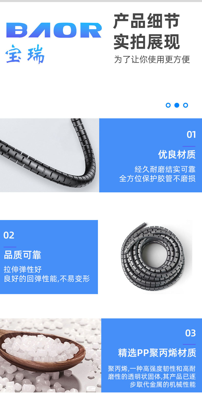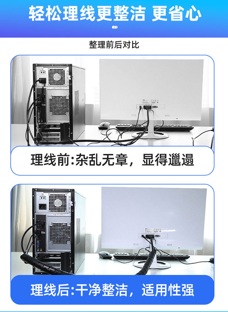 Baorui 전선 보관 보호 커버 포장 파이프 컴퓨터 와이어 하네스 물림 방지 권선 배열 전원 코드 정리 벨트