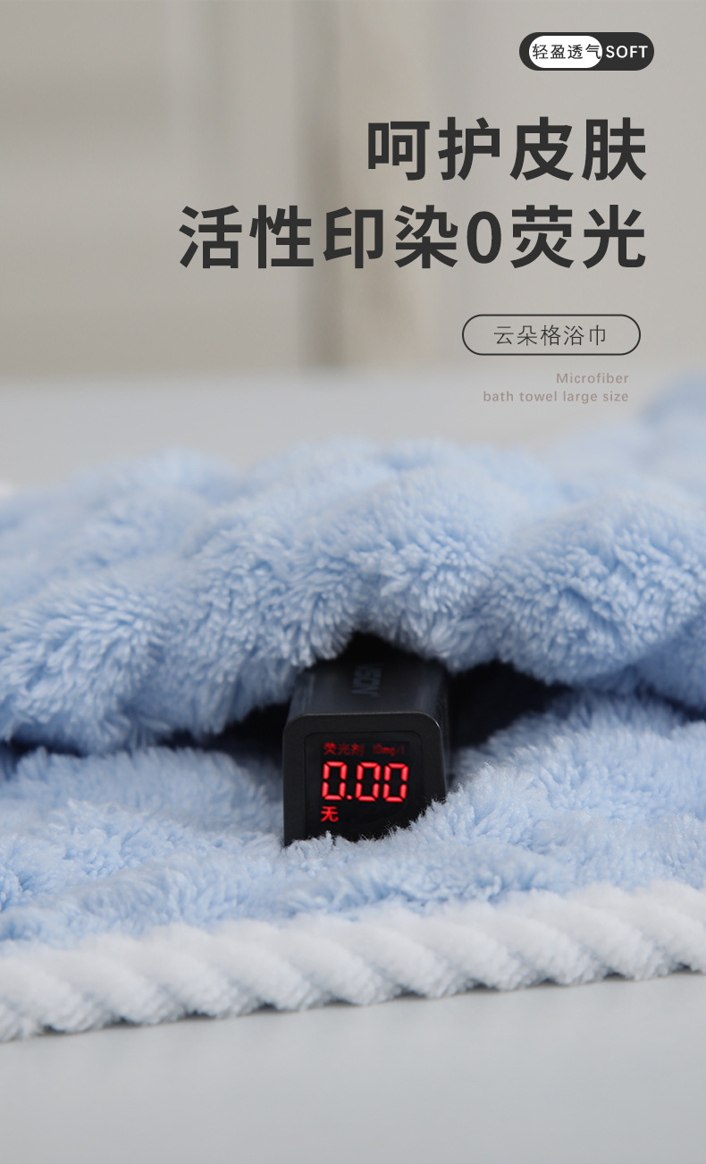 • 블루 목욕 타월 85x150 (흰색 실 가장자리)