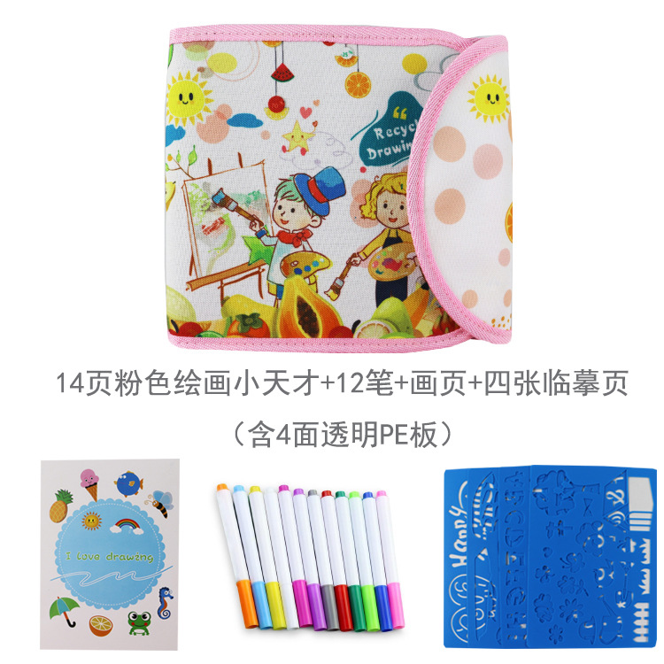 • 플립 스몰 사이즈 핑크 페인팅 천재 14 페이지 + 12 펜 + 페인팅 페이지 + 4 복사 보드