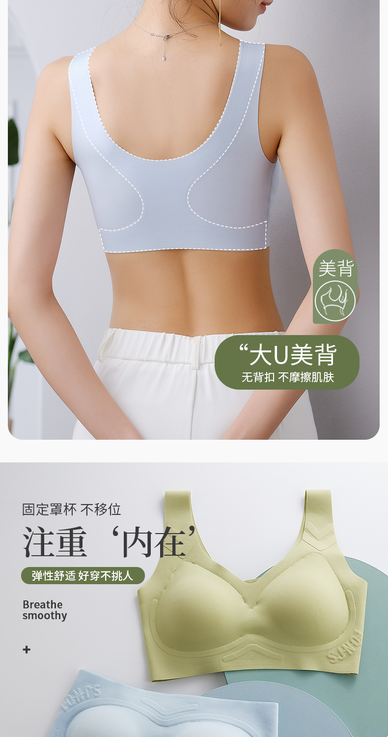 1618 여성용 스포츠 심리스 속옷, 푸쉬업 고정컵, 가슴축소, 처짐방지 브라, 아름다운 조끼 스타일 여름 얇은 스타일스토어 가기