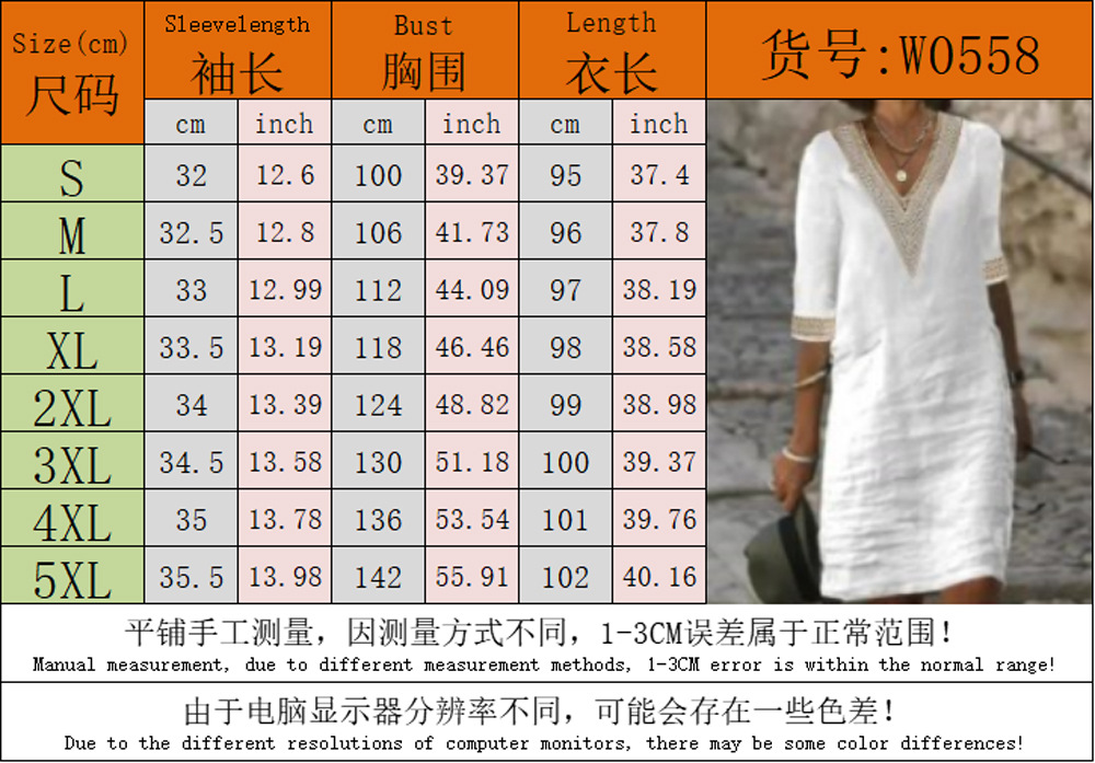 국경 유럽과 미국의 아마존 독립 스테이션 봄과 여름 새로운 솔리드 컬러 v 넥 미드 슬리브 코튼과 린넨 기질 여성을위한 우아한 드레스스토어 가기
