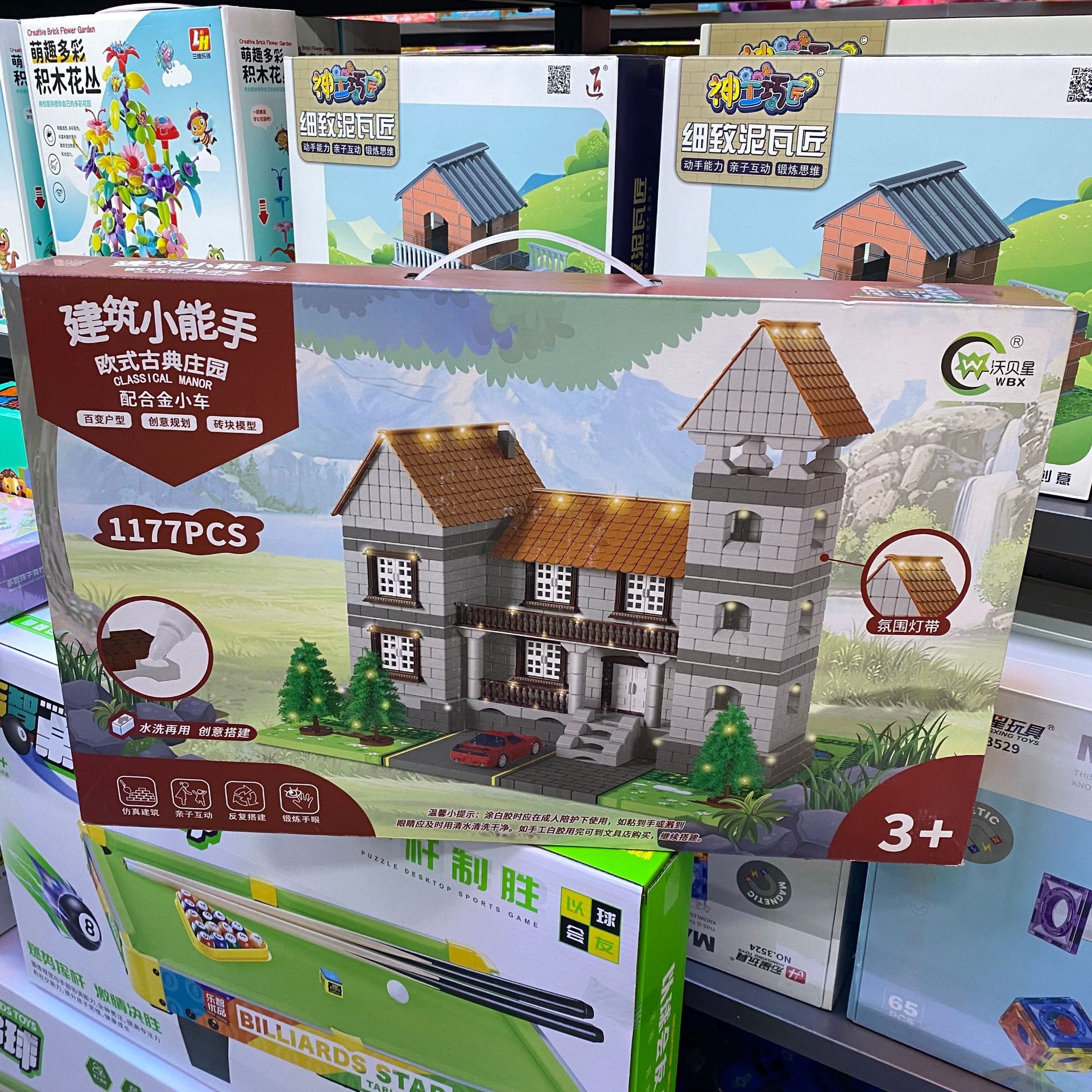 어린이 석공 건물 집 벽 장난감 작은 오두막 모델 수제 DIY 벽돌 건축가 미니 시멘트스토어 가기