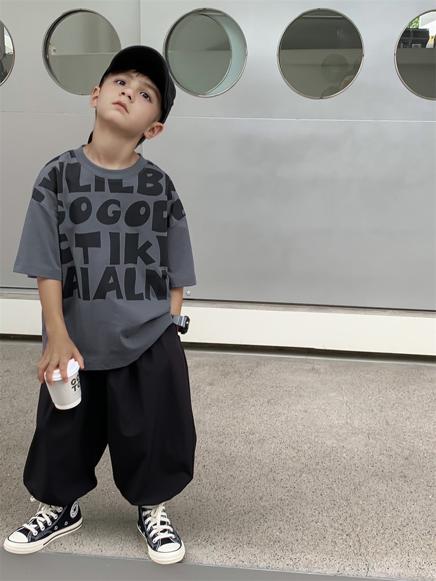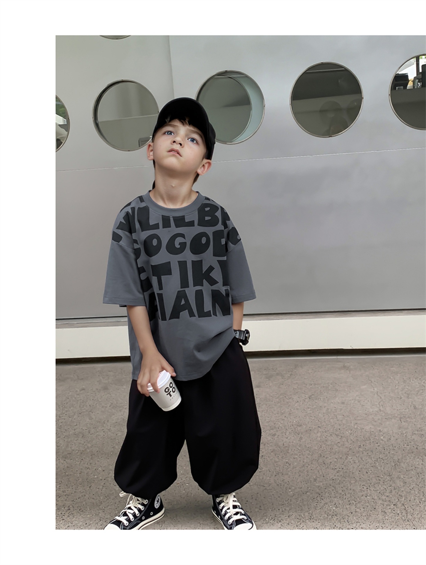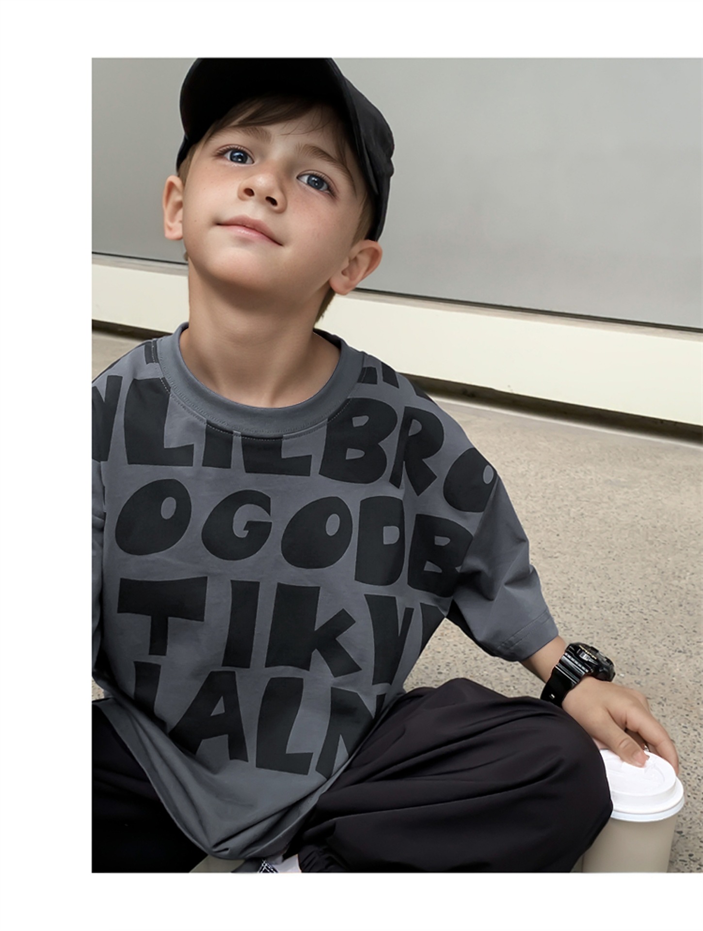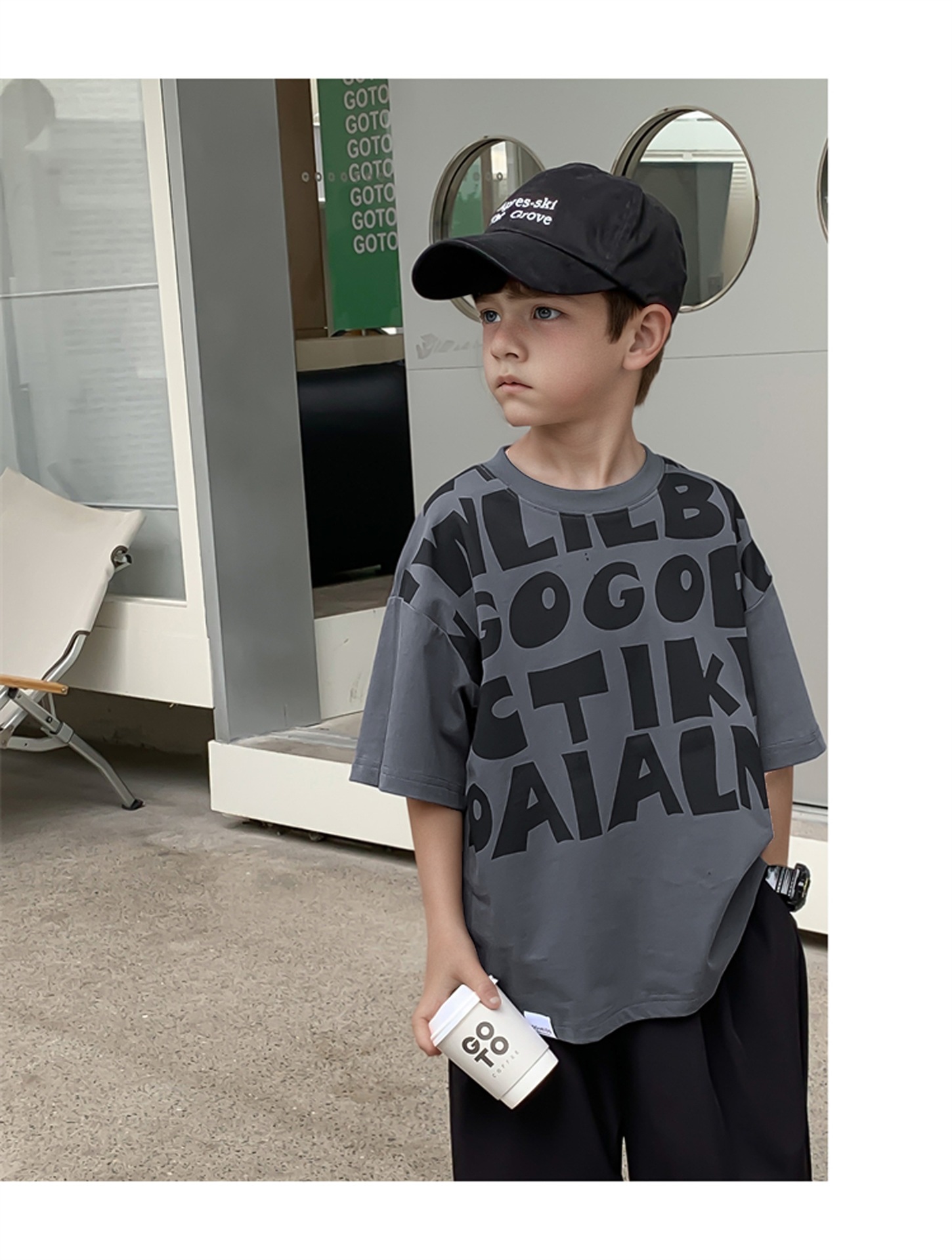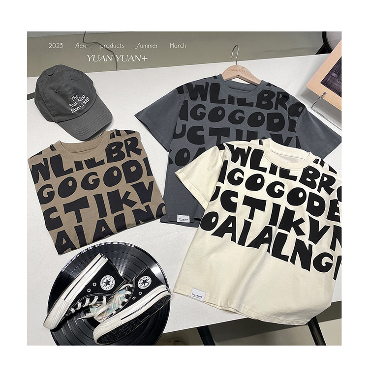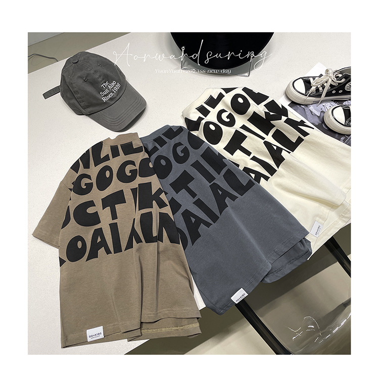 2025 소년과 소녀를위한 새로운 여름 옷 라운드 넥 티셔츠 반팔 유행 어린이 반팔 한국 스타일 베이비 탑 남성 유행스토어 가기