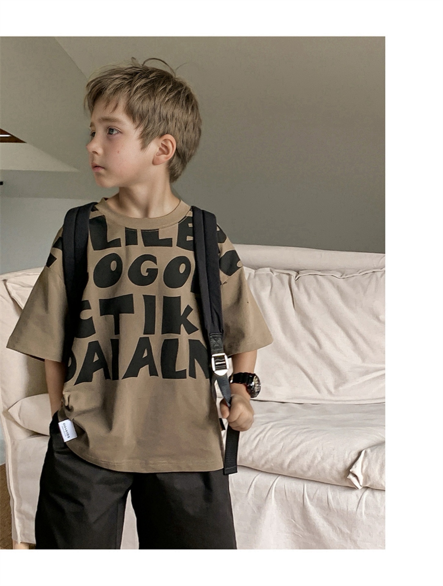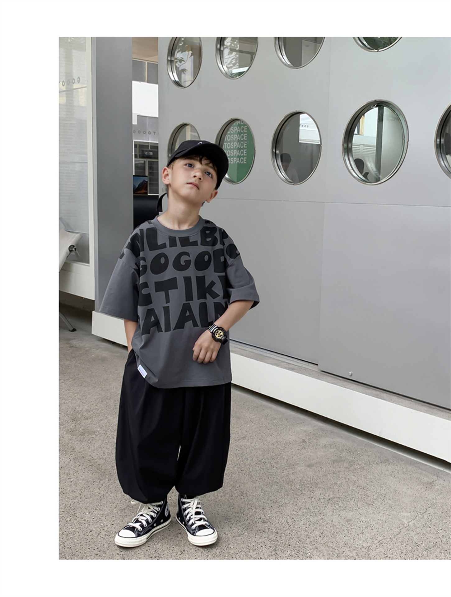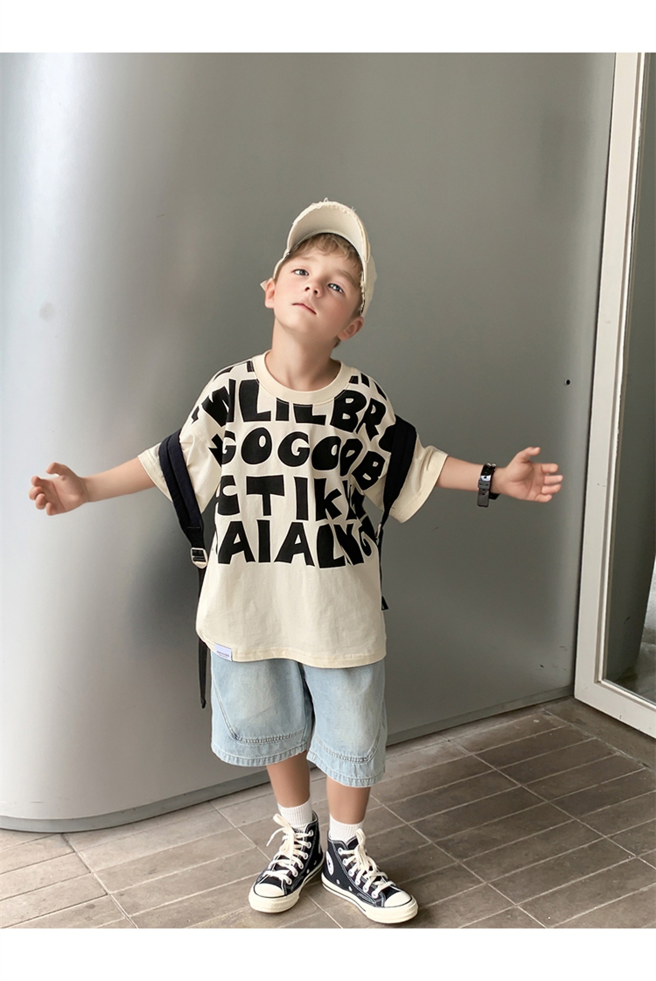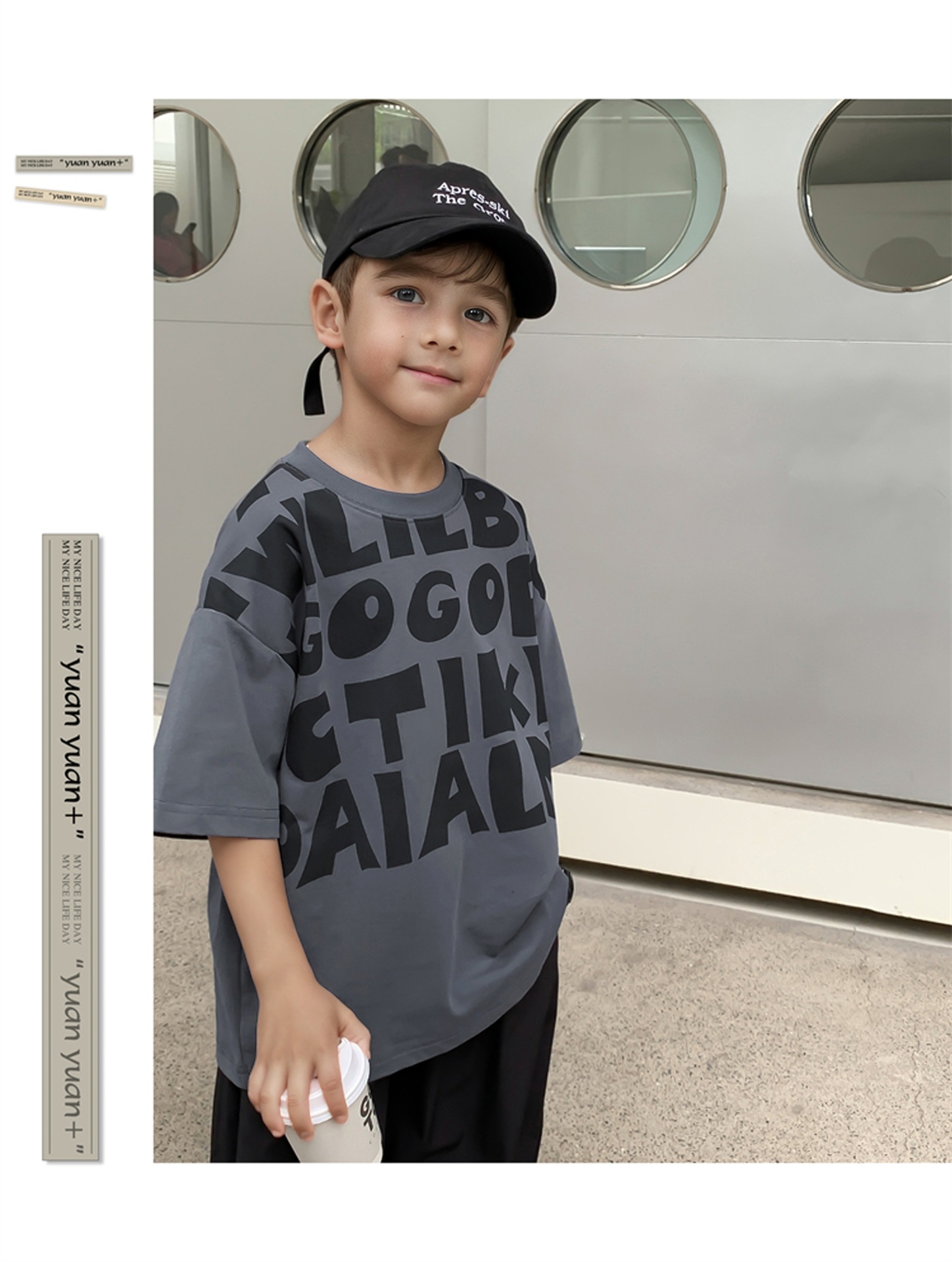 2025 소년과 소녀를위한 새로운 여름 옷 라운드 넥 티셔츠 반팔 유행 어린이 반팔 한국 스타일 베이비 탑 남성 유행스토어 가기