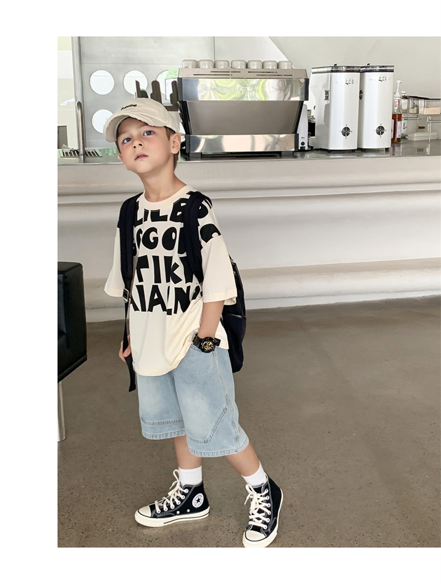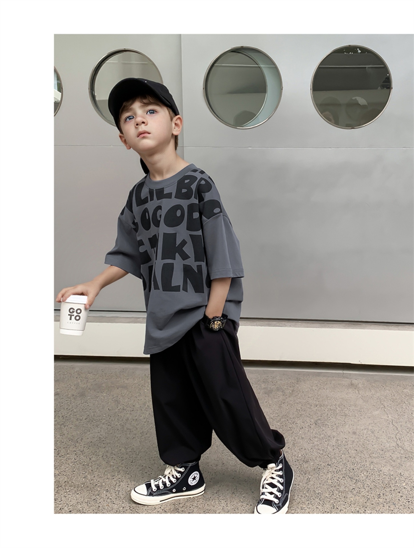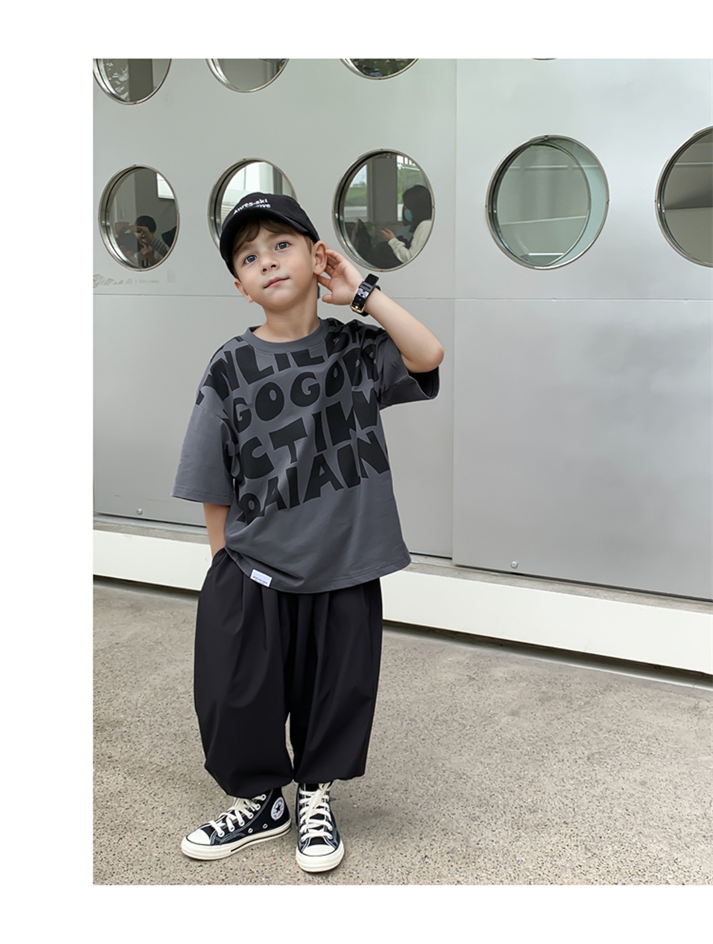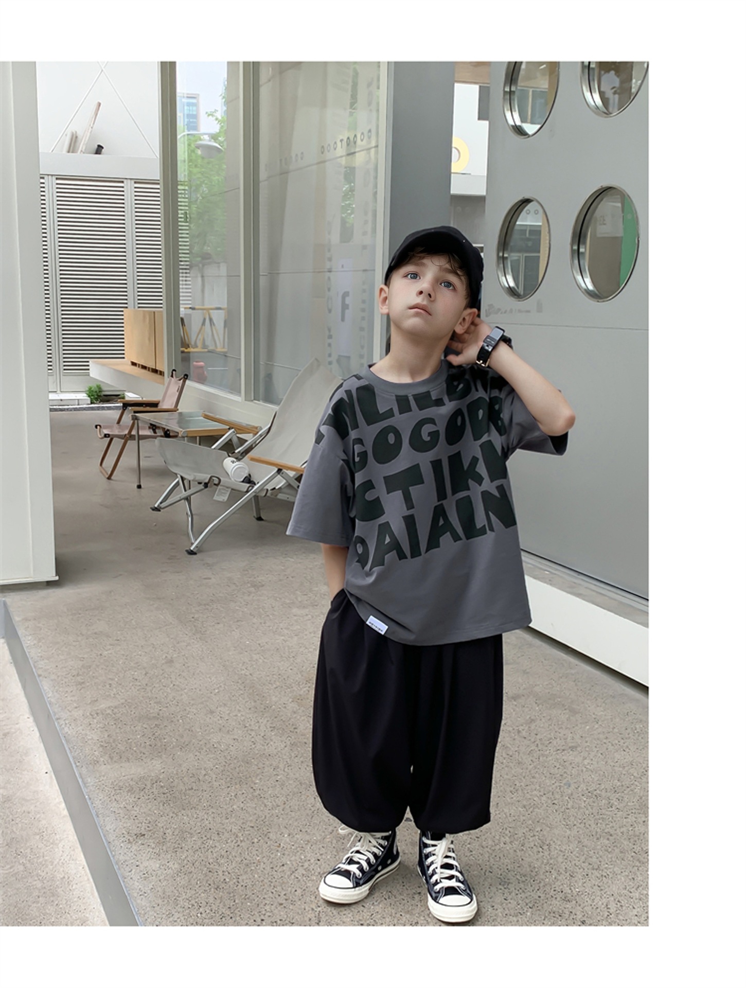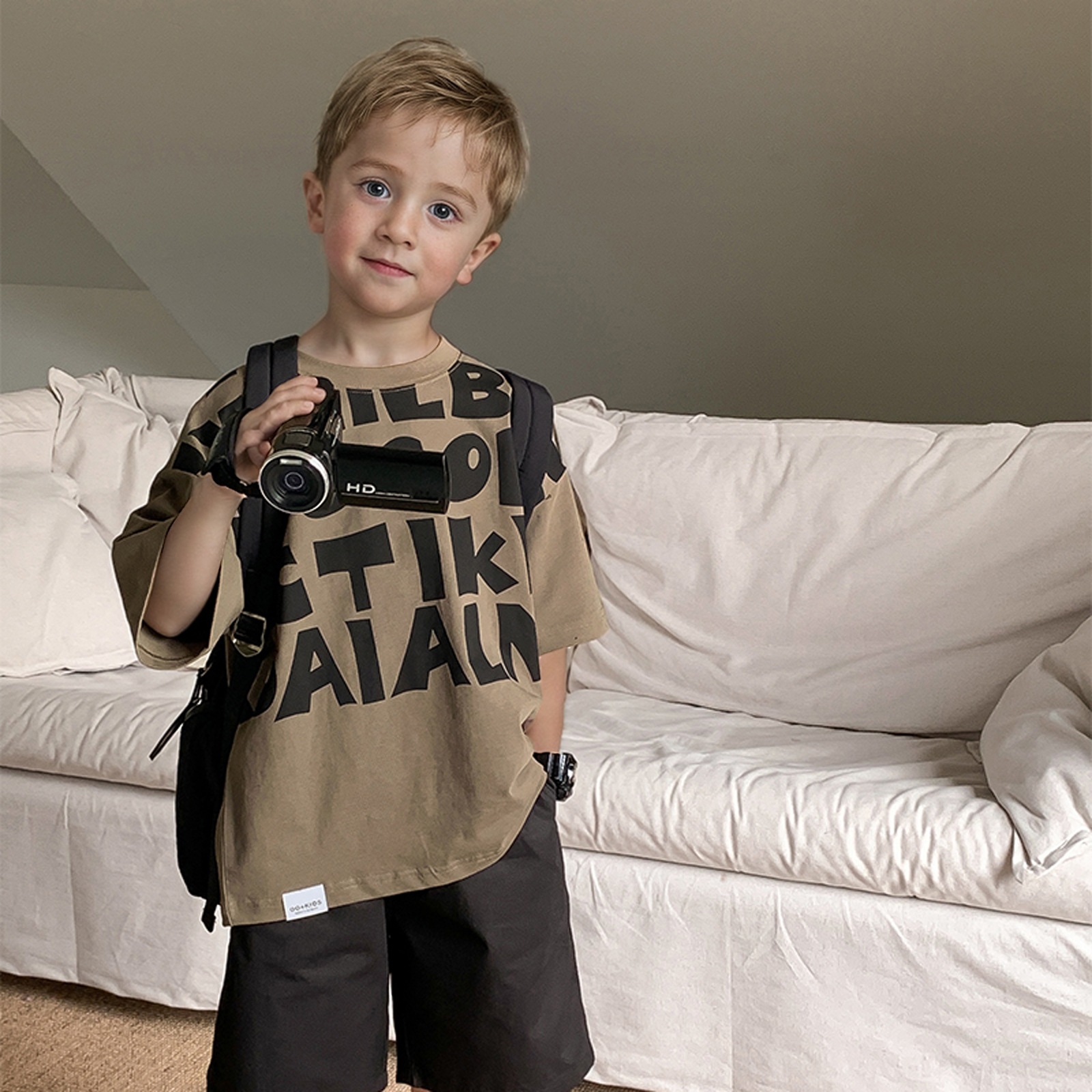 2025 소년과 소녀를위한 새로운 여름 옷 라운드 넥 티셔츠 반팔 유행 어린이 반팔 한국 스타일 베이비 탑 남성 유행스토어 가기