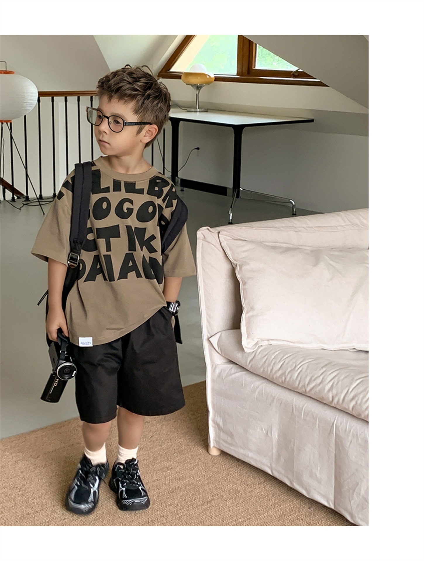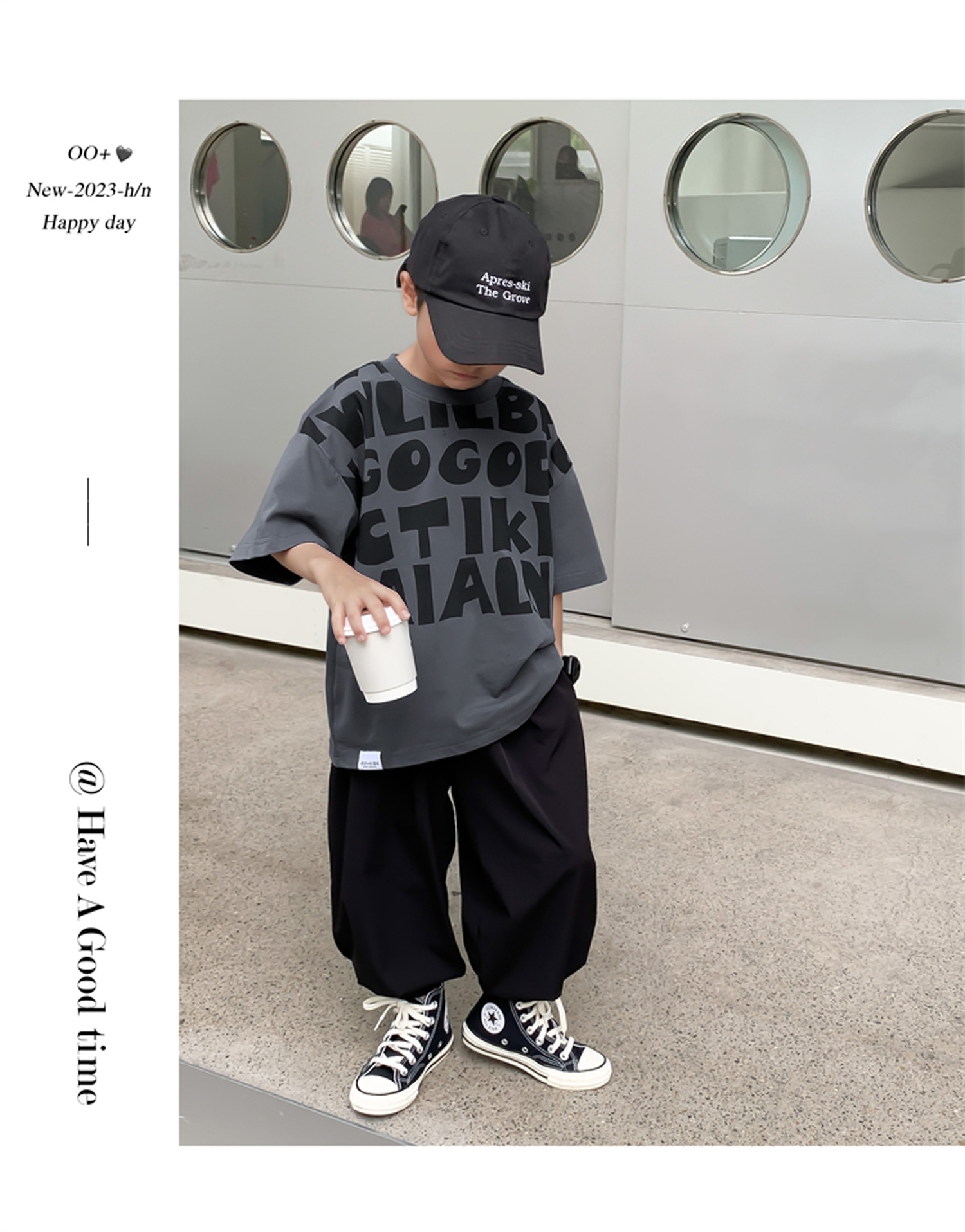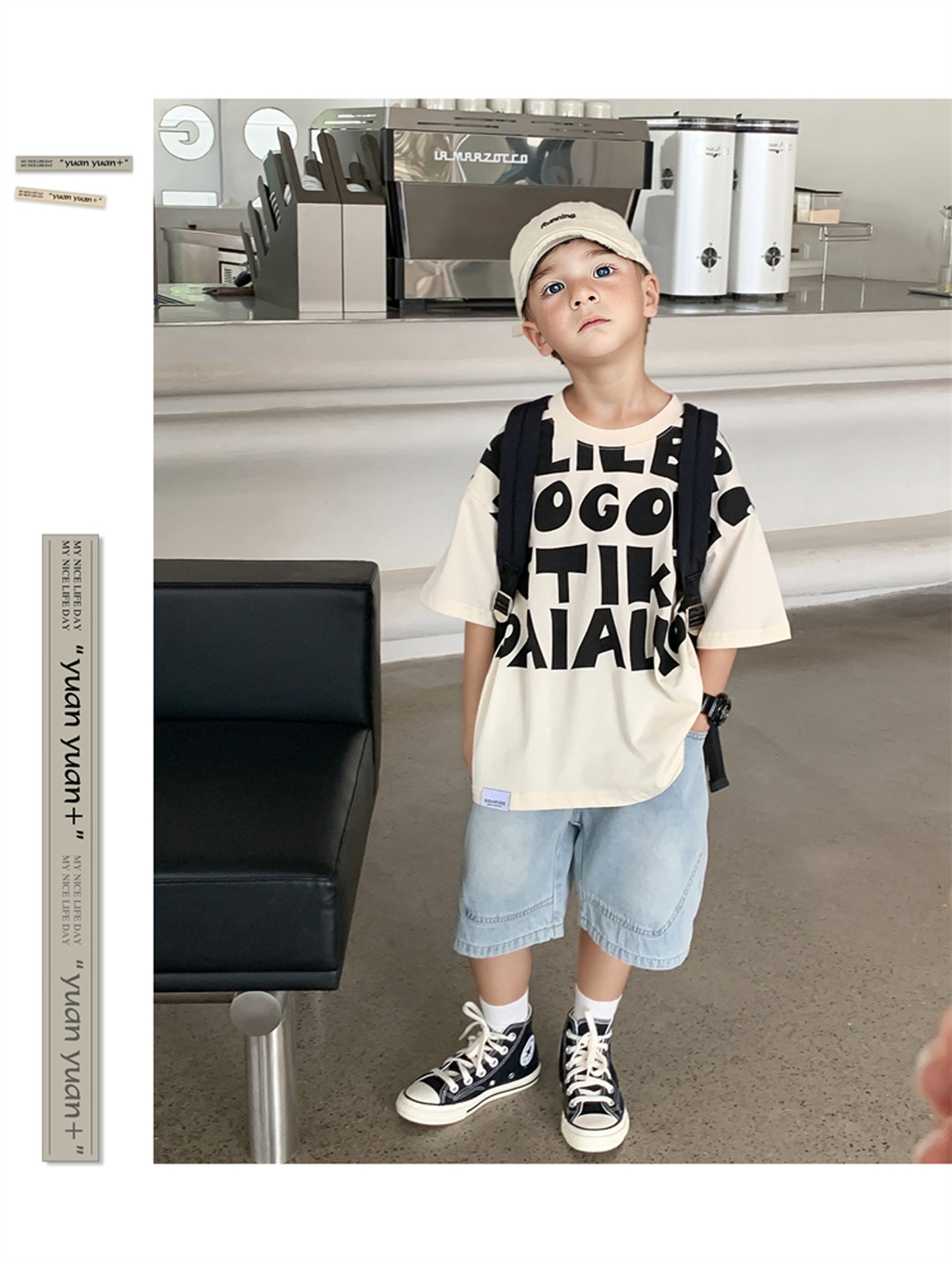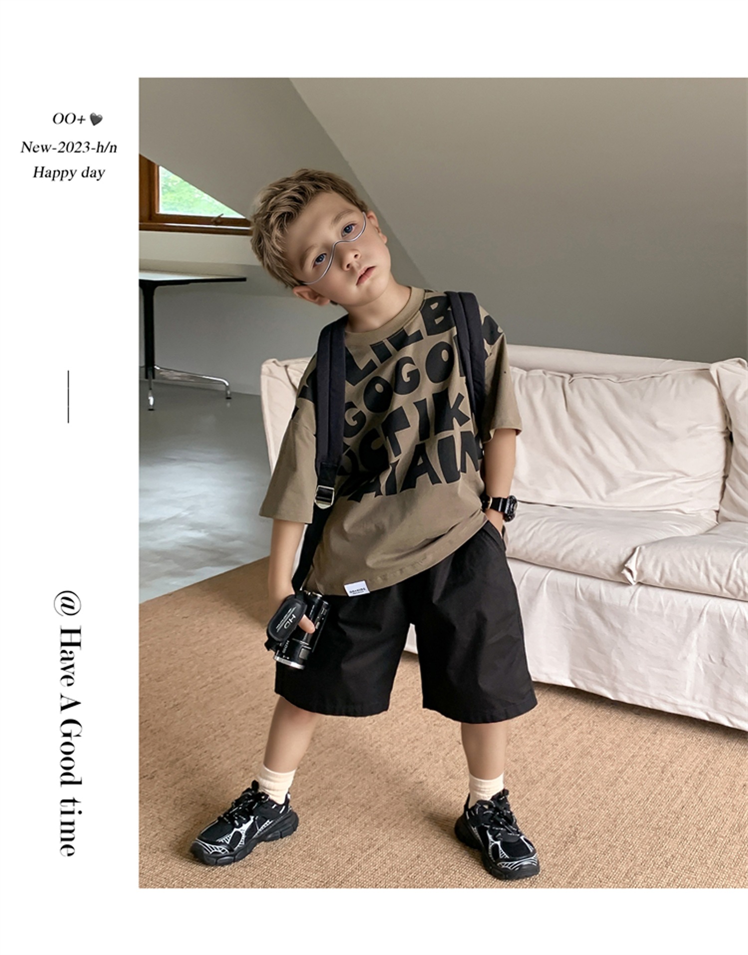 2025 소년과 소녀를위한 새로운 여름 옷 라운드 넥 티셔츠 반팔 유행 어린이 반팔 한국 스타일 베이비 탑 남성 유행스토어 가기