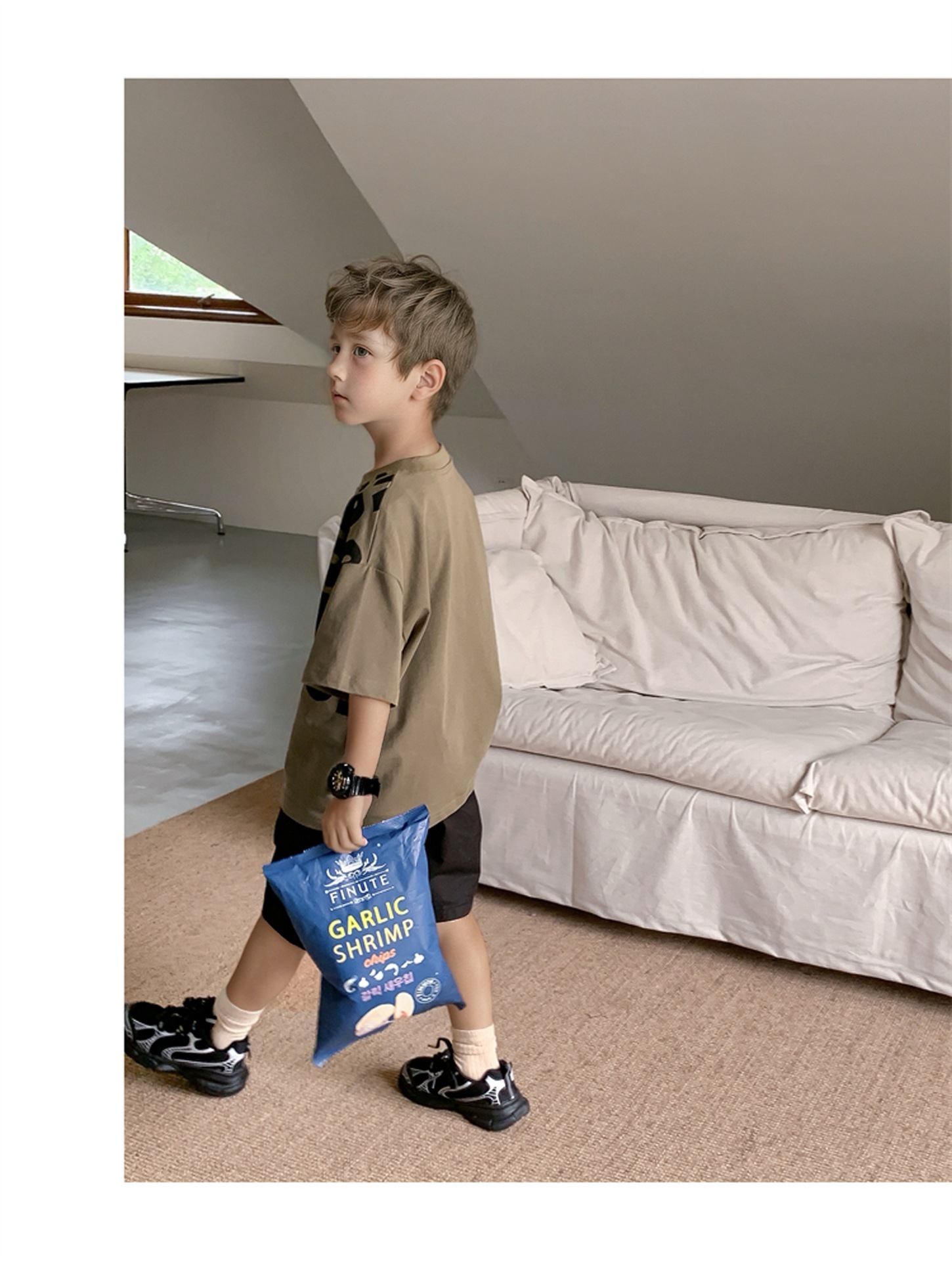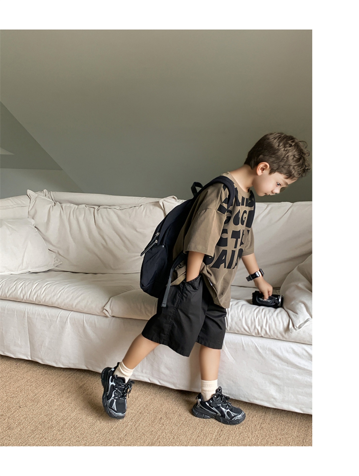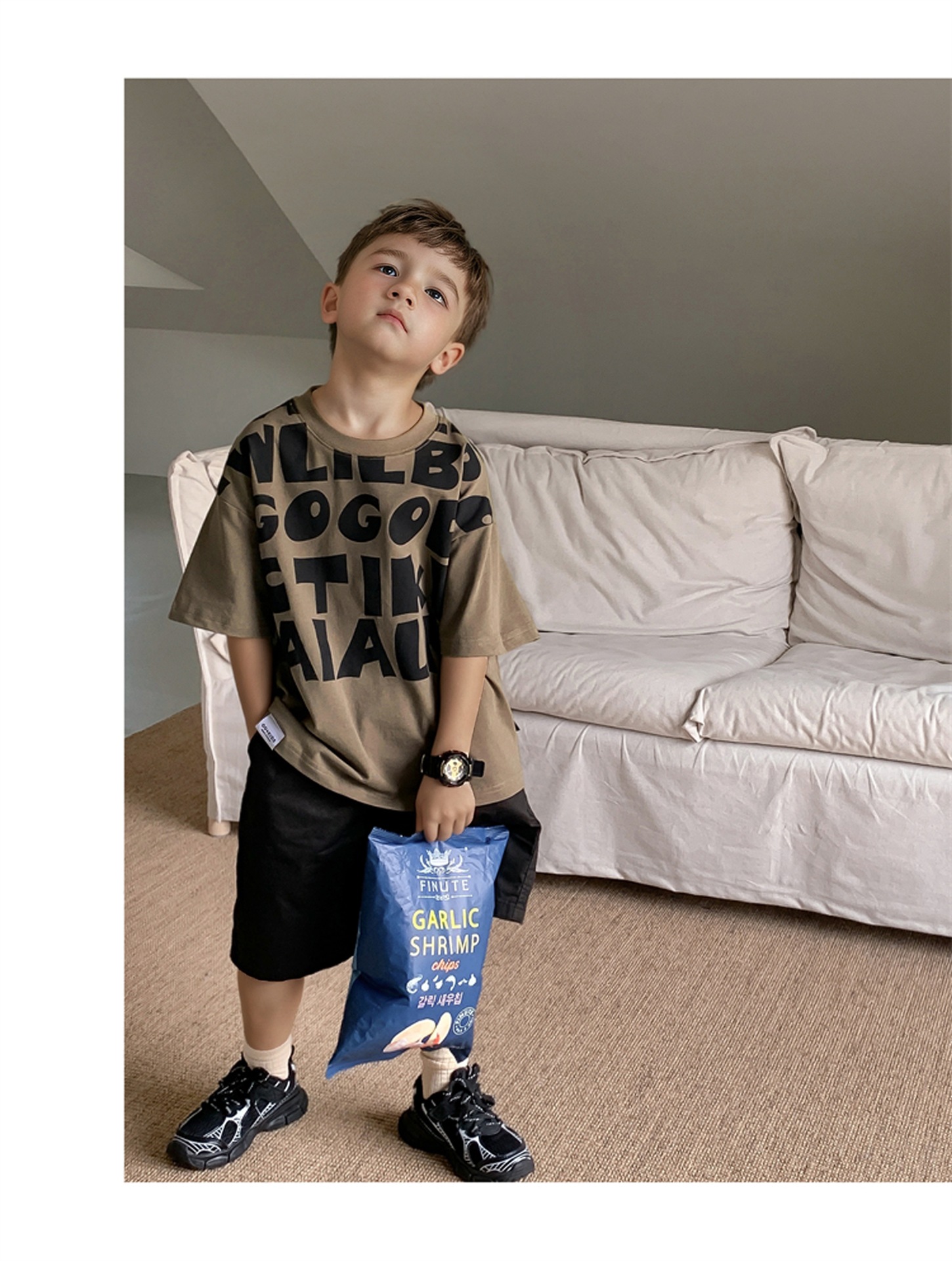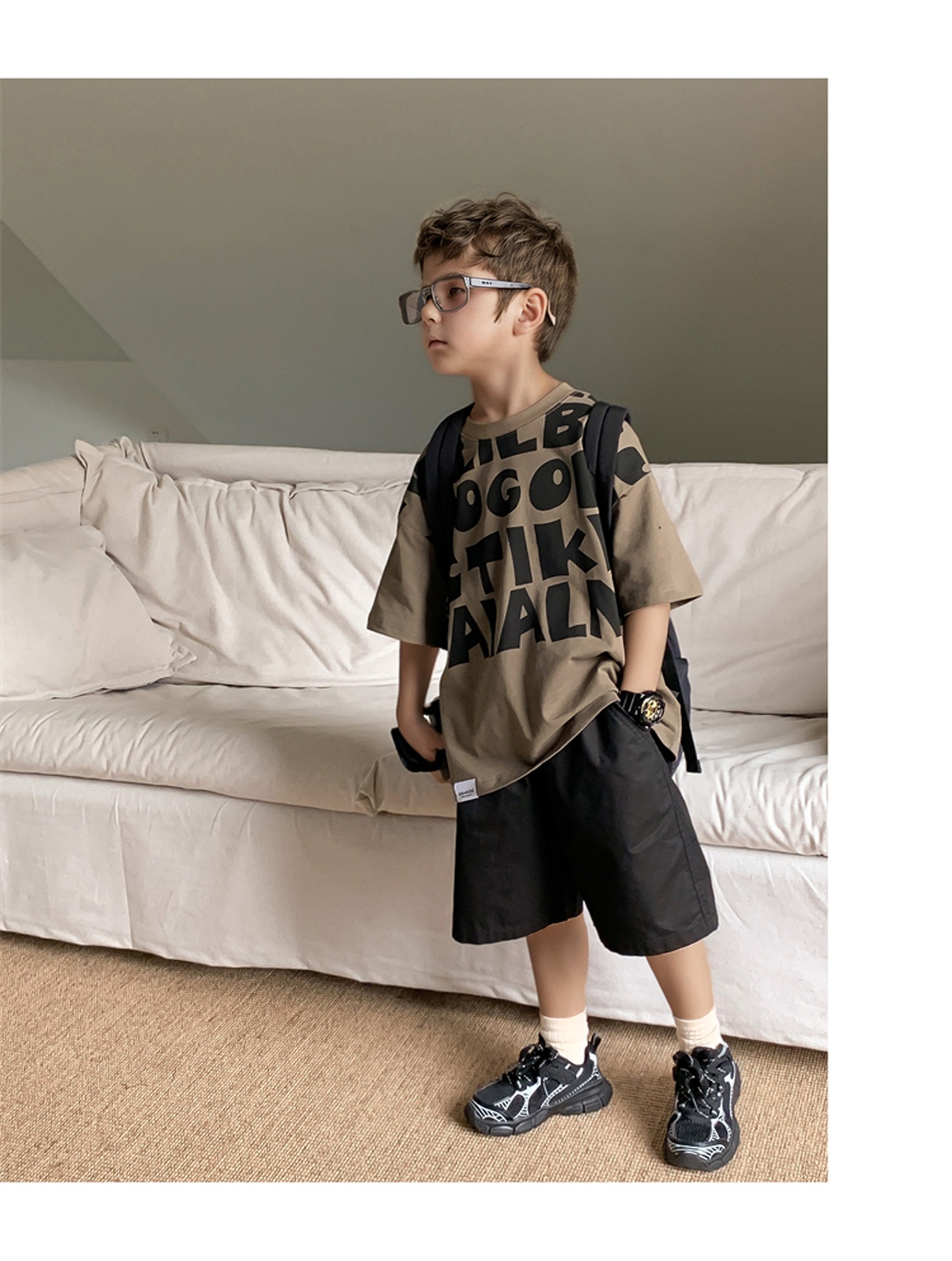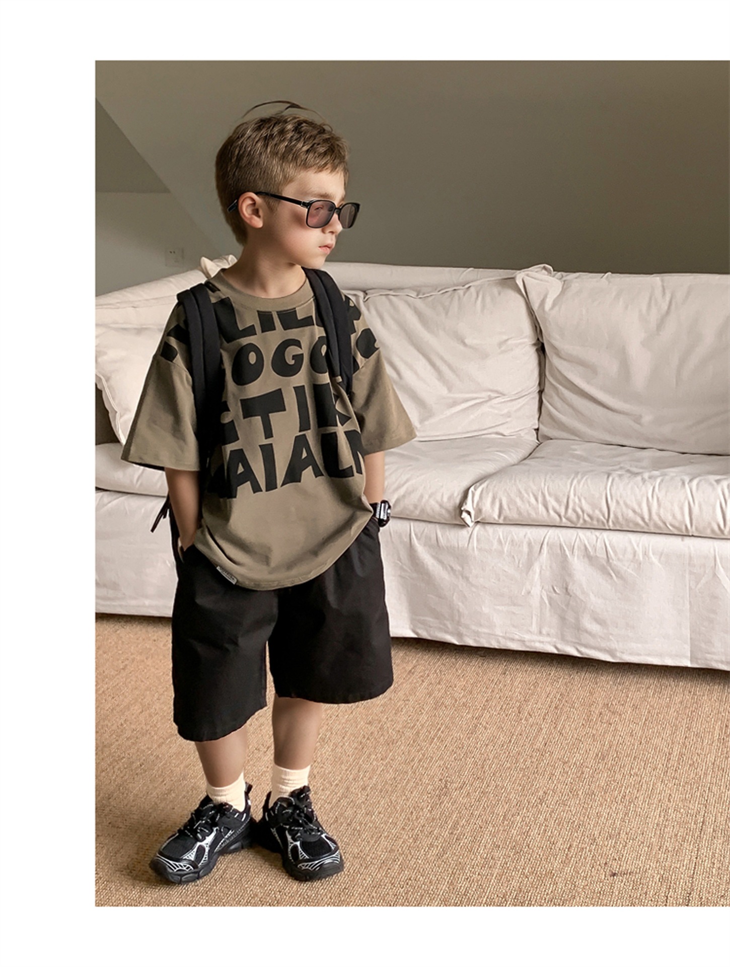 2025 소년과 소녀를위한 새로운 여름 옷 라운드 넥 티셔츠 반팔 유행 어린이 반팔 한국 스타일 베이비 탑 남성 유행스토어 가기