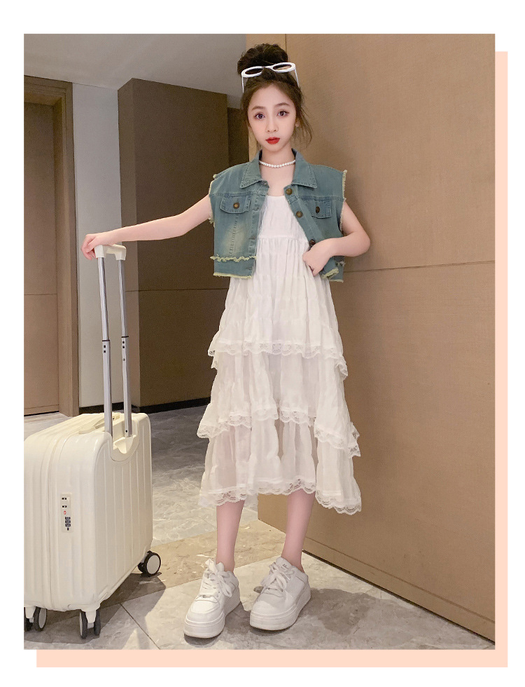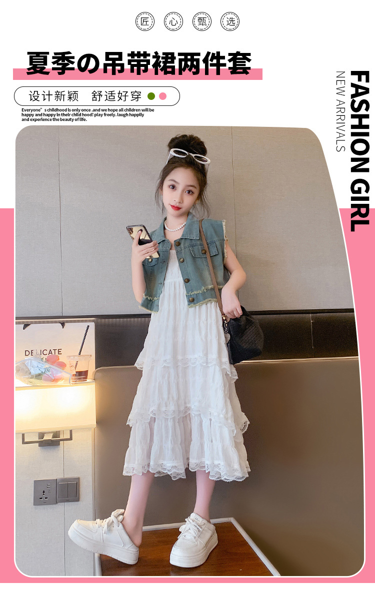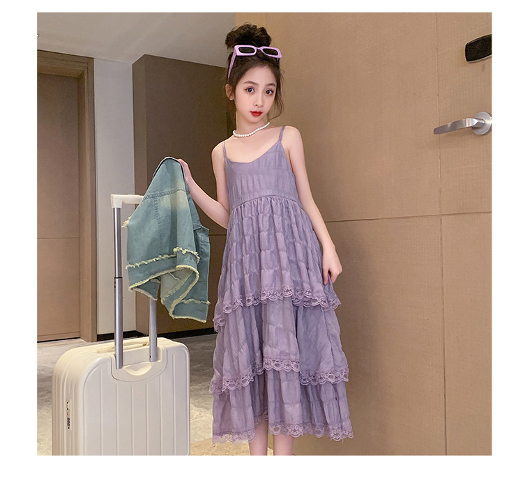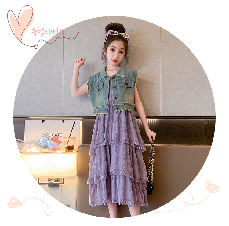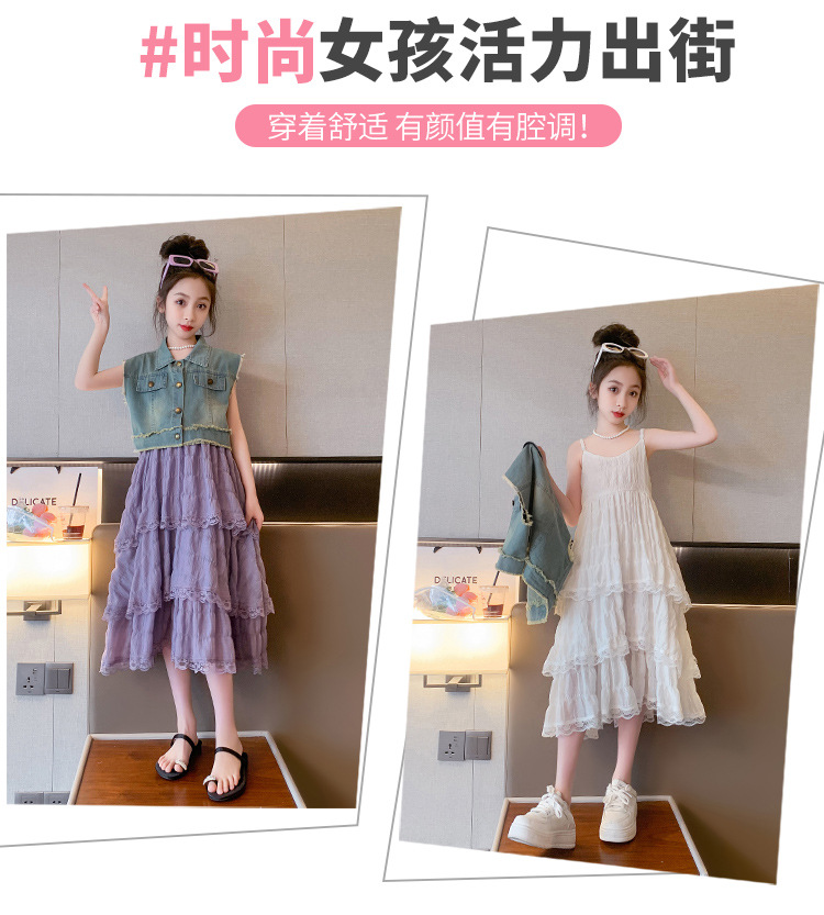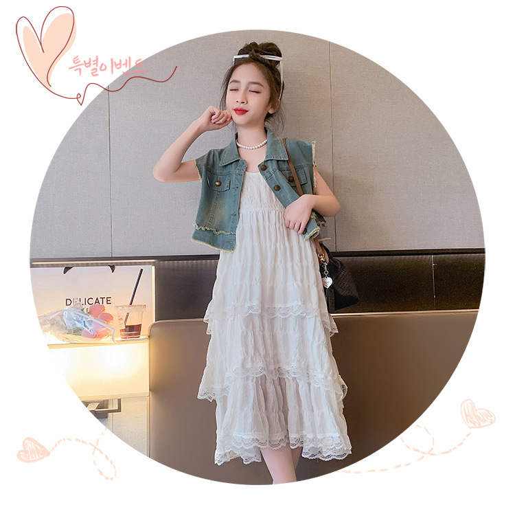 여아용 멜빵 원피스 여름 신상 어린이용 세련된 케이크 롱 드레스 중대형 어린이용 패셔너블한 민소매 원피스스토어 가기