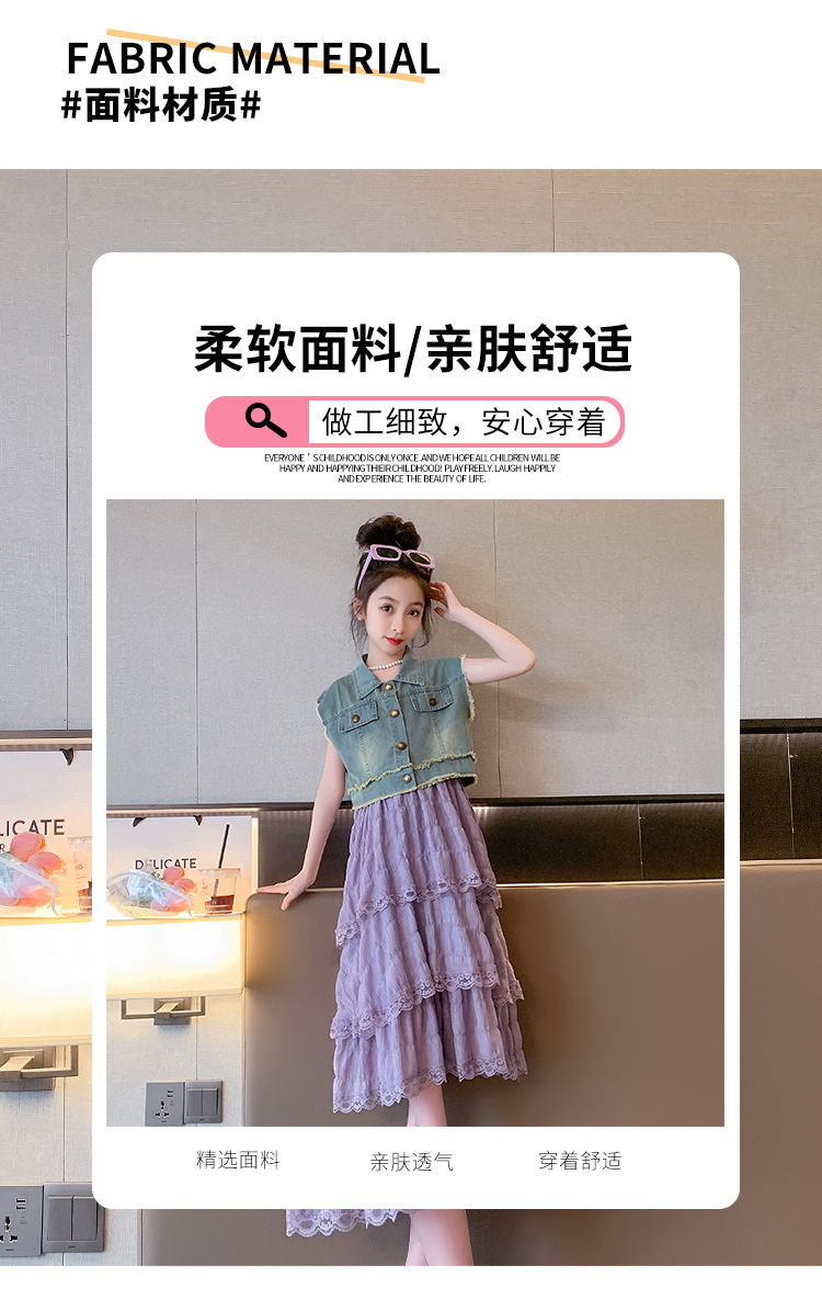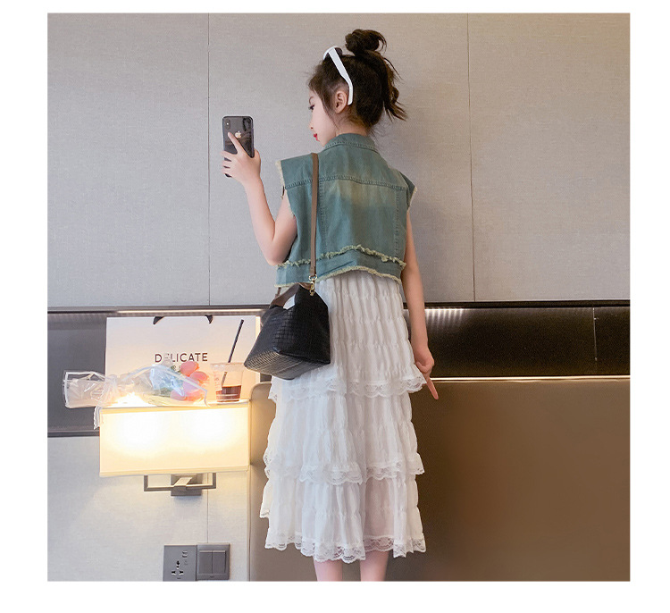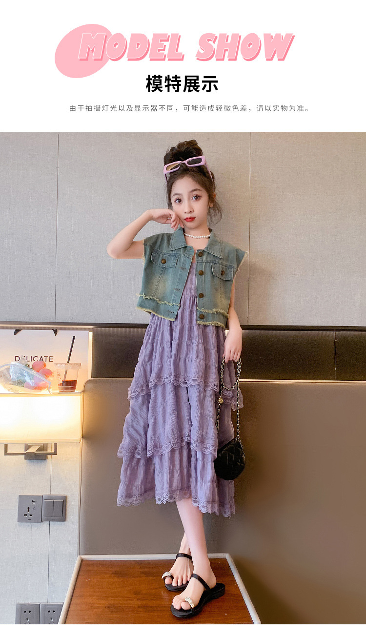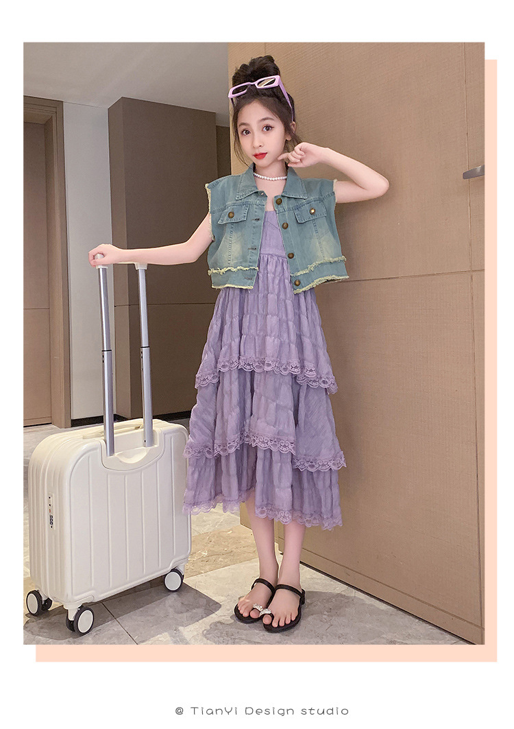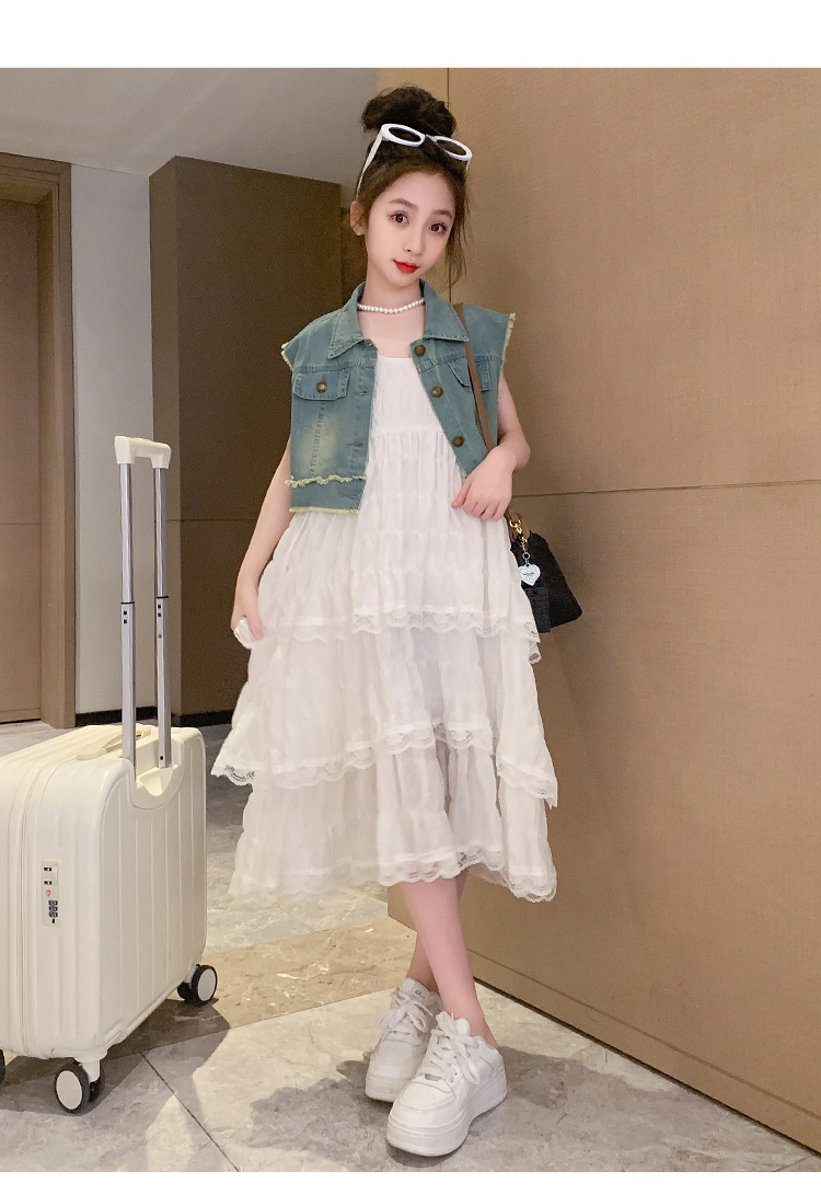 여아용 멜빵 원피스 여름 신상 어린이용 세련된 케이크 롱 드레스 중대형 어린이용 패셔너블한 민소매 원피스스토어 가기
