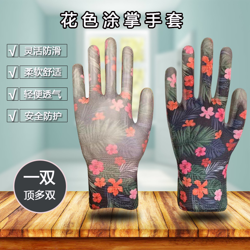 맞춤형 색상 PU 코팅 손바닥 장갑 나일론 인쇄 노동 보호 장갑 니트 정원 딥 여성용 수제 코팅 장갑