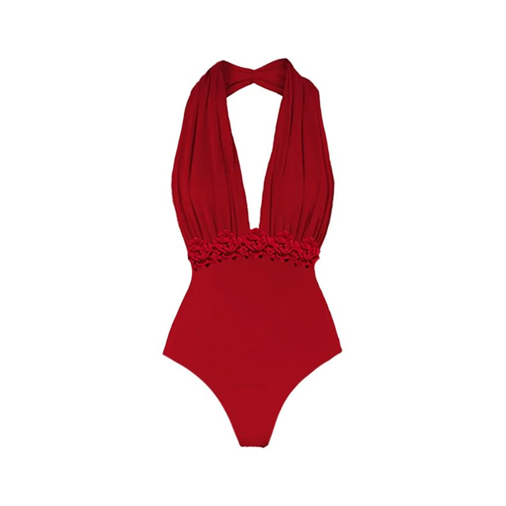 2023 유럽과 미국의 새로운 아마존 AliExpress 단색 V-넥 원피스 수영복 여성용 해변 휴가 원피스 수영복