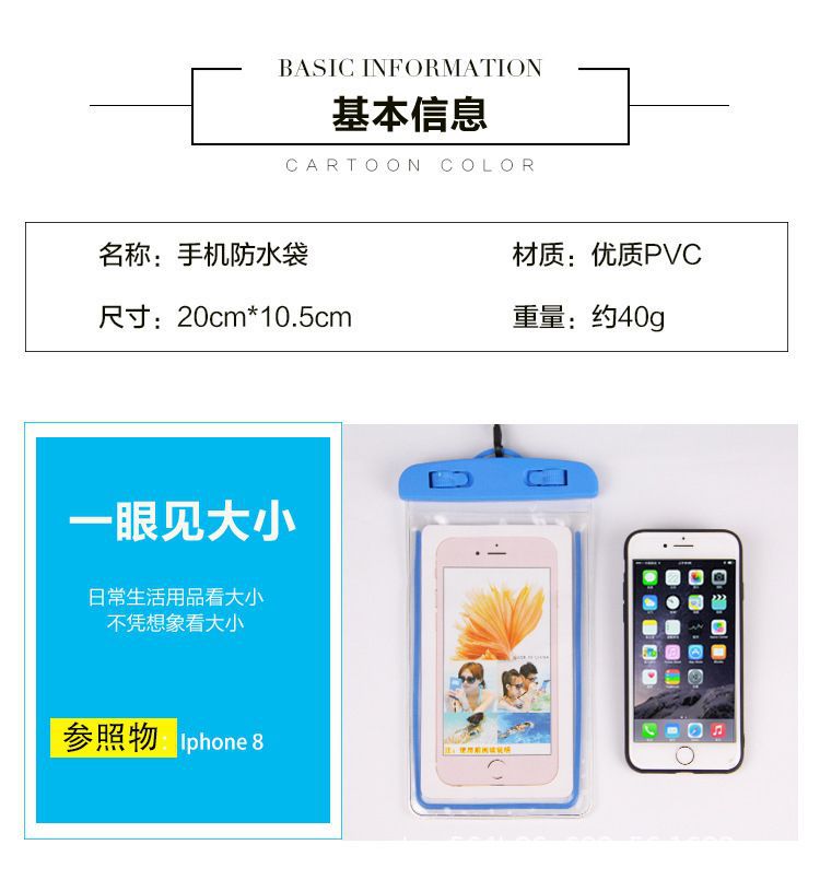 빛나는 휴대 전화 방수 가방 표류 수영 휴대 전화 케이스 포장 팔 벨트 휴대 전화 방수 케이스 터치 스크린 유물 다이빙스토어 가기