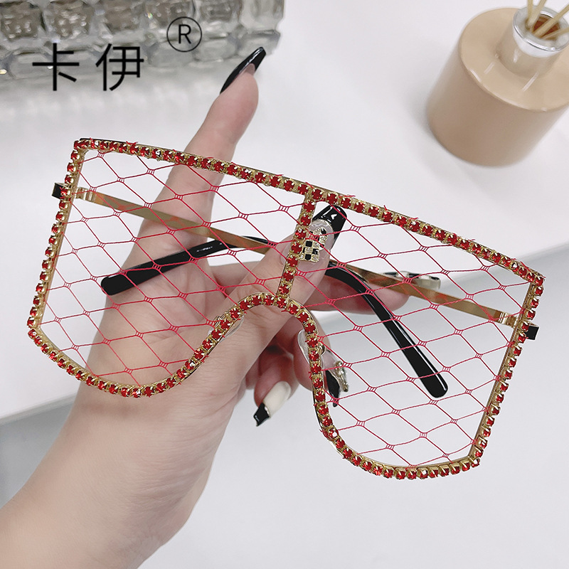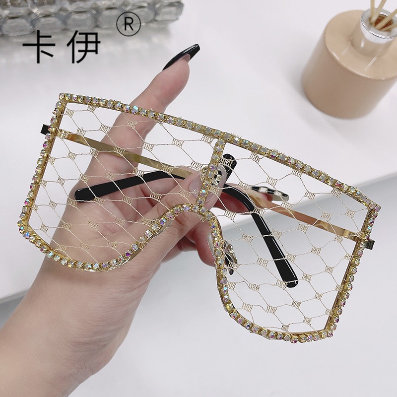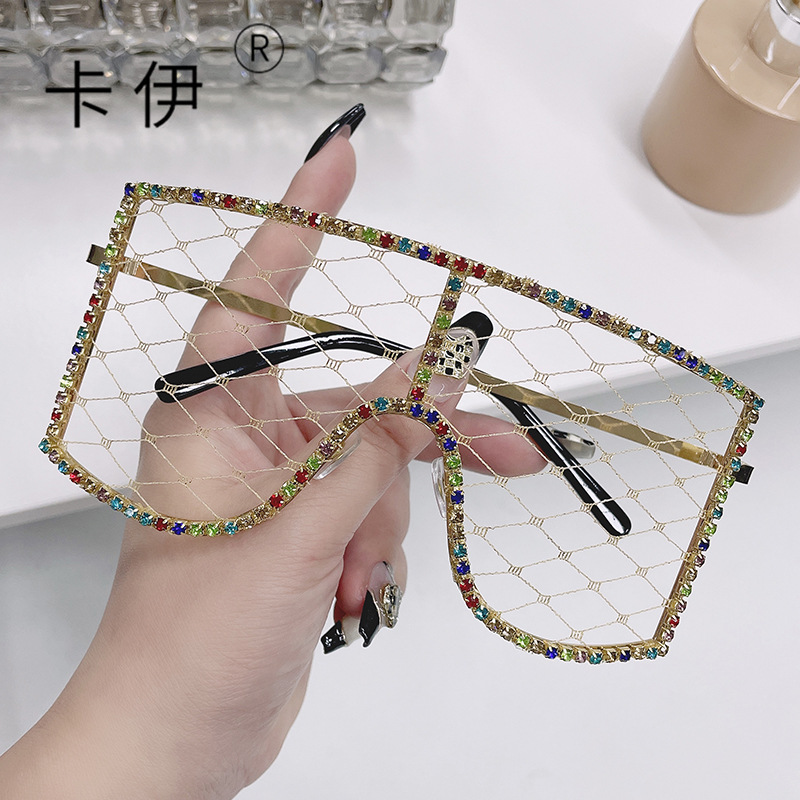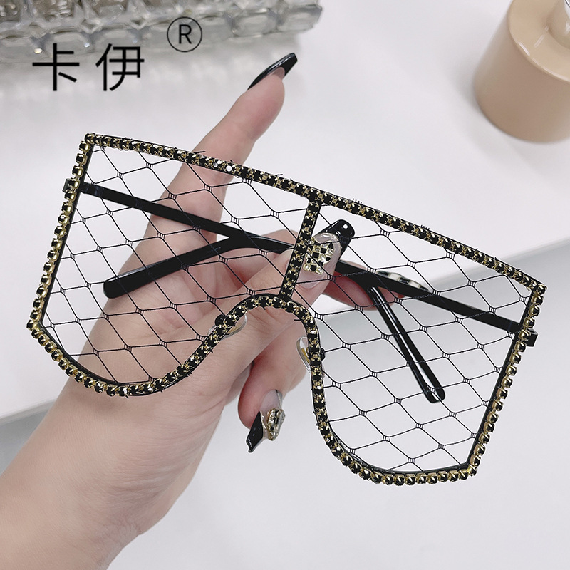 DIY 메쉬 세련된 안경 유럽과 미국 여성 파티 볼 다이아몬드 박힌 선글라스 Tiktok 라이브 장식 안경스토어 가기