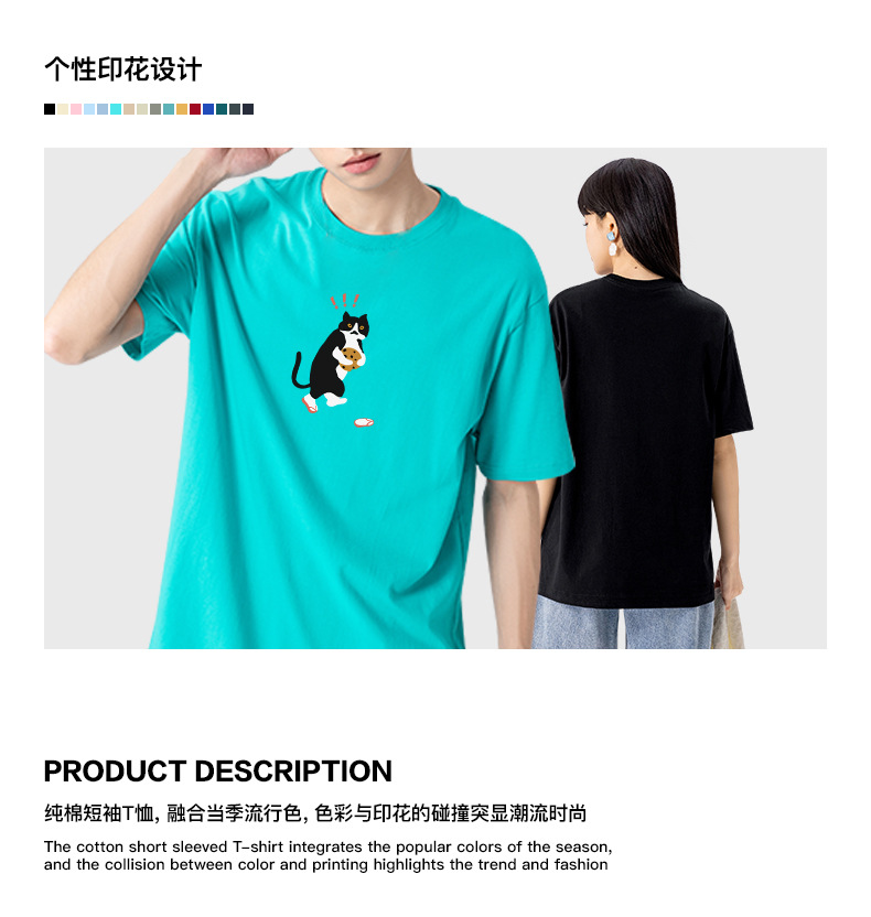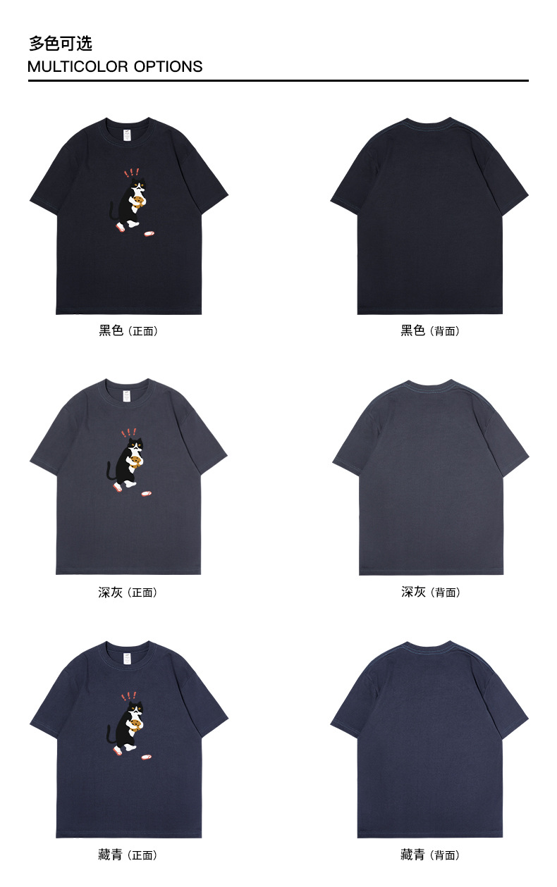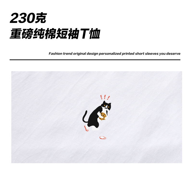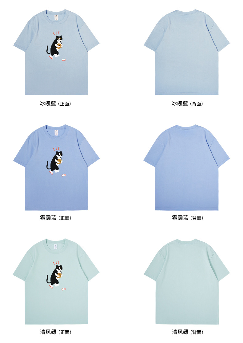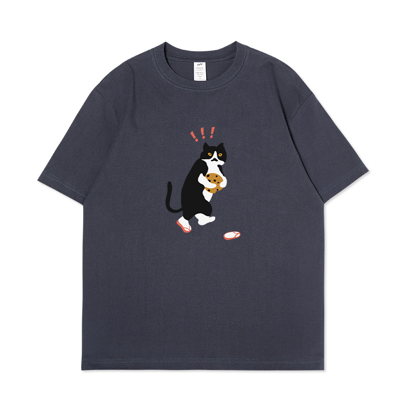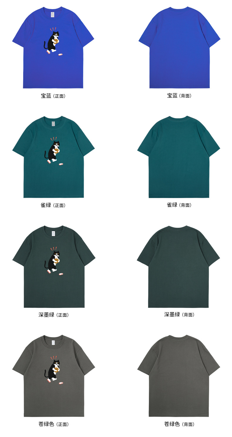 쿠키 고양이 반팔 남성용 헤비 코튼 여름 남성용 올매치 루즈한 화이트 캐주얼 반팔 베이스 셔츠 남성용 티셔츠스토어 가기