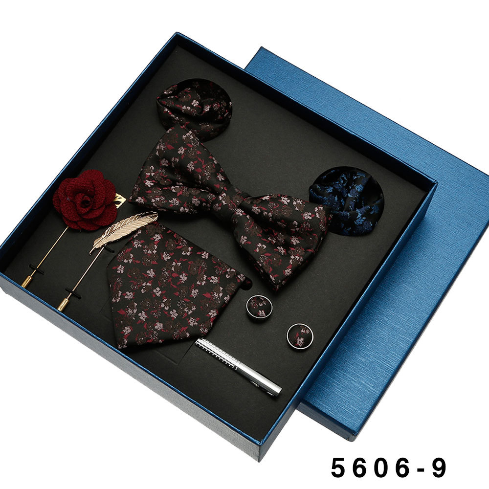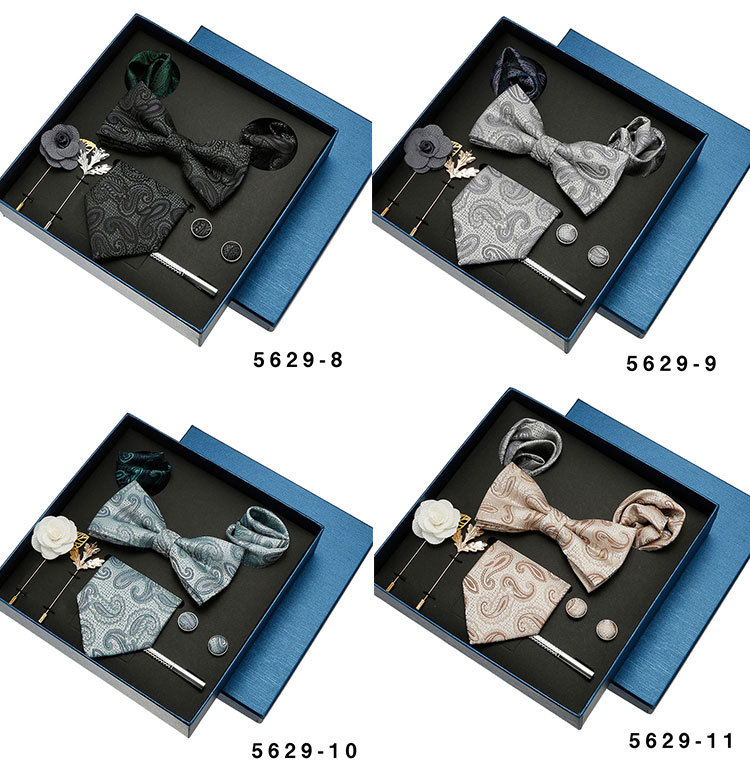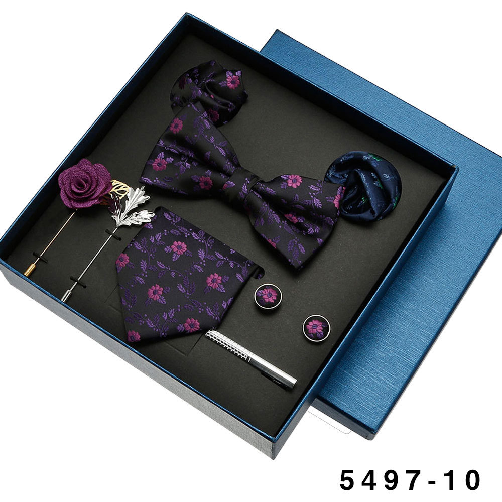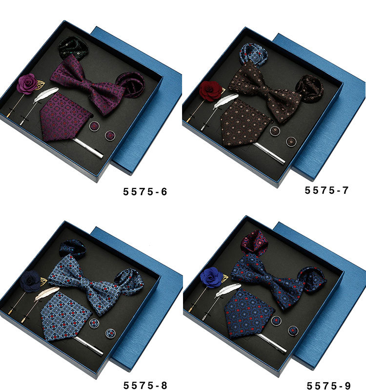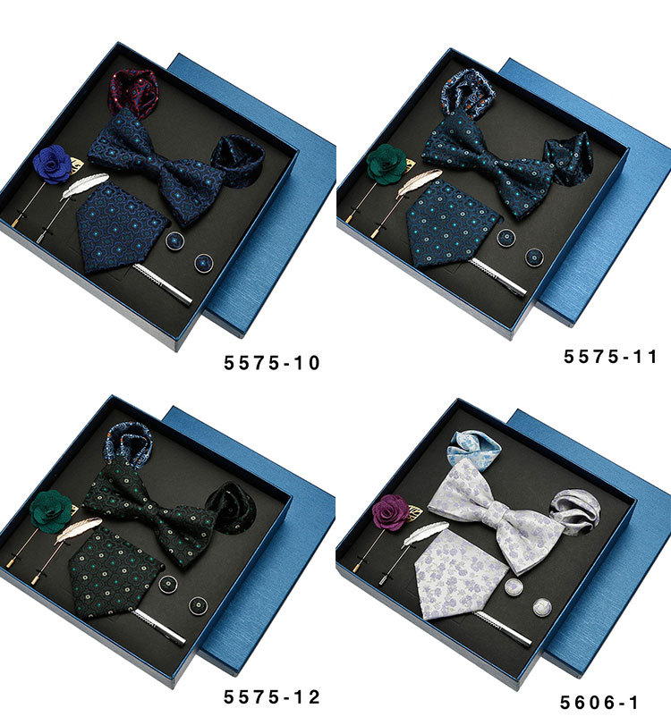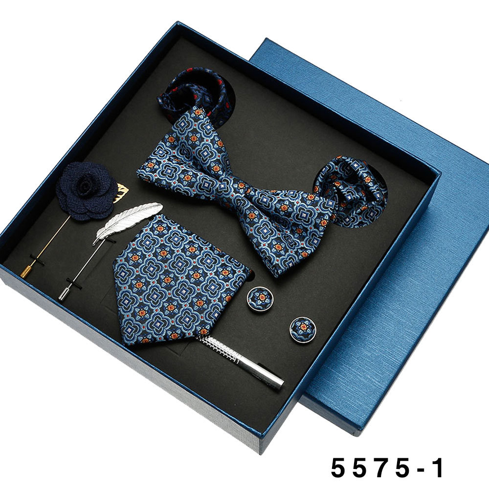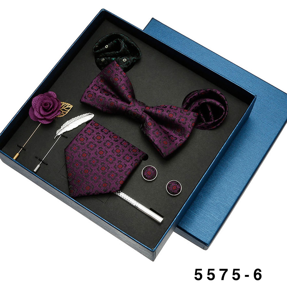 넥타이 8 피스 세트 남자의 정장 비즈니스 세트 포켓 스퀘어 세트 선물 상자 고급 웨딩 신랑 웨딩 세트