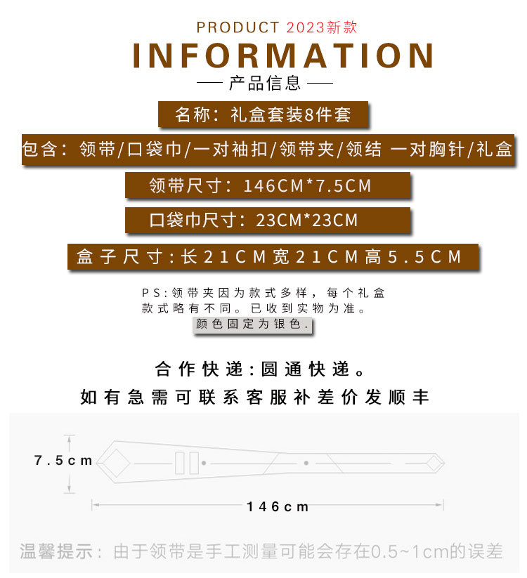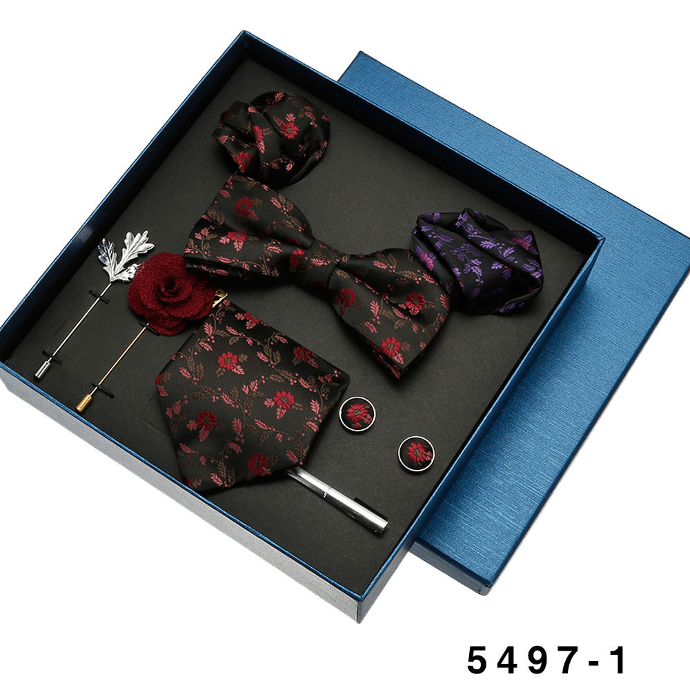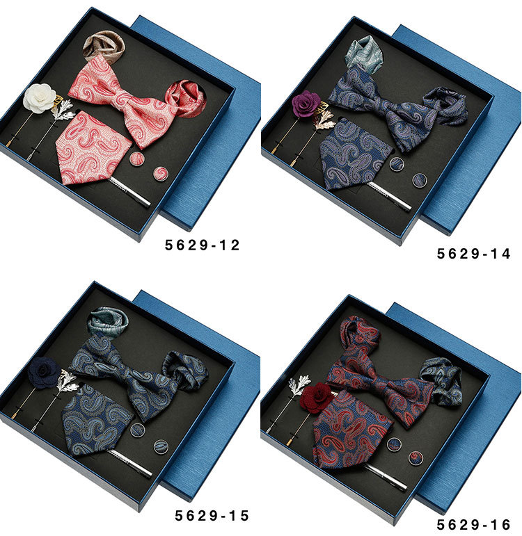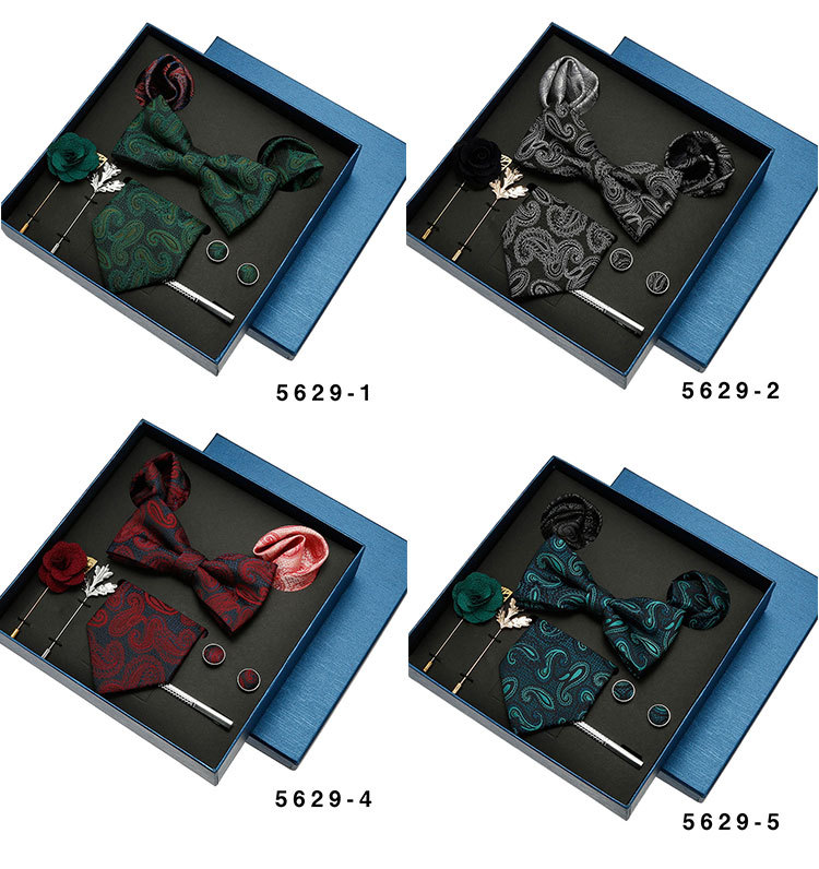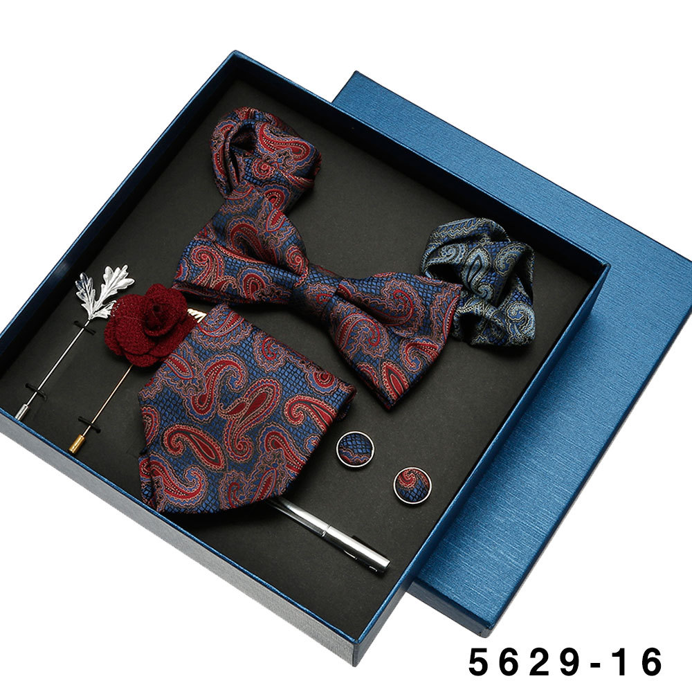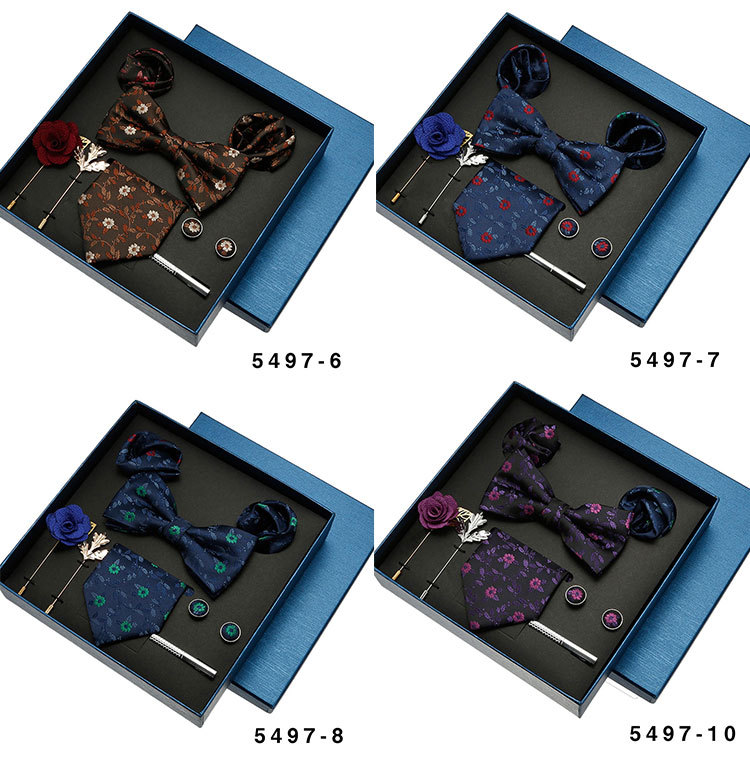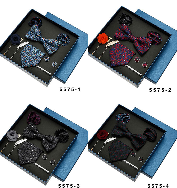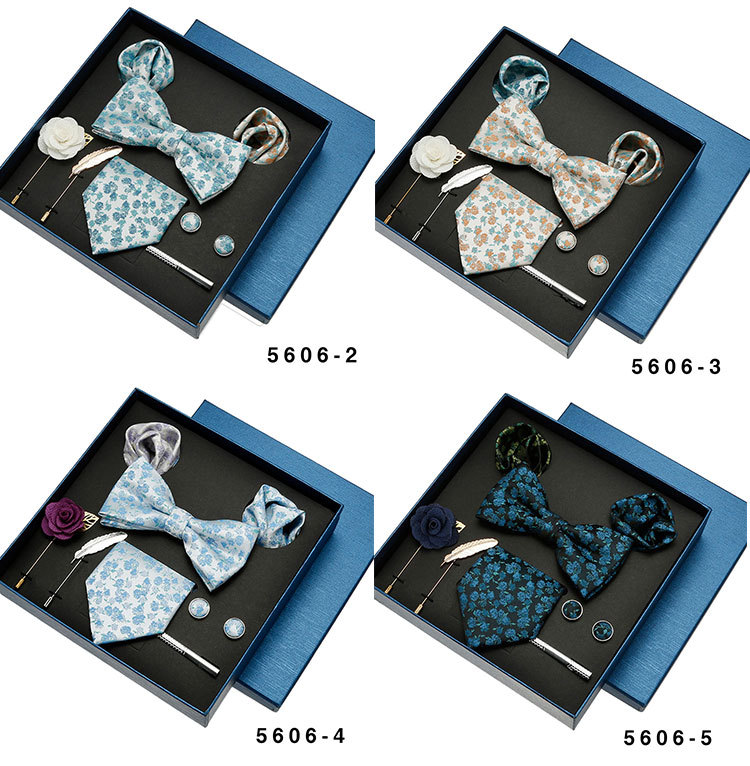 넥타이 8 피스 세트 남자의 정장 비즈니스 세트 포켓 스퀘어 세트 선물 상자 고급 웨딩 신랑 웨딩 세트