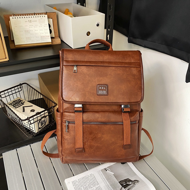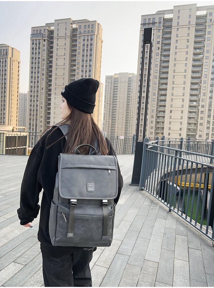 15.6 인치 컴퓨터 백팩 여성 대학생 부드러운 가죽 책가방 남성용 대용량 여행 배낭 유행스토어 가기