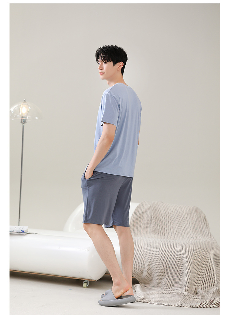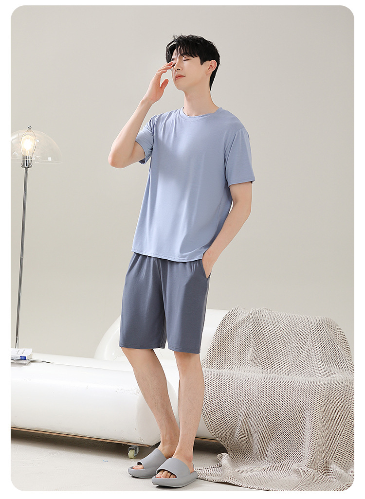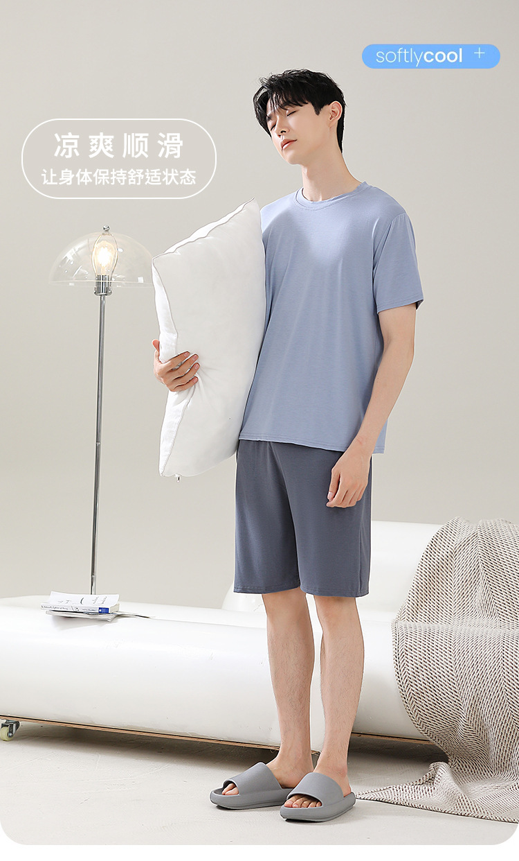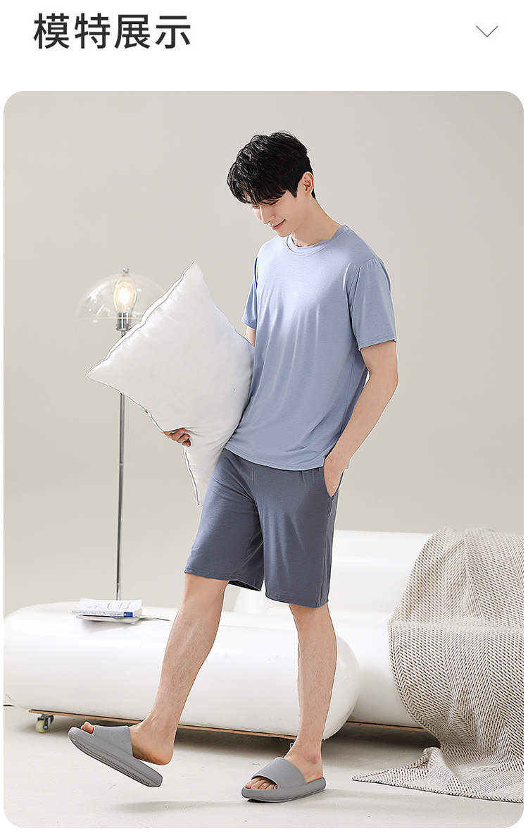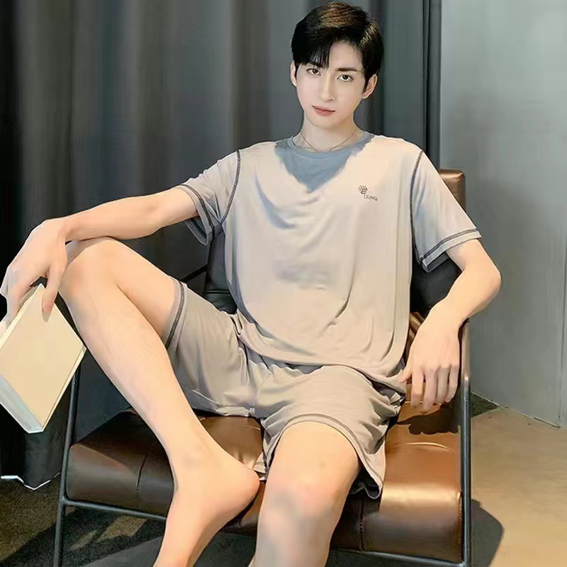 모달 남자의 잠옷 남자의 여름 반팔 아이스 실크 여름 청소년 플러스 사이즈 세트 가정 옷을 착용 할 수 있습니다스토어 가기