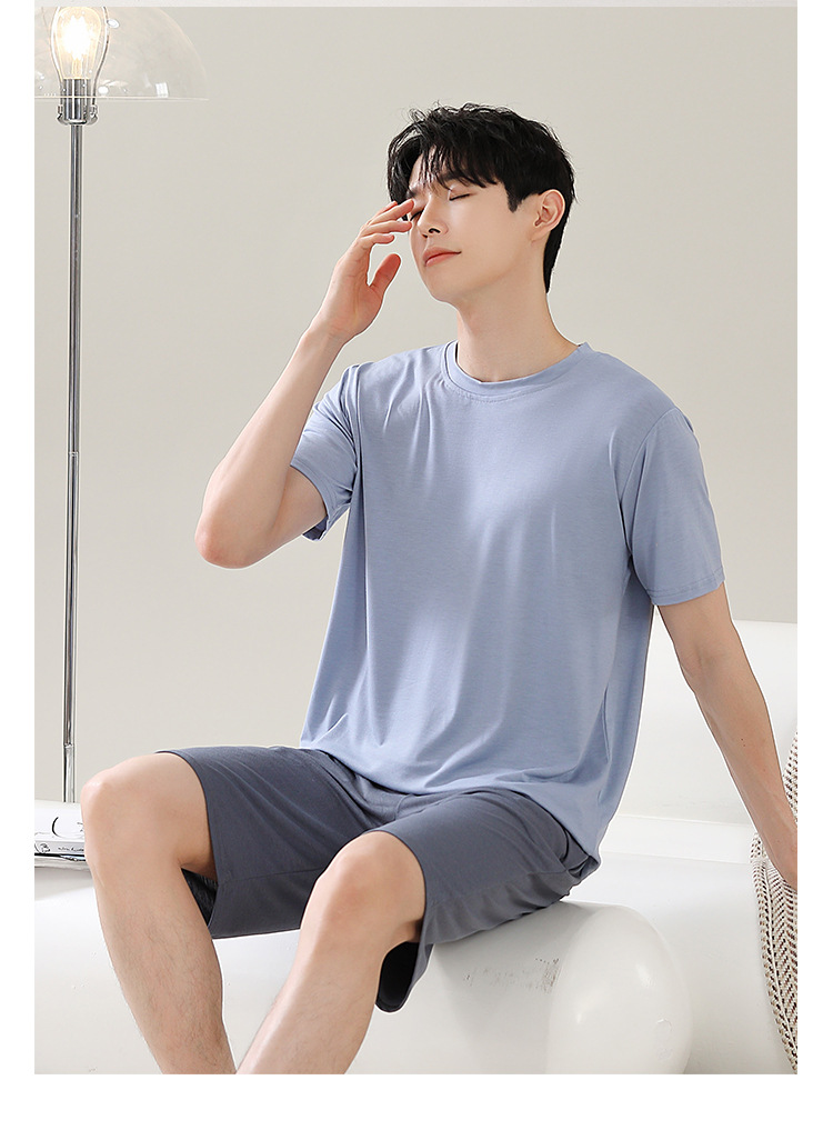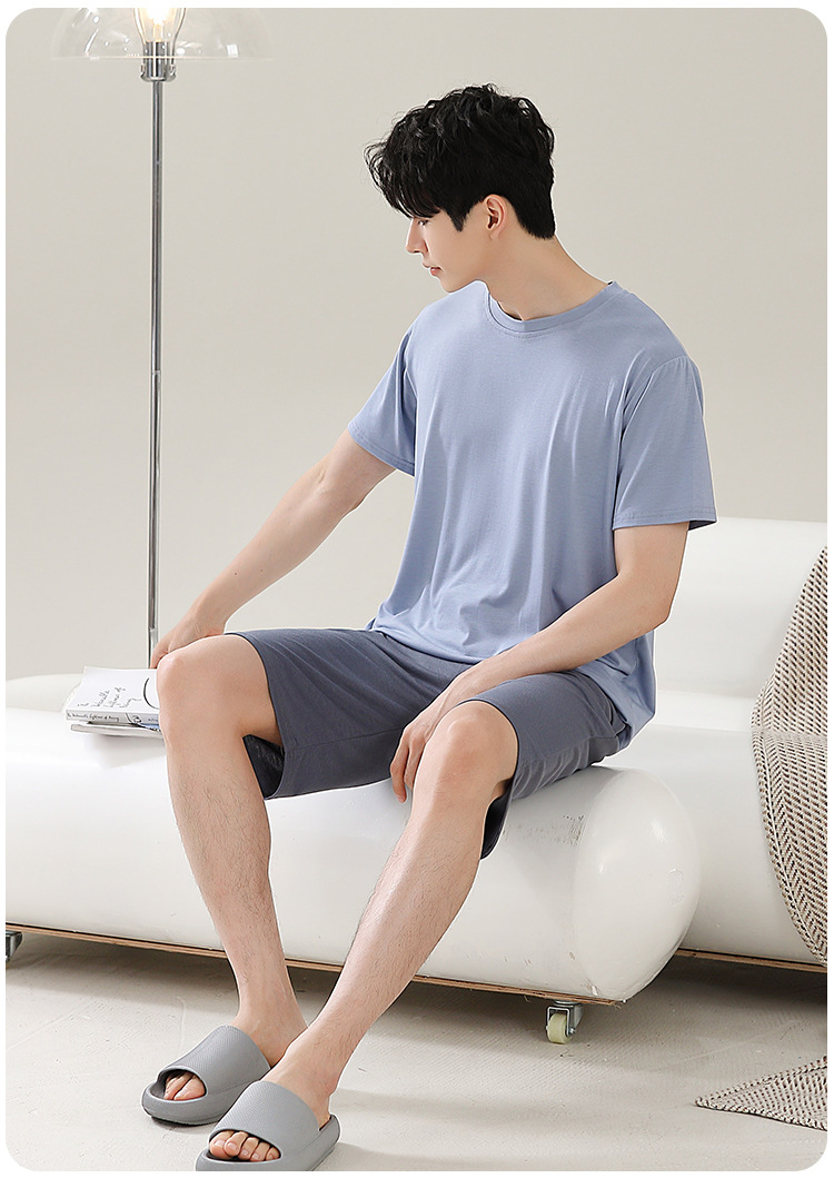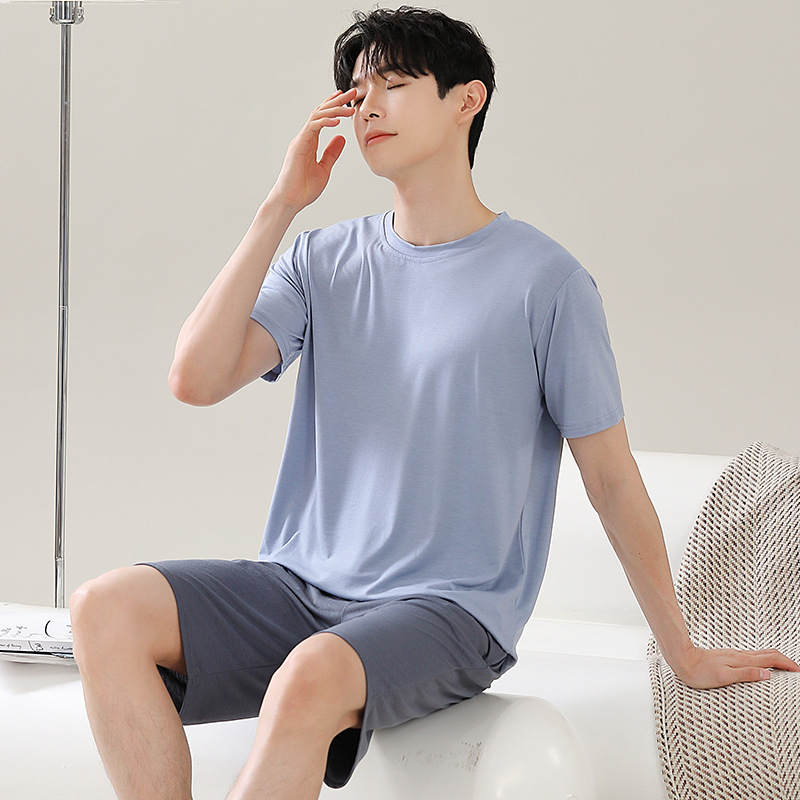 모달 남자의 잠옷 남자의 여름 반팔 아이스 실크 여름 청소년 플러스 사이즈 세트 가정 옷을 착용 할 수 있습니다