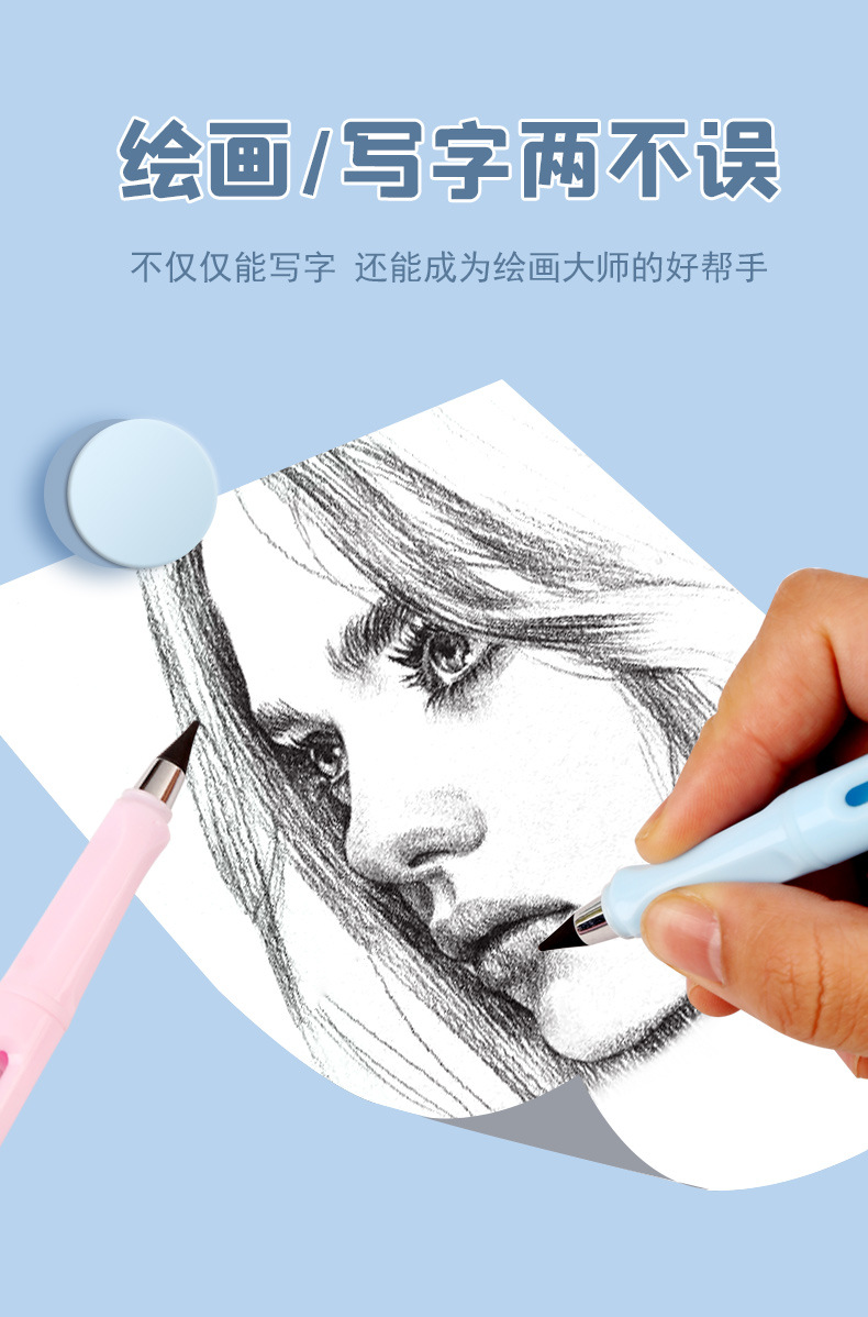화가와 학생들을 위한 특별한 영구 연필, 자세 교정용, 무연 HB 스케치 드로잉 연필, 깨지지 않고 지울 수 있는 마카롱 블루 무연 연필