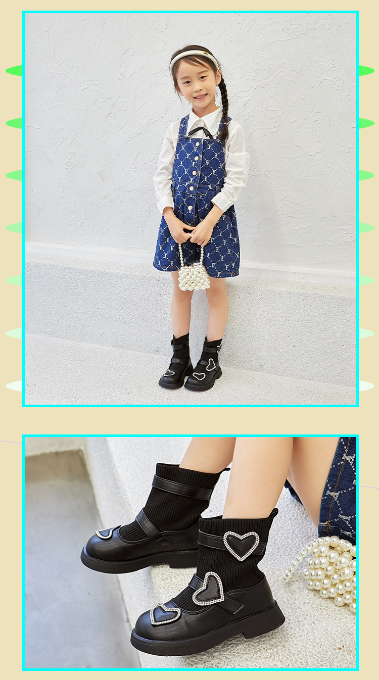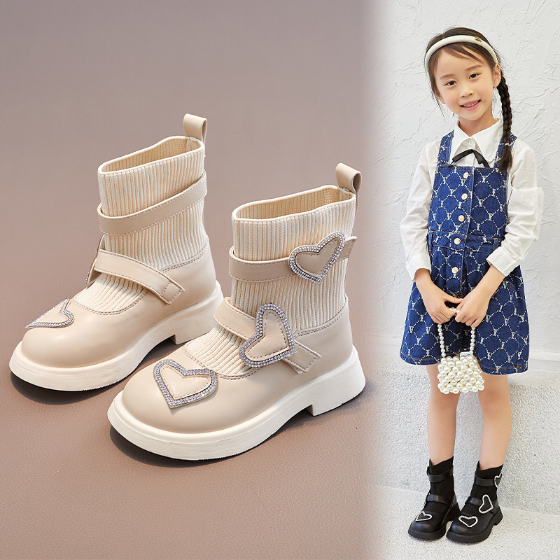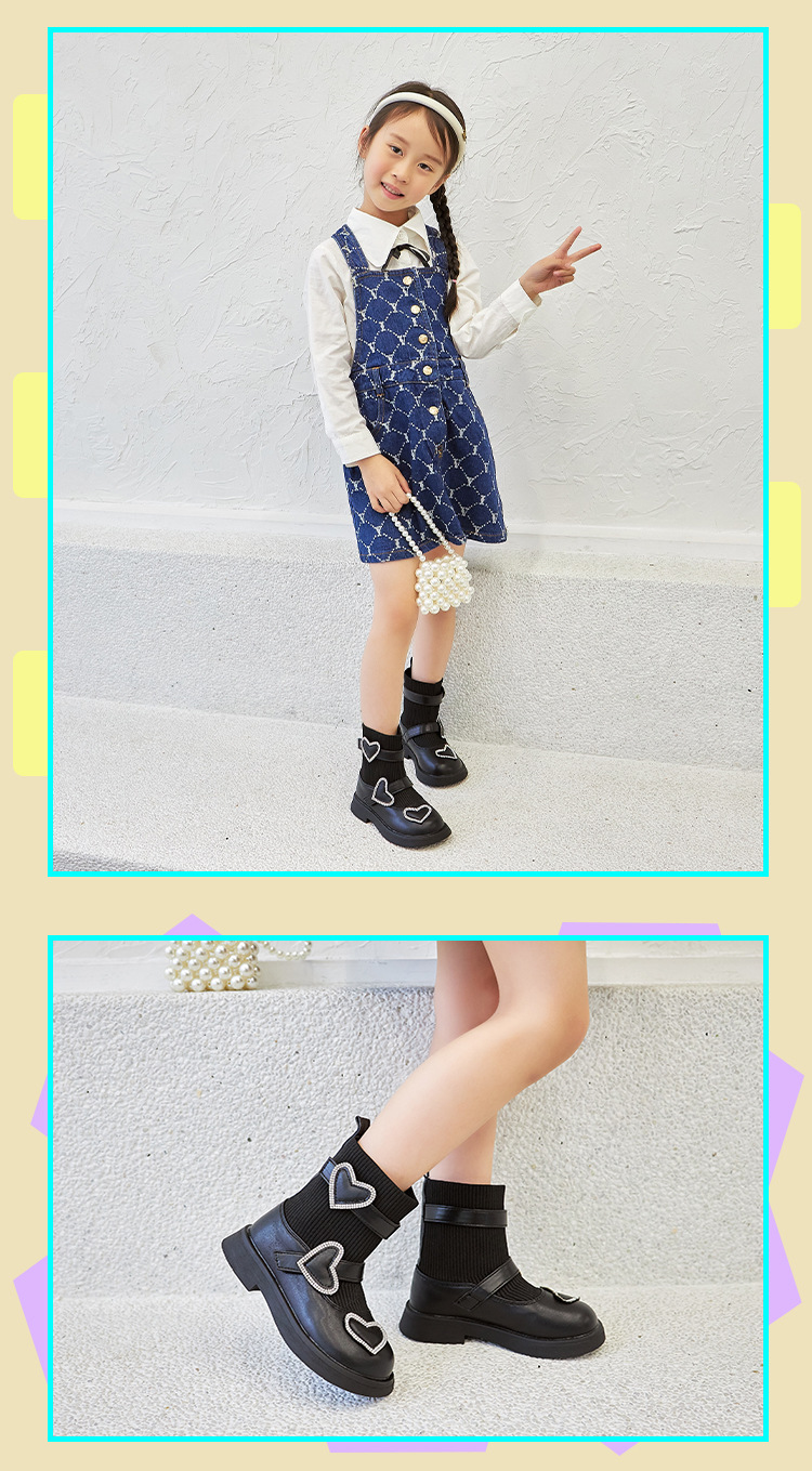 소녀 마틴 부츠 2023 가을과 겨울 새로운 아기 작은 소녀 블랙 작은 가죽 신발과 양말 부츠 가을 어린이 신발스토어 가기