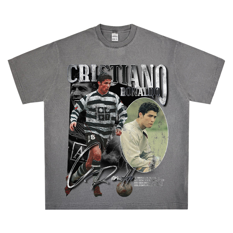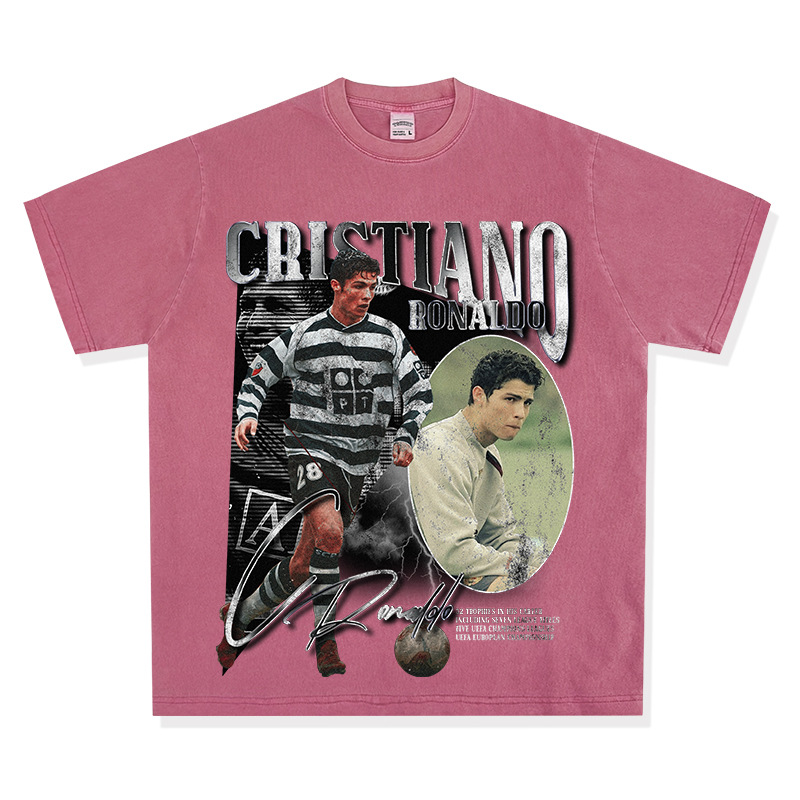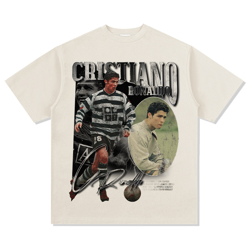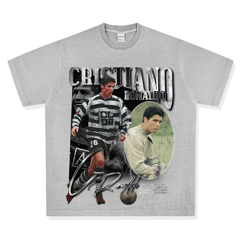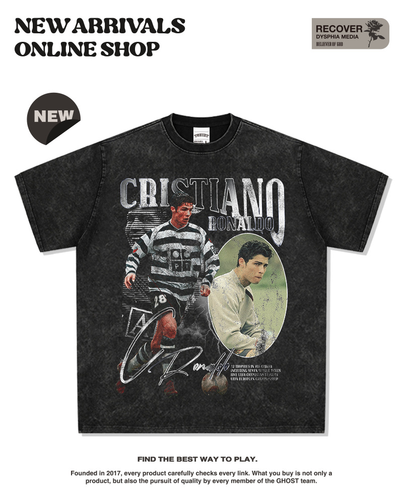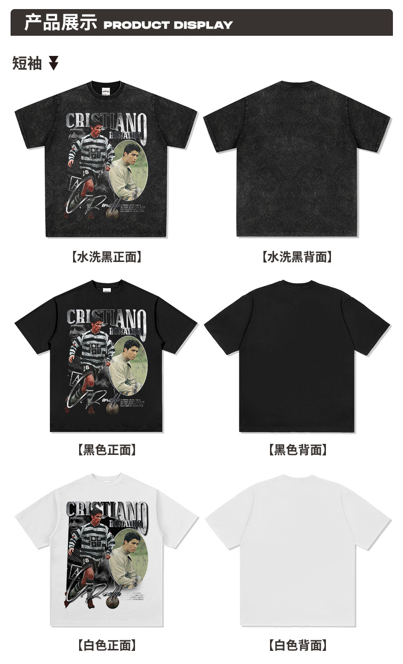 축구 무거운 반팔 남자의 아메리칸 스타일 레트로 여름 크리스티아노 캐릭터 반팔 티셔츠 퓨어 코튼 루즈한 탑스토어 가기