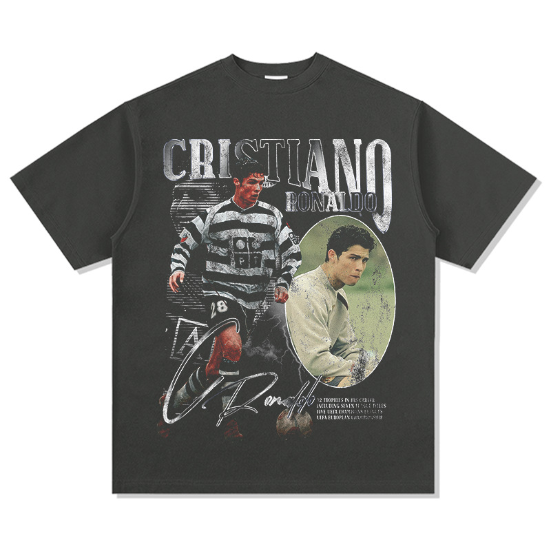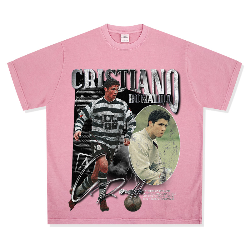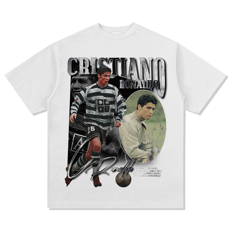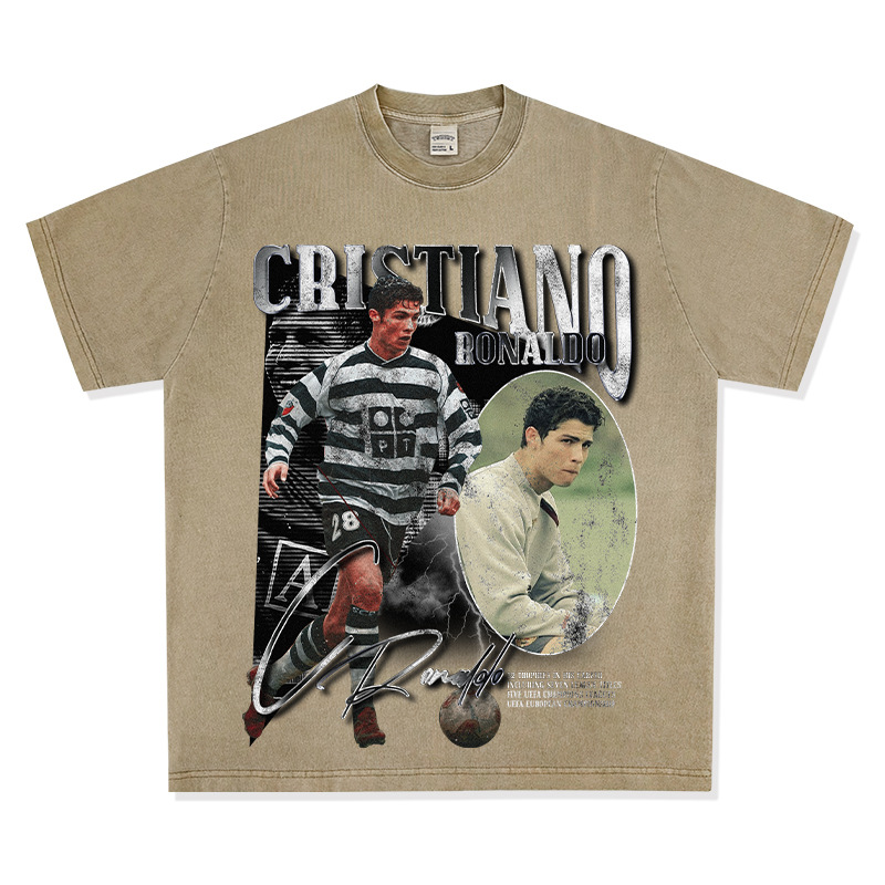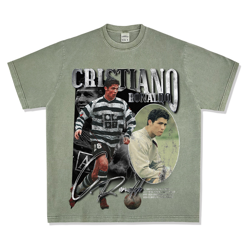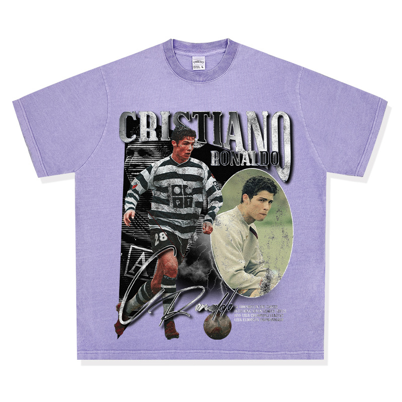 축구 무거운 반팔 남자의 아메리칸 스타일 레트로 여름 크리스티아노 캐릭터 반팔 티셔츠 퓨어 코튼 루즈한 탑스토어 가기