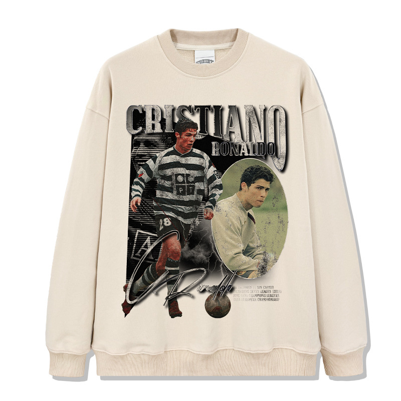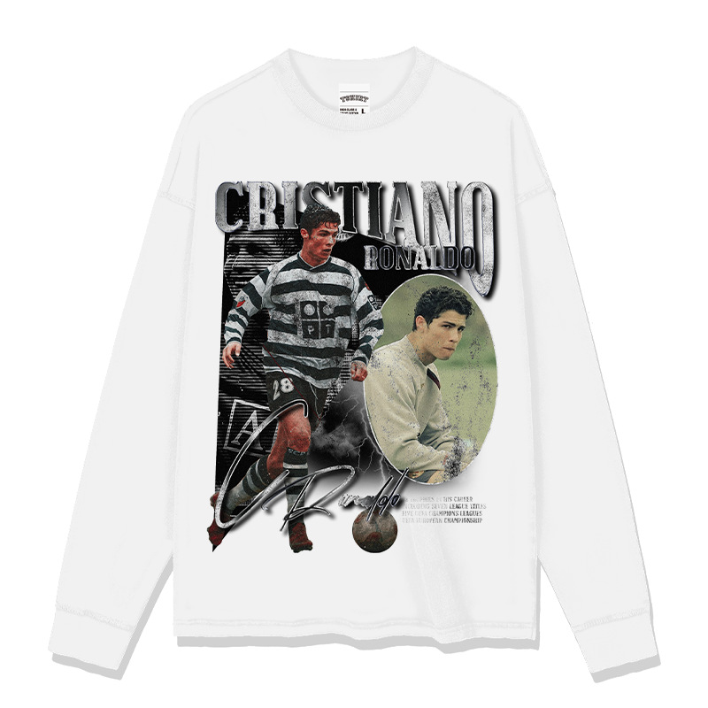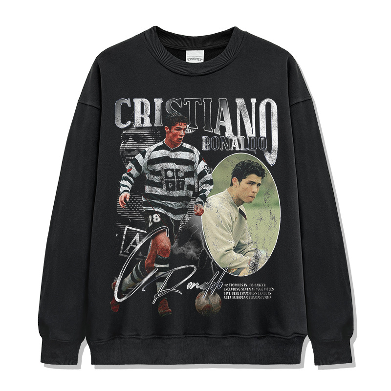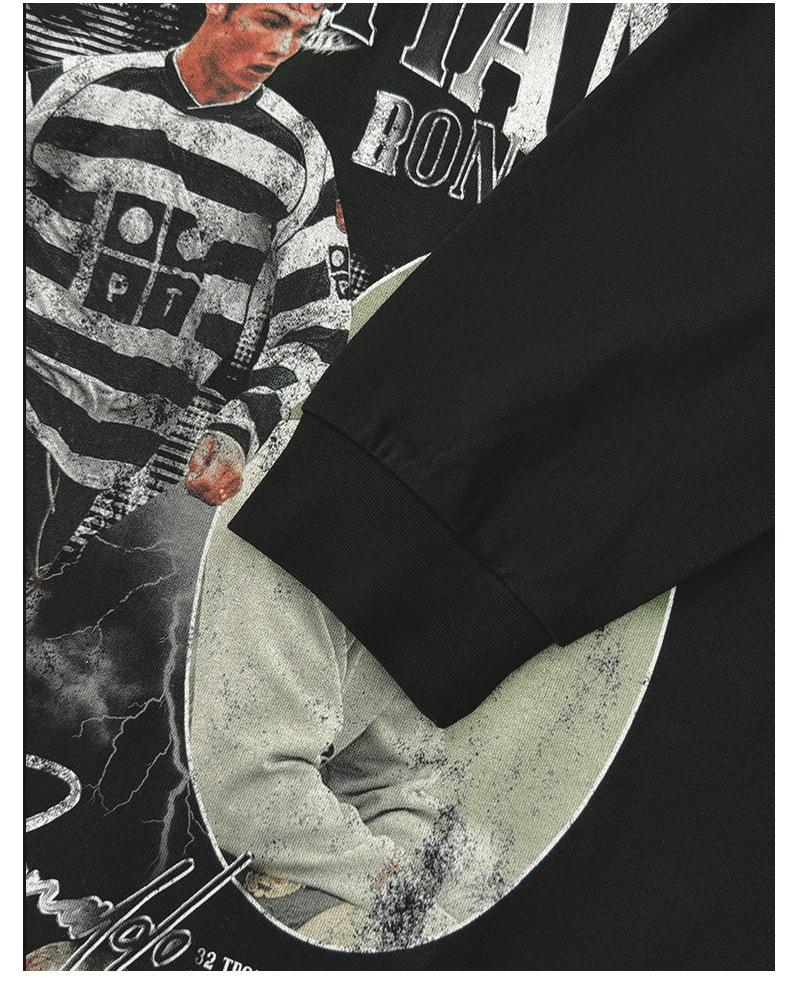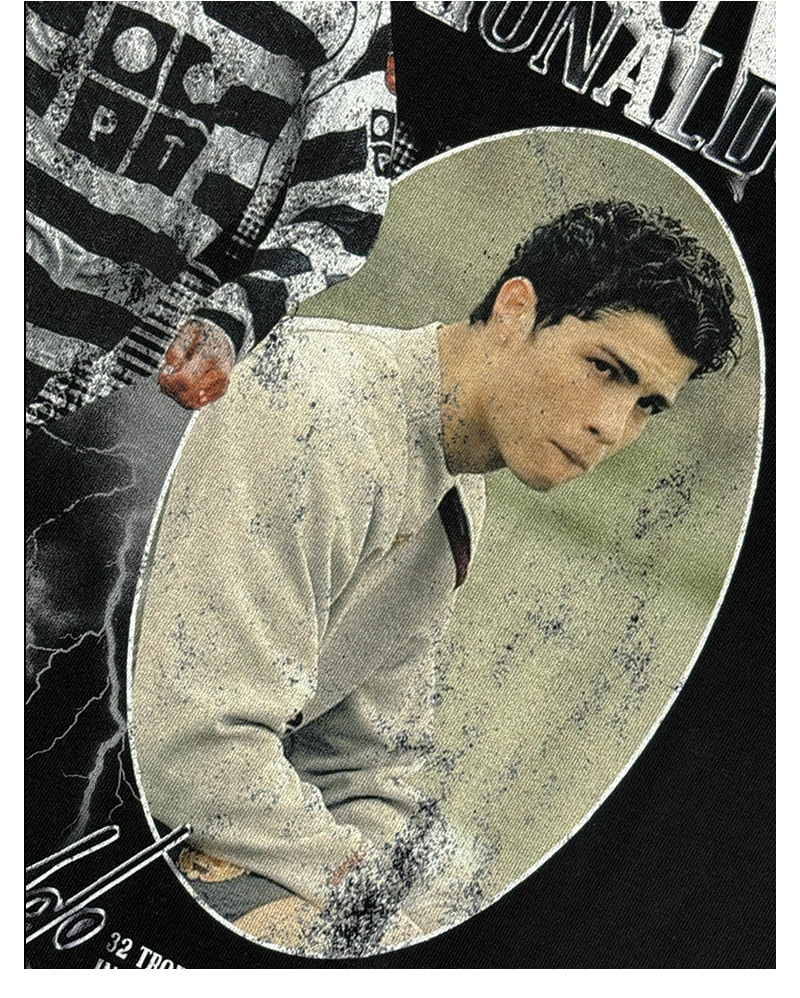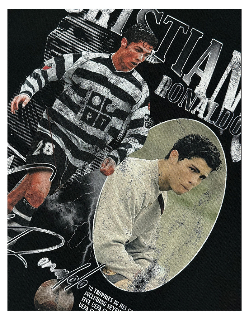 축구 무거운 반팔 남자의 아메리칸 스타일 레트로 여름 크리스티아노 캐릭터 반팔 티셔츠 퓨어 코튼 루즈한 탑스토어 가기