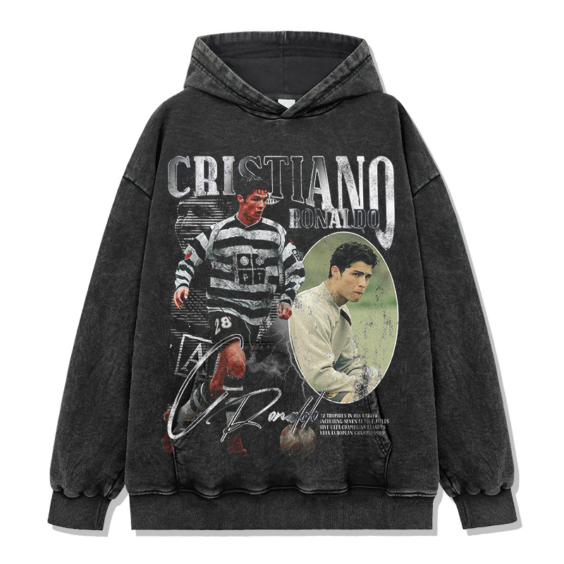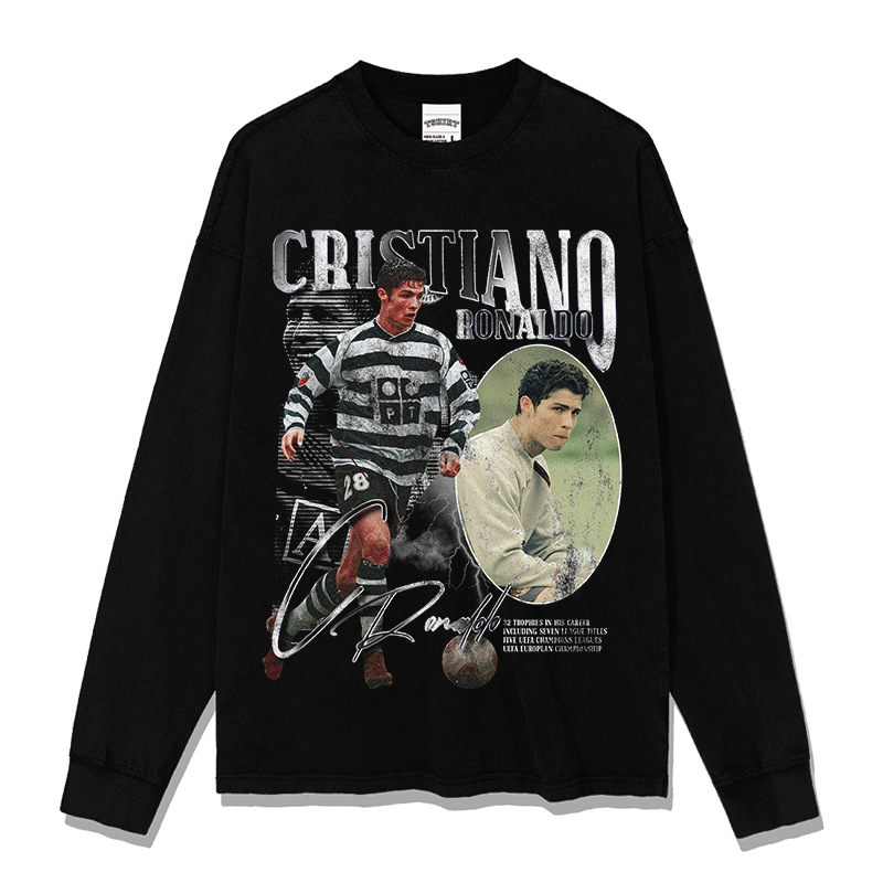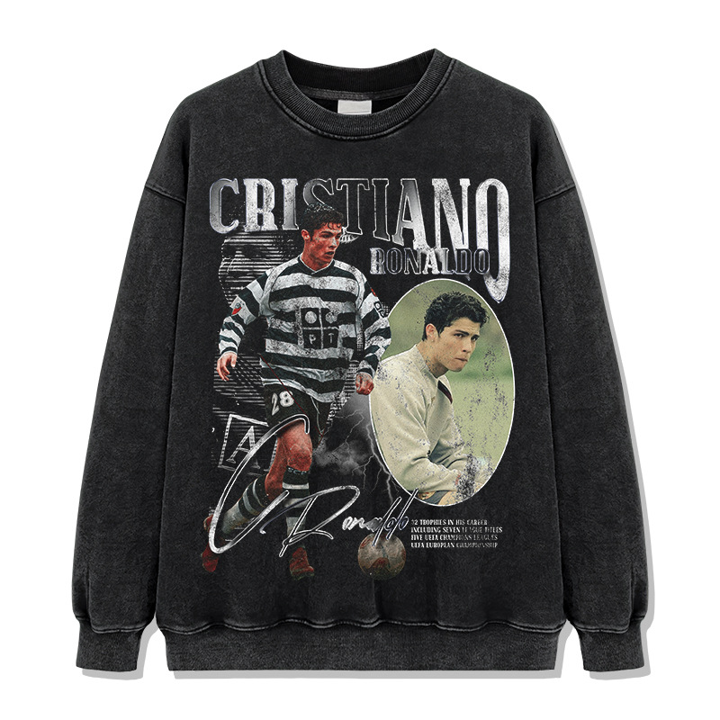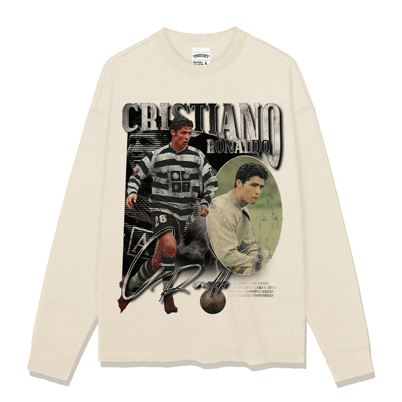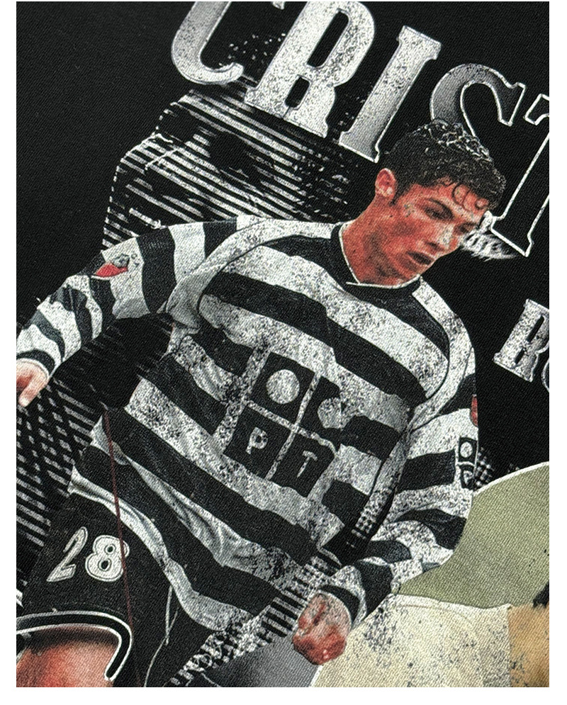 축구 무거운 반팔 남자의 아메리칸 스타일 레트로 여름 크리스티아노 캐릭터 반팔 티셔츠 퓨어 코튼 루즈한 탑