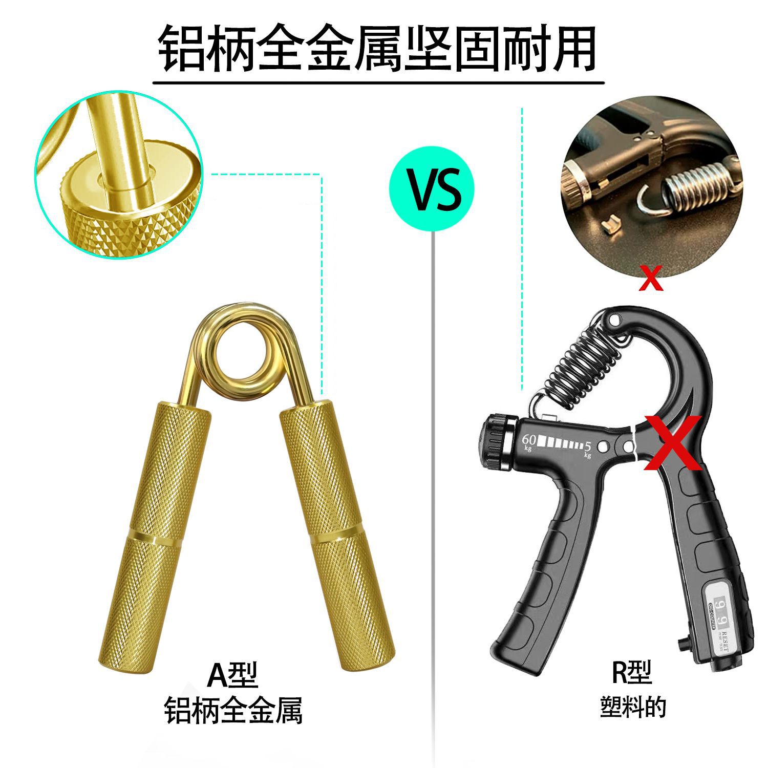 황금 알루미늄 합금 모든 금속 그립 피트니스 A 형 크로스 보더 금속 그립 스프링 스틸 그립