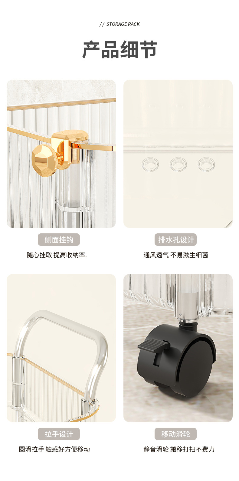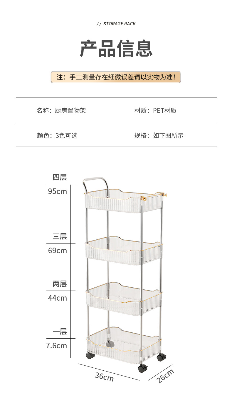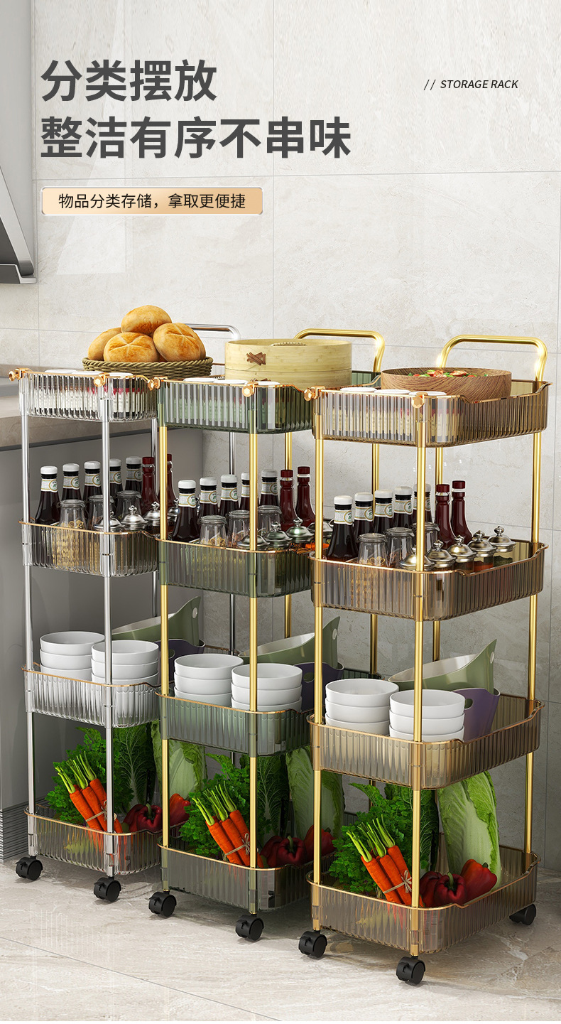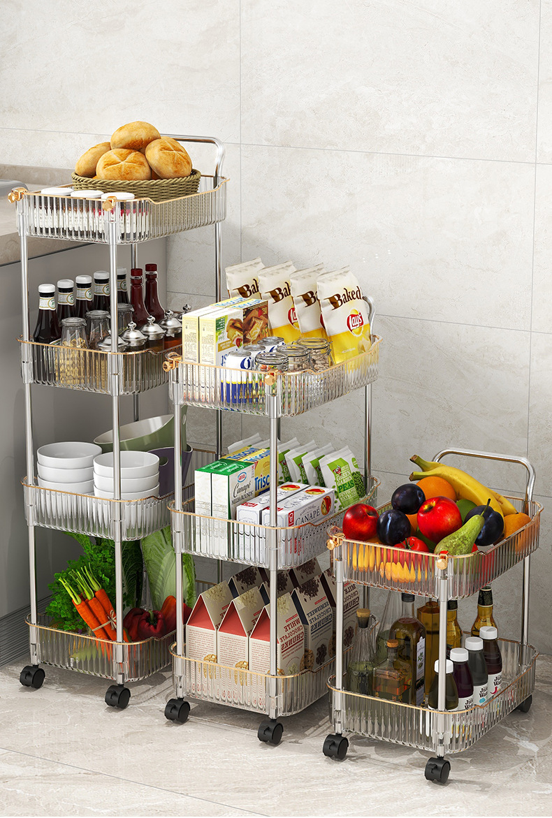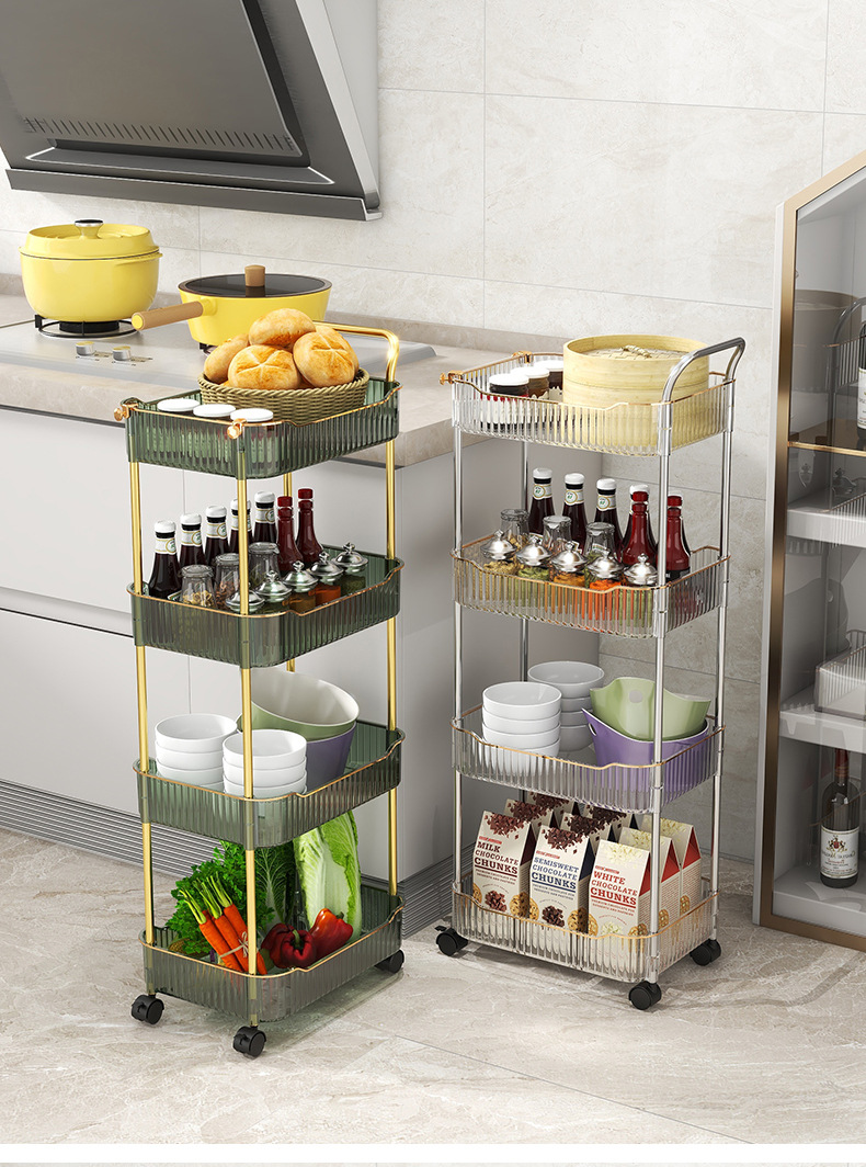 두꺼운 트롤리 바닥 스토리지 랙 침실 거실 모바일 식품 주방 다층 욕실 스토리지 랙