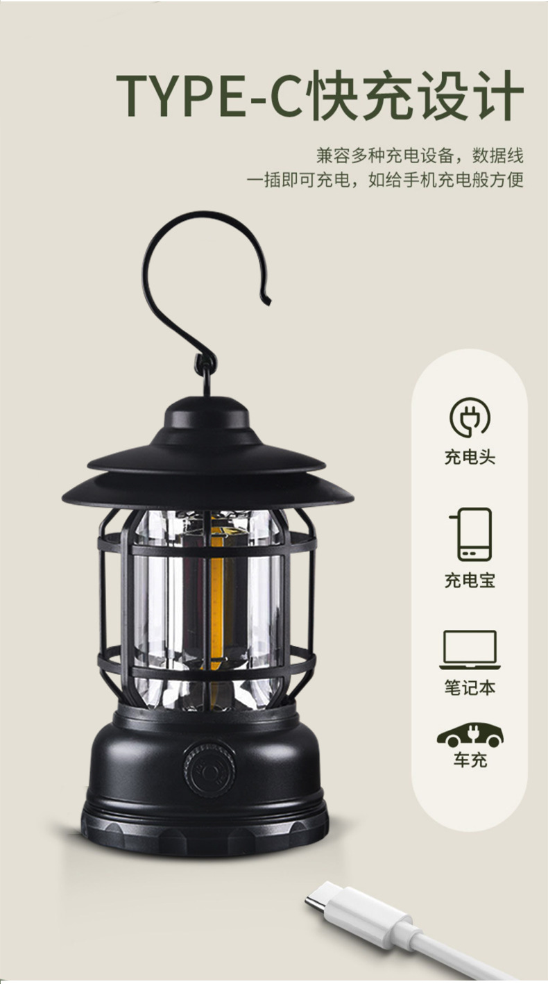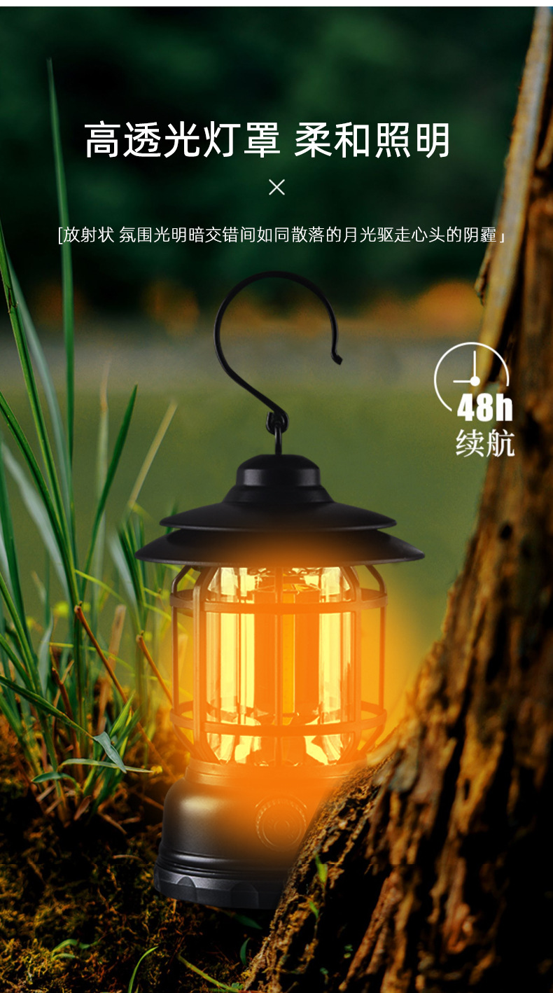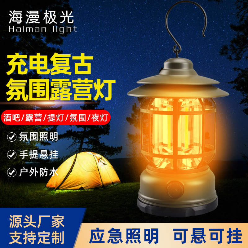 캠핑 램프 야외 램프 조명 복고풍 랜턴 슈퍼 긴 내구성 충전식 램프 캠핑 분위기 휴대용 텐트 램프 장식
