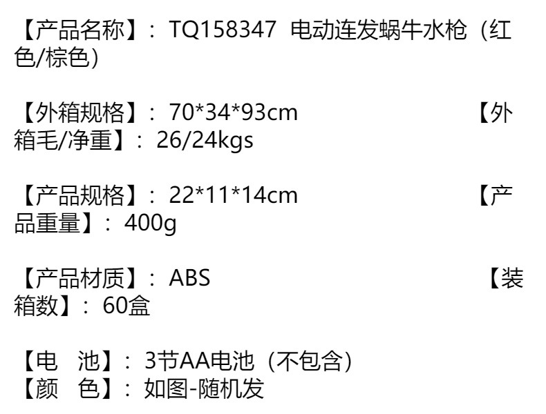• 전기 버스트 달팽이 물총 (다크 브라운) 배터리