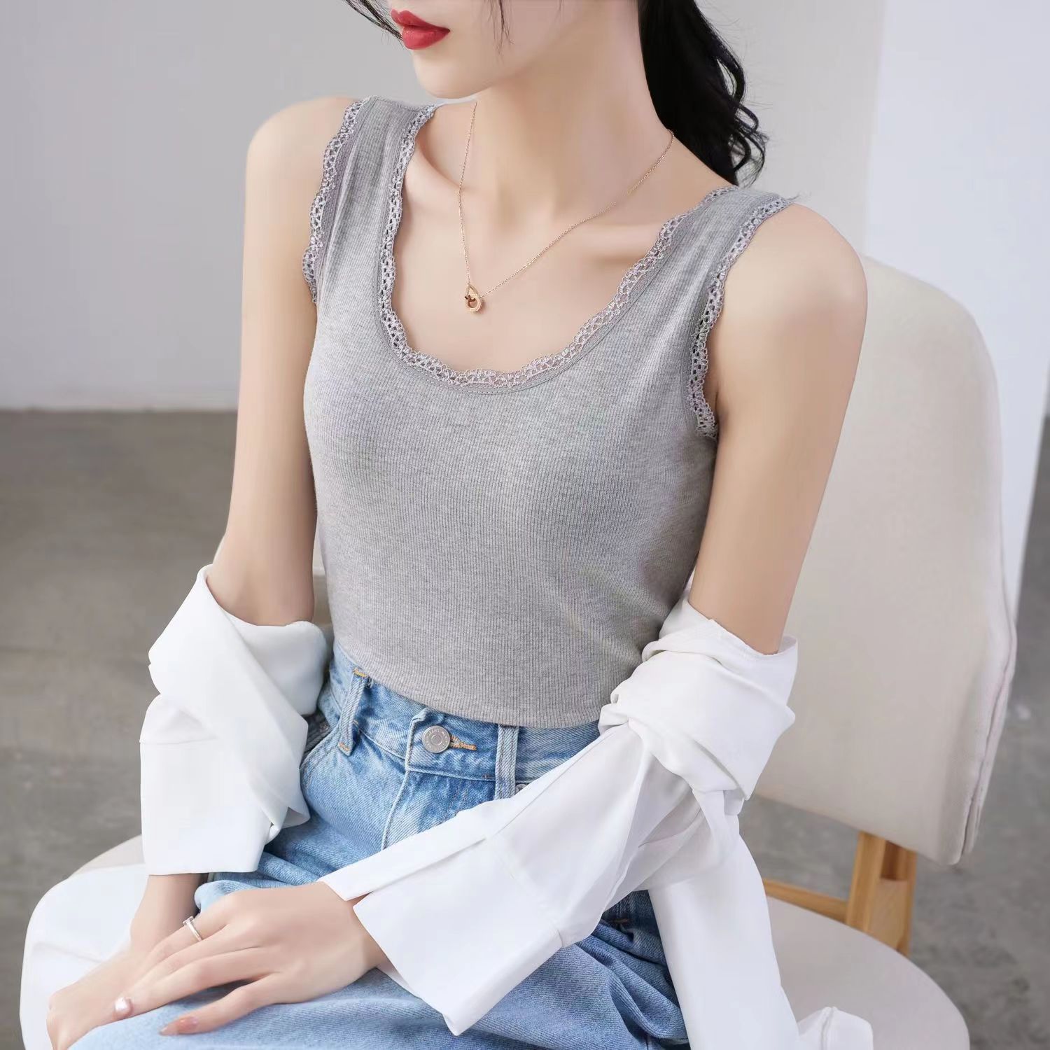 모달 여름 니트 스레드 캐미솔 여성용 레이스 에지 플러스 사이즈 슬림핏 아우터 이너베이스 셔츠 조끼